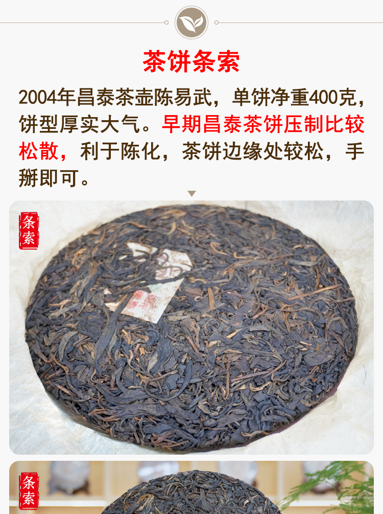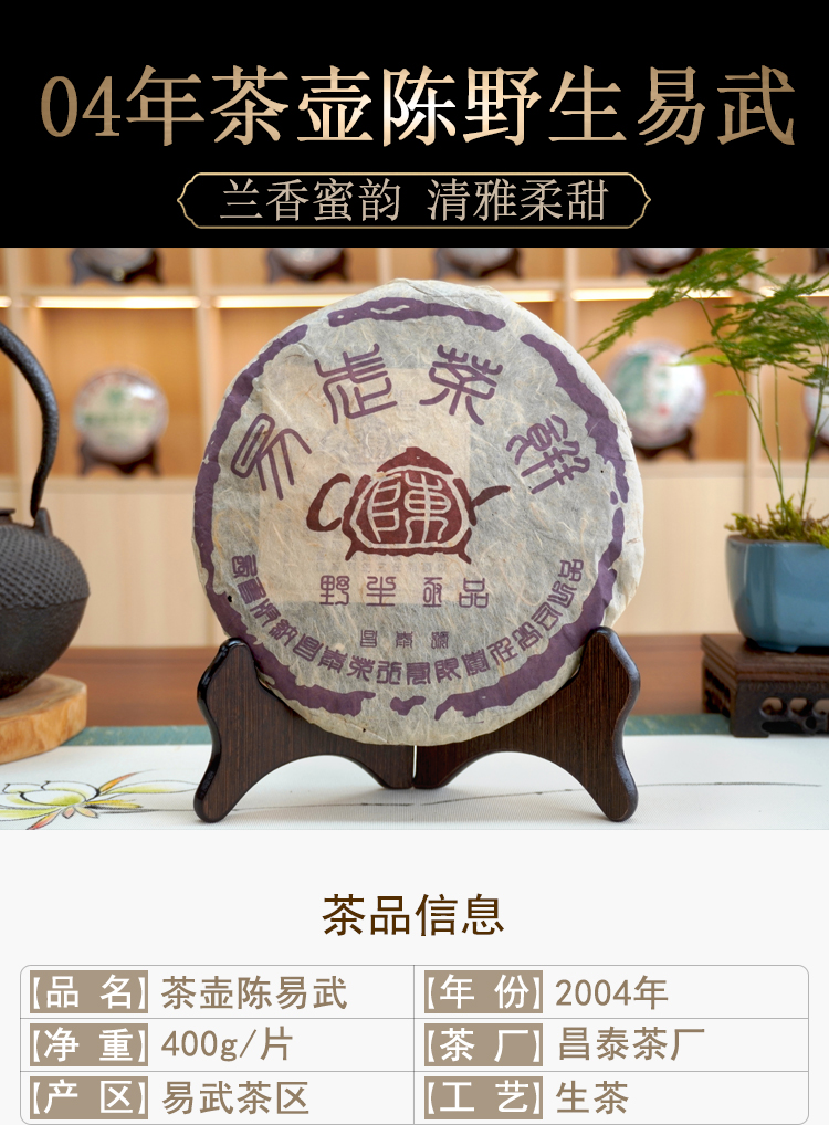 2004年昌泰茶壶陈易武野生茶普洱老生茶干仓真品