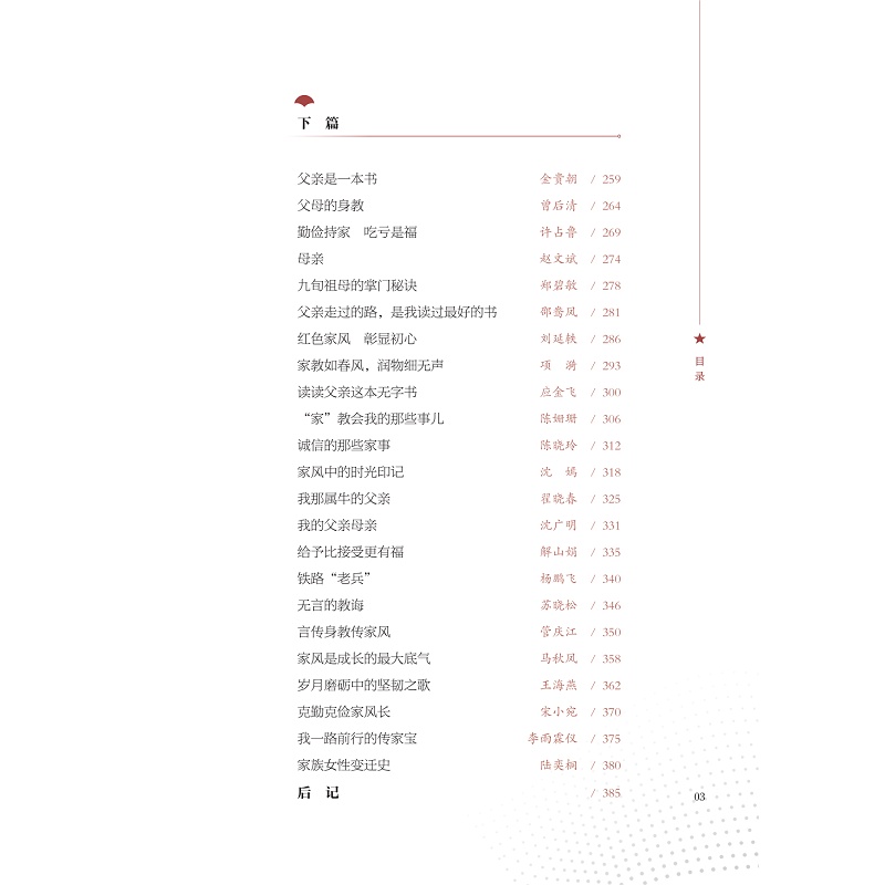 廉洁好家风,是一种润物细无声的品德力量,是一汪清润甘甜的泉水,是一股潜在无形的正能量。一直以来,杭州师范大学高度重视廉洁文化建设,从家风文化入手,激活学校红色基因、弘扬党的优良传统。经过几年积累,全校师生创作了一批讲述优秀家风家教好传统的故事。它们有的记录家庭中的传统习惯、规矩及其背后的寓意和教育意义;有的讲述家庭成员间相互扶持、共同成长的感人故事;有的传达家风家教对个人成长、品德塑造的积极影响。本书旨在通过家风家教故事的分享,传递正能量,共同营造和谐、美好的家庭和社会氛围。