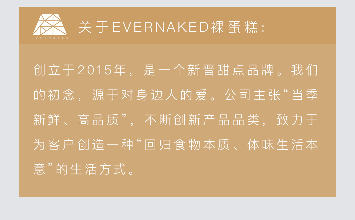 - 裸蛋糕,专注于甜点无添加的健康理念。生日蛋糕、婚礼甜品桌、茶歇宴会及私人定制。裸蛋糕的初念,源于对身边人的爱;简单,不失真诚;不乏奢华。