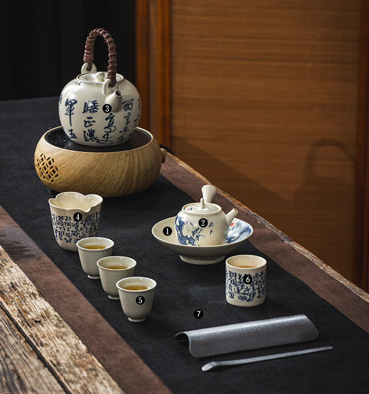 茶香记苏打釉青花文人竹石干泡盘景德镇陶瓷壶承一物多用茶盘茶具