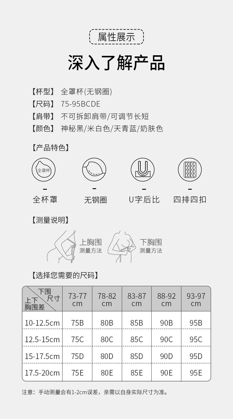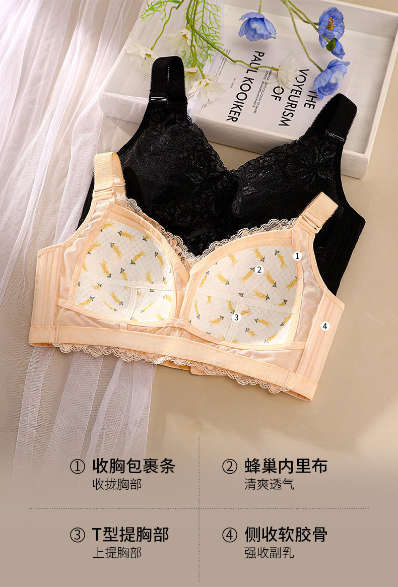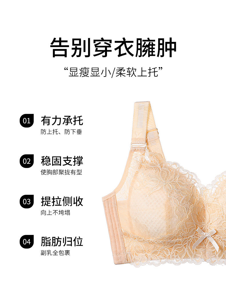 QC-W6195 夏季新品全罩大胸显小内衣女钢圈无薄款缩胸防下垂收副乳大(单件)