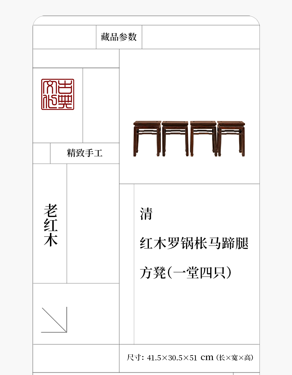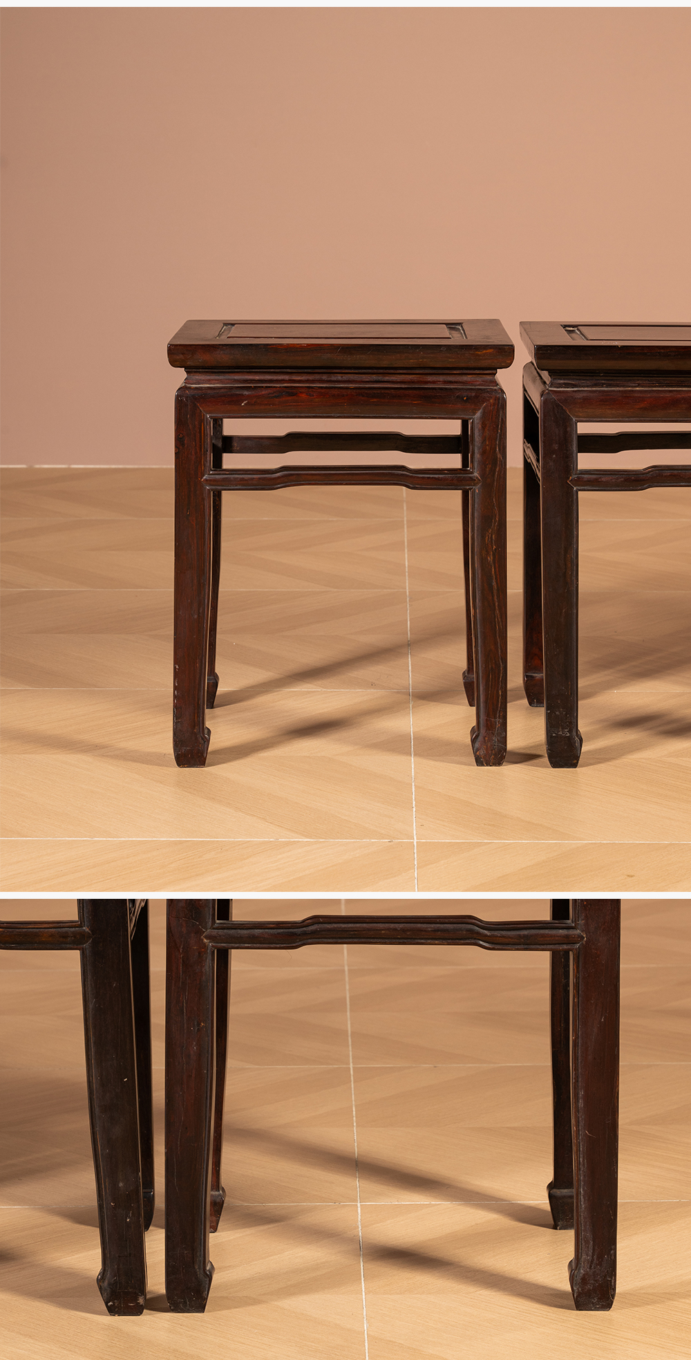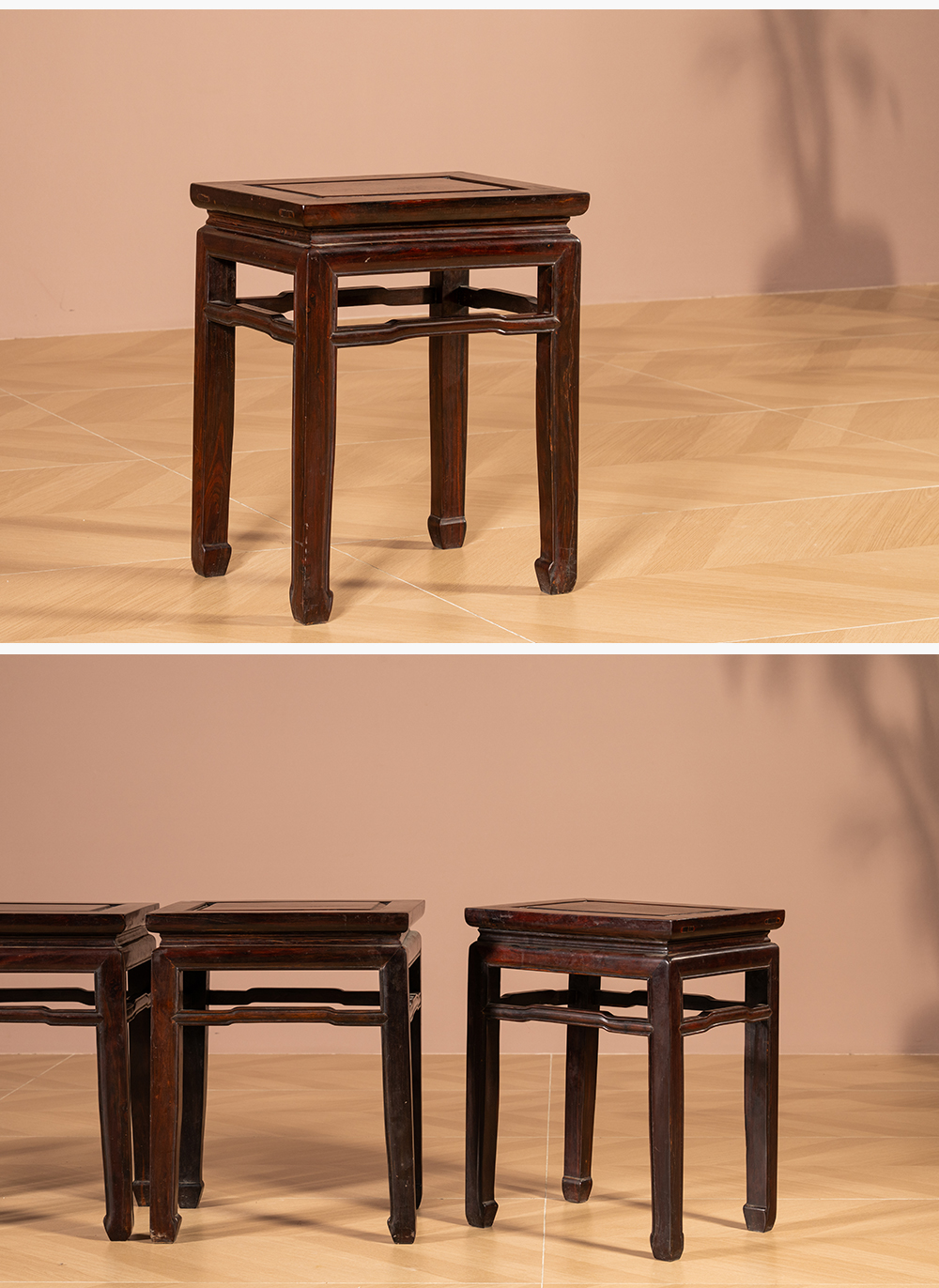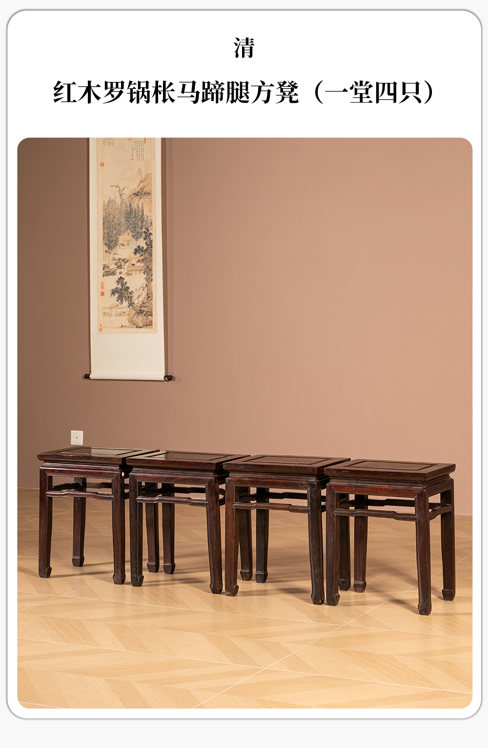 清代 红木罗锅枨马蹄腿方凳(一堂四只)