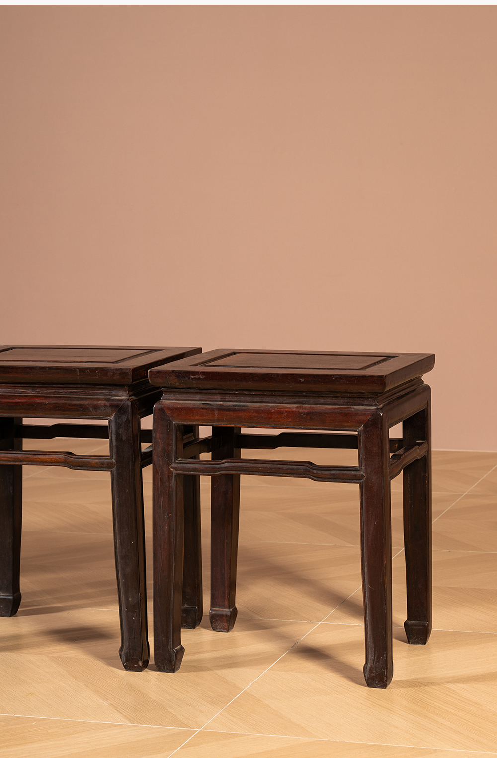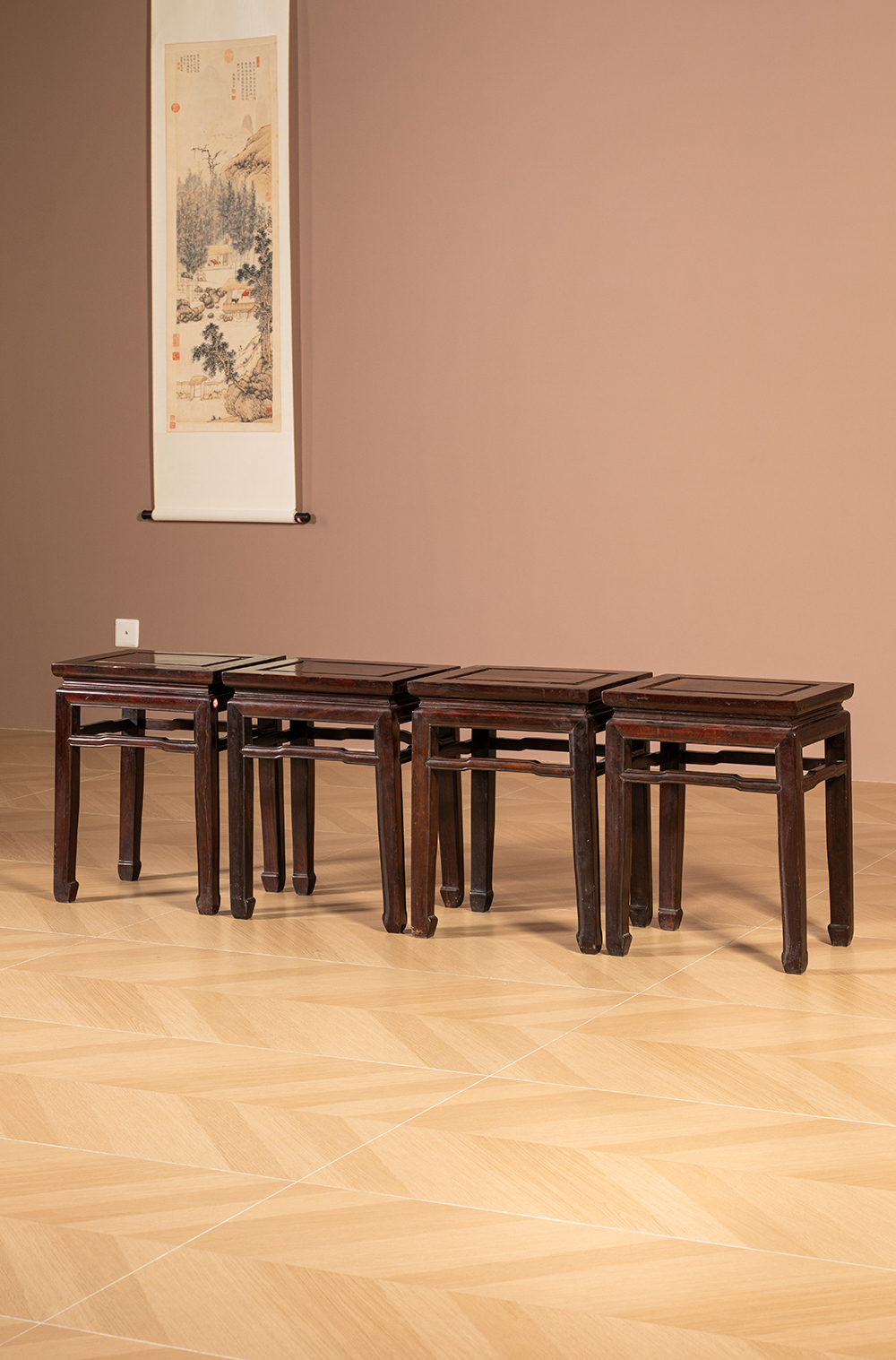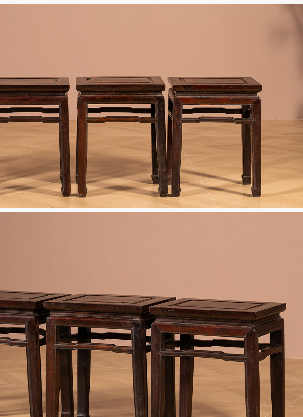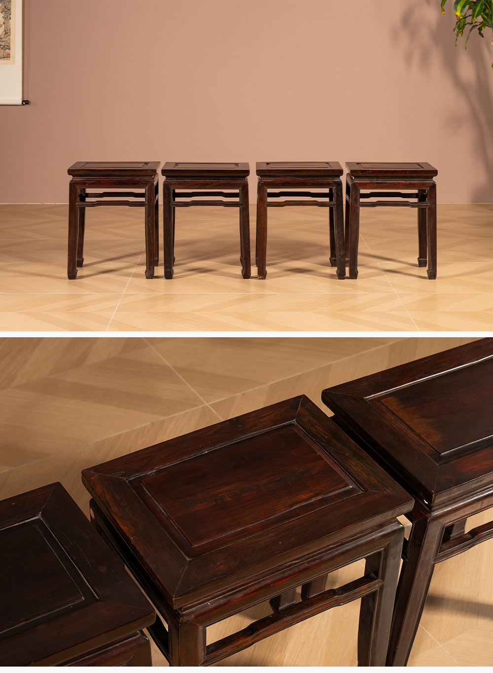 清代 红木罗锅枨马蹄腿方凳(一堂四只)