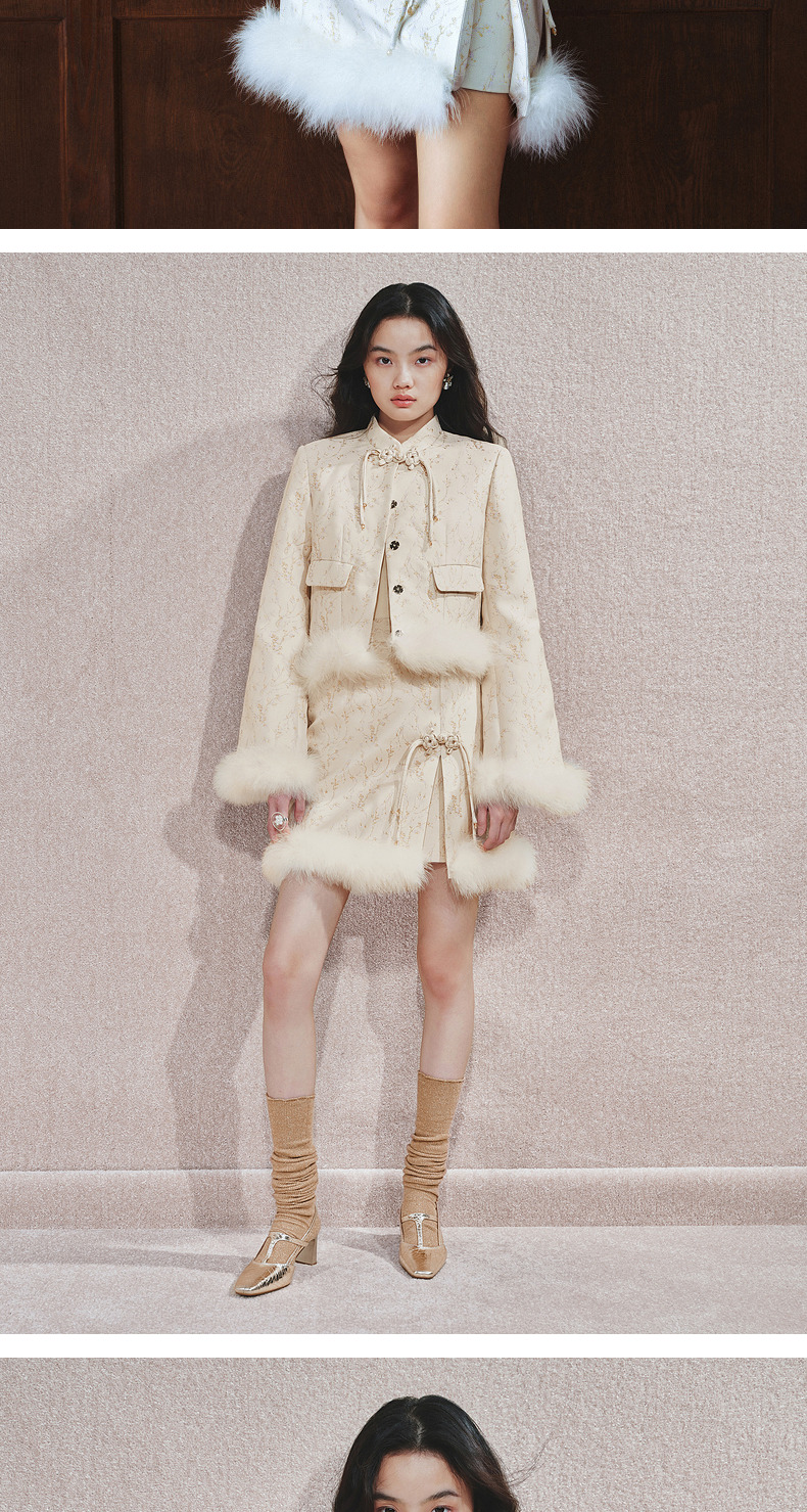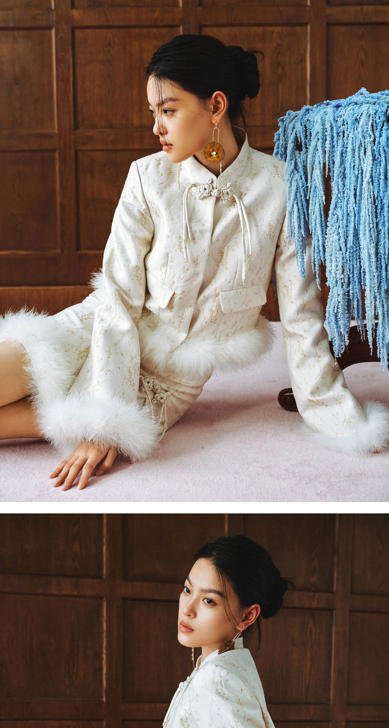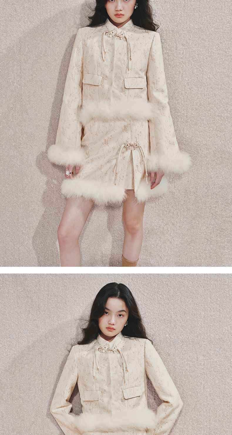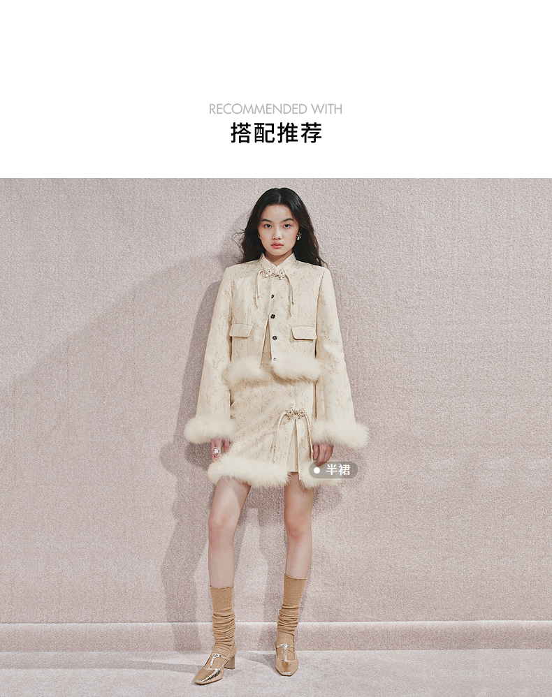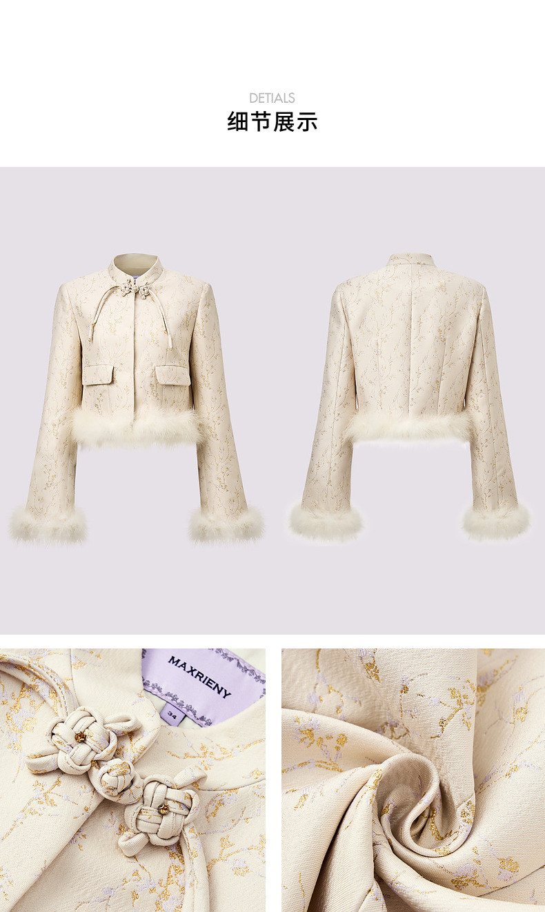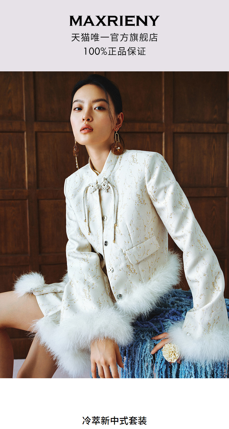 [东方新摩登]MAXRIENY冷萃新中式套装*提花贵雅新中式羽毛外套(货号:MS85JA506)