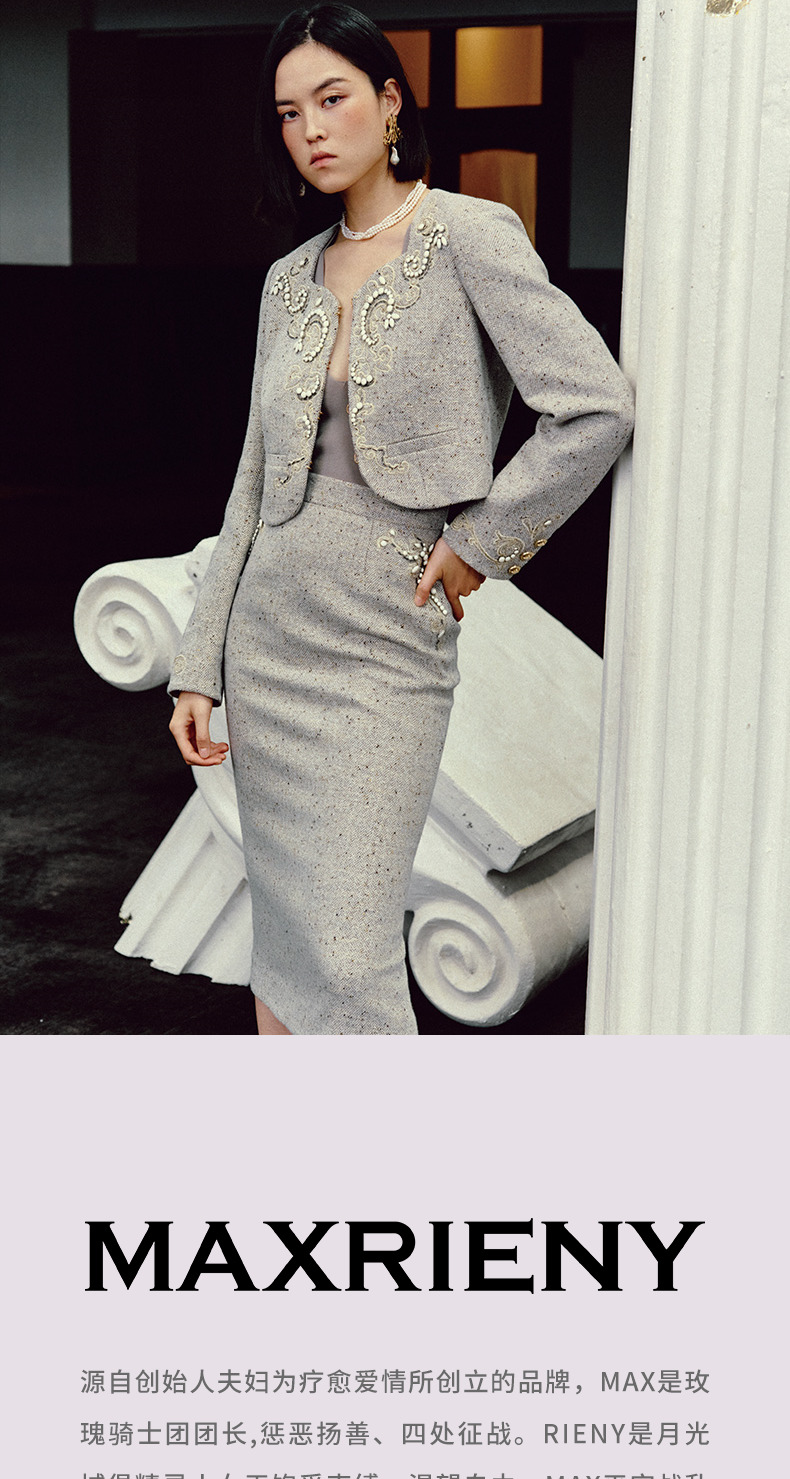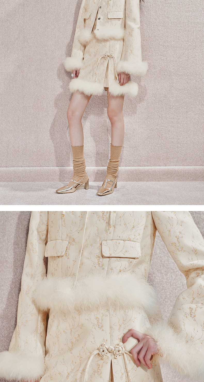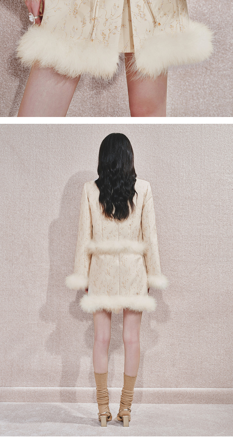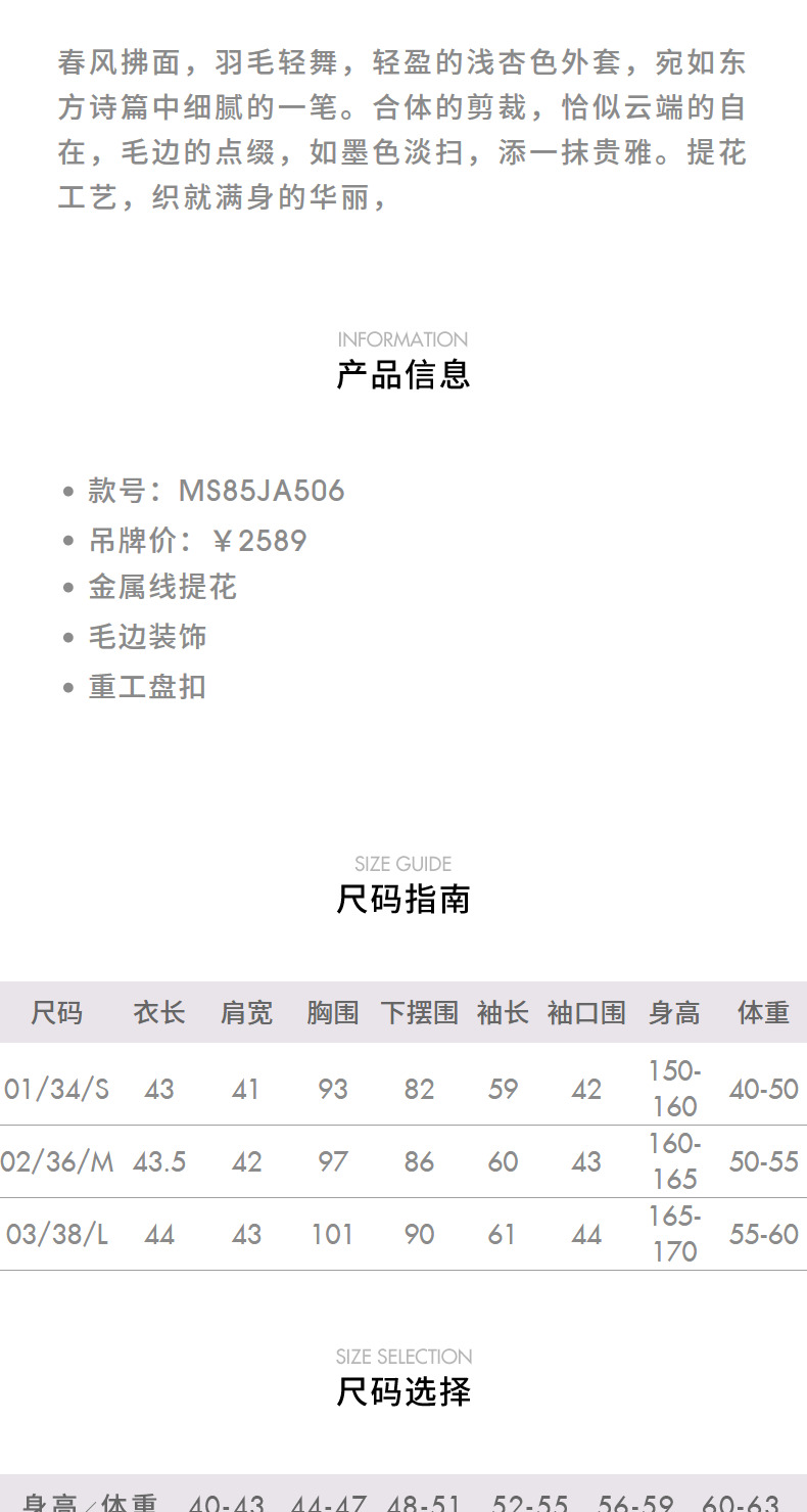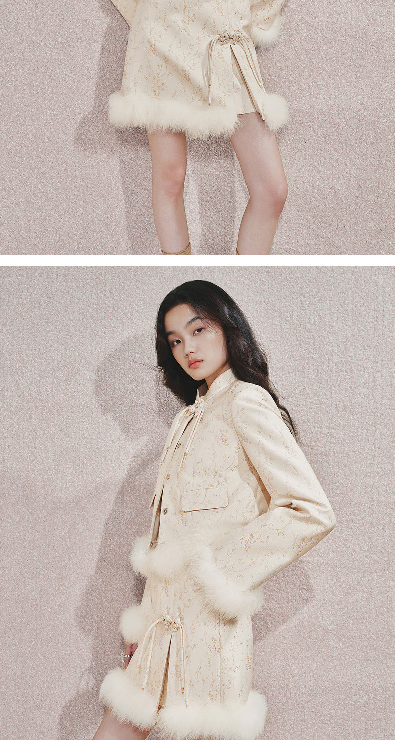 [东方新摩登]MAXRIENY冷萃新中式套装*提花贵雅新中式羽毛外套(货号:MS85JA506)