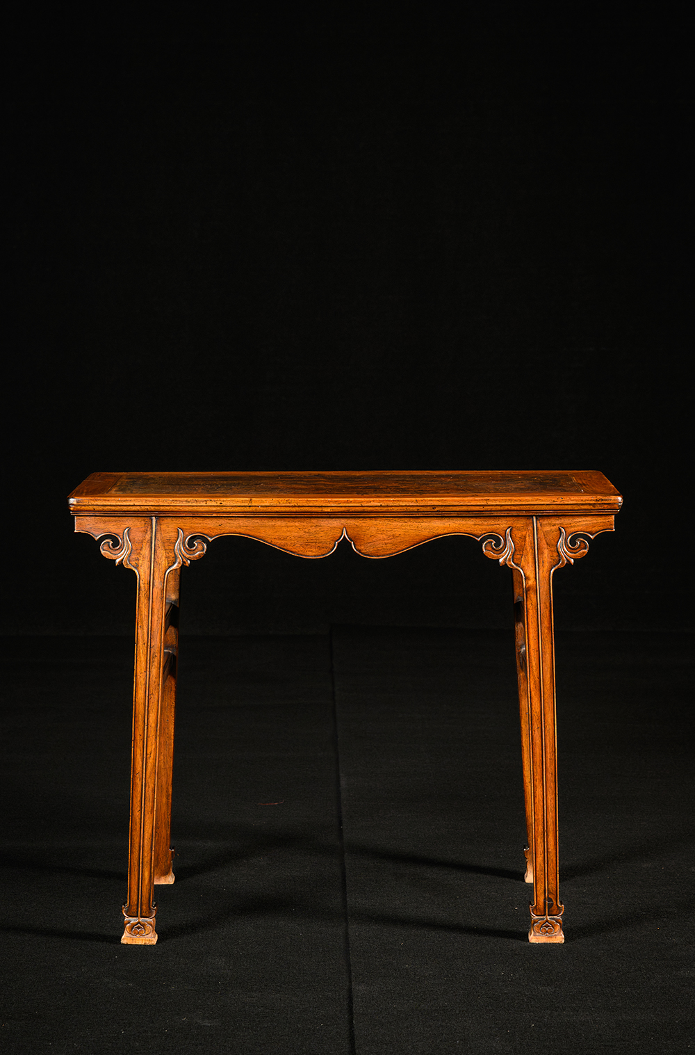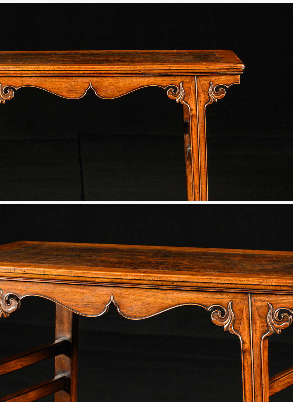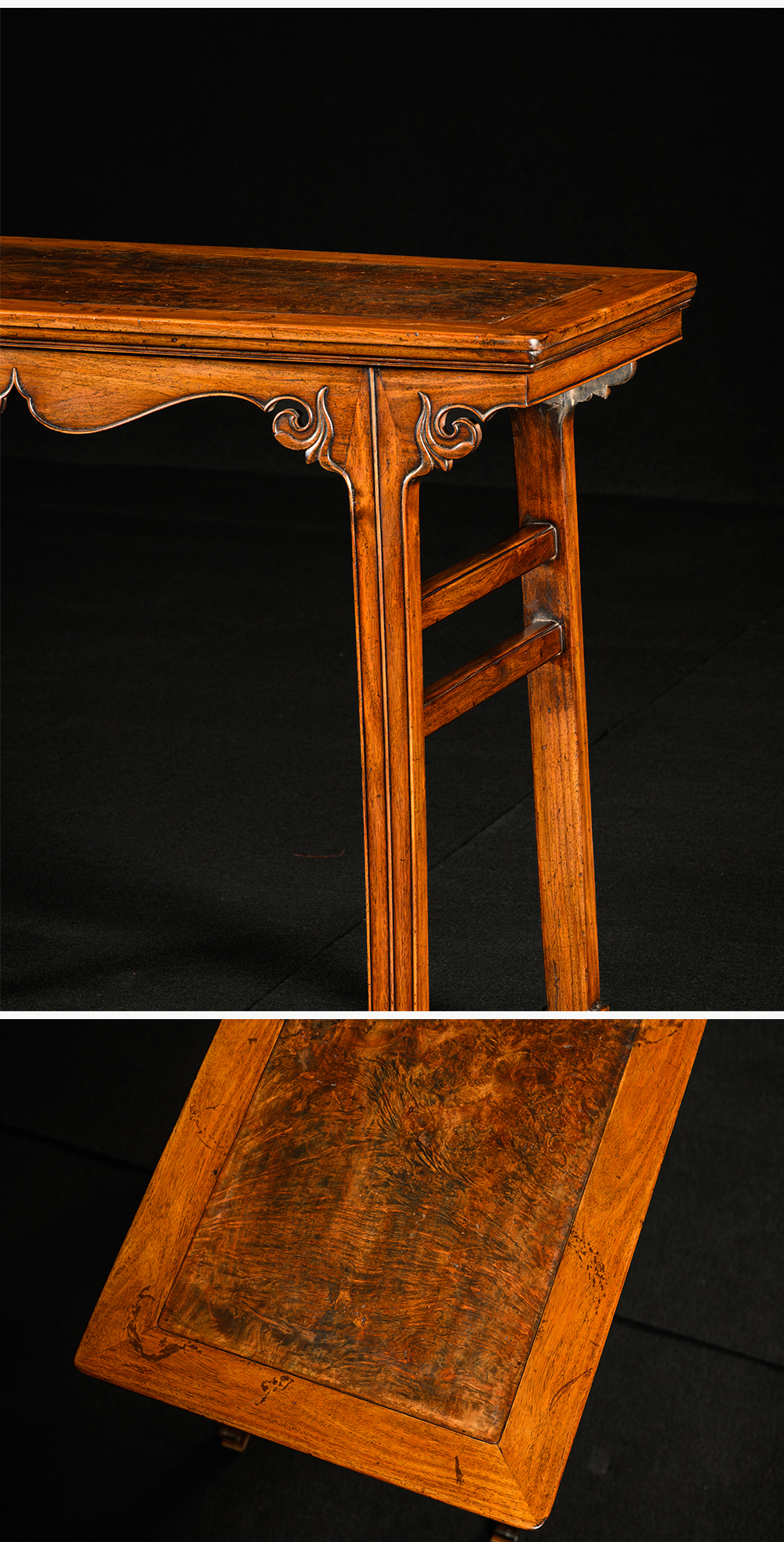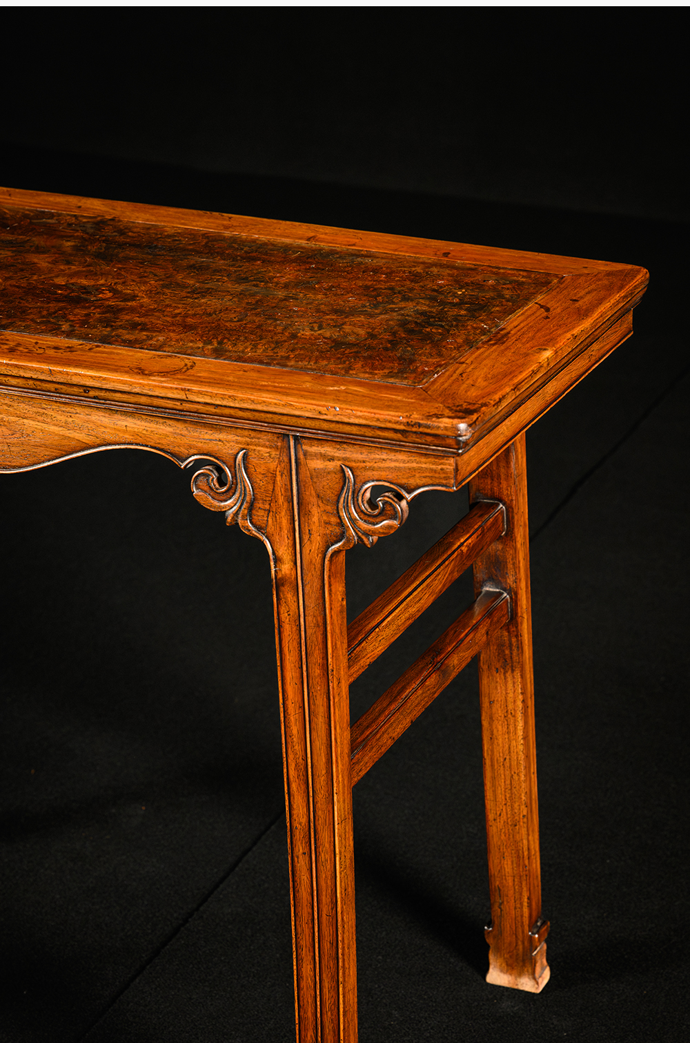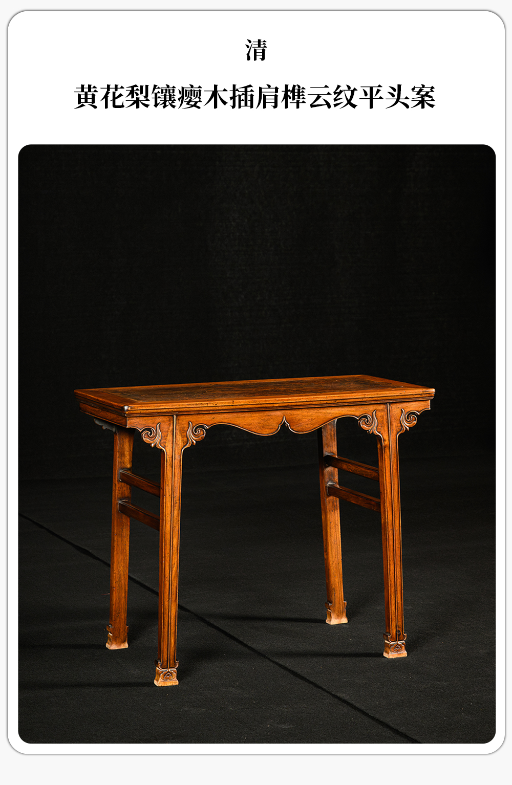 清 黄花梨镶瘿木插肩榫云纹平头案