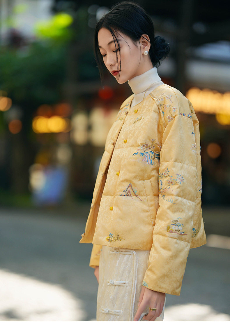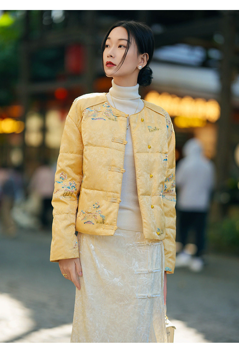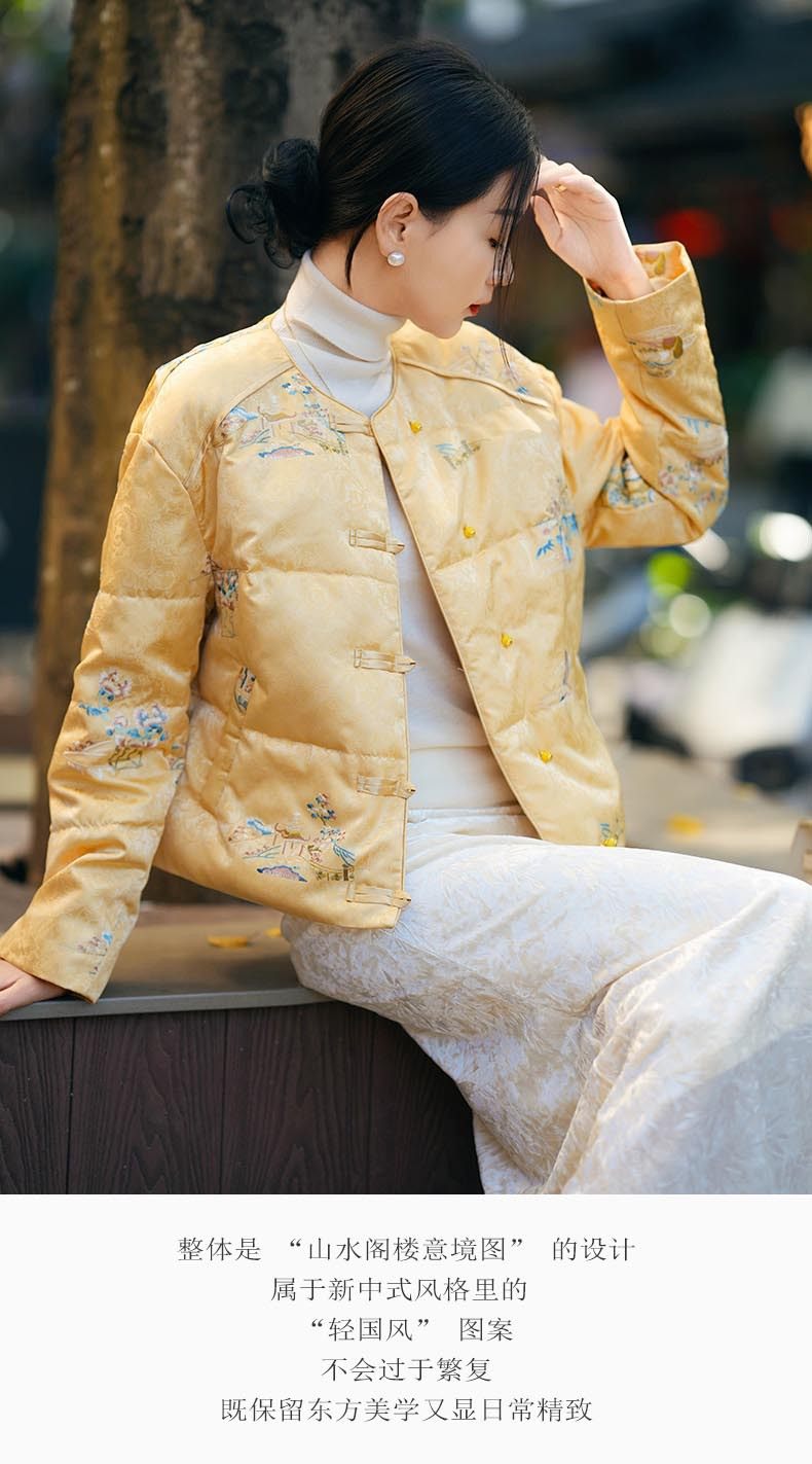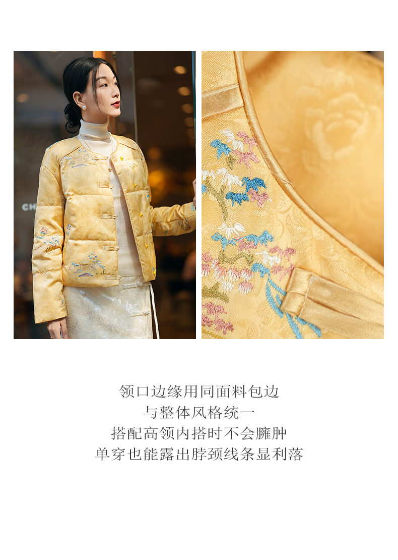 「自」「预售」全新升级【铂金会员836/天猫1129/差价293】(13035)洛诗琳新中式刺绣鹅绒服2025秋冬国风小个子保暖短款羽绒服