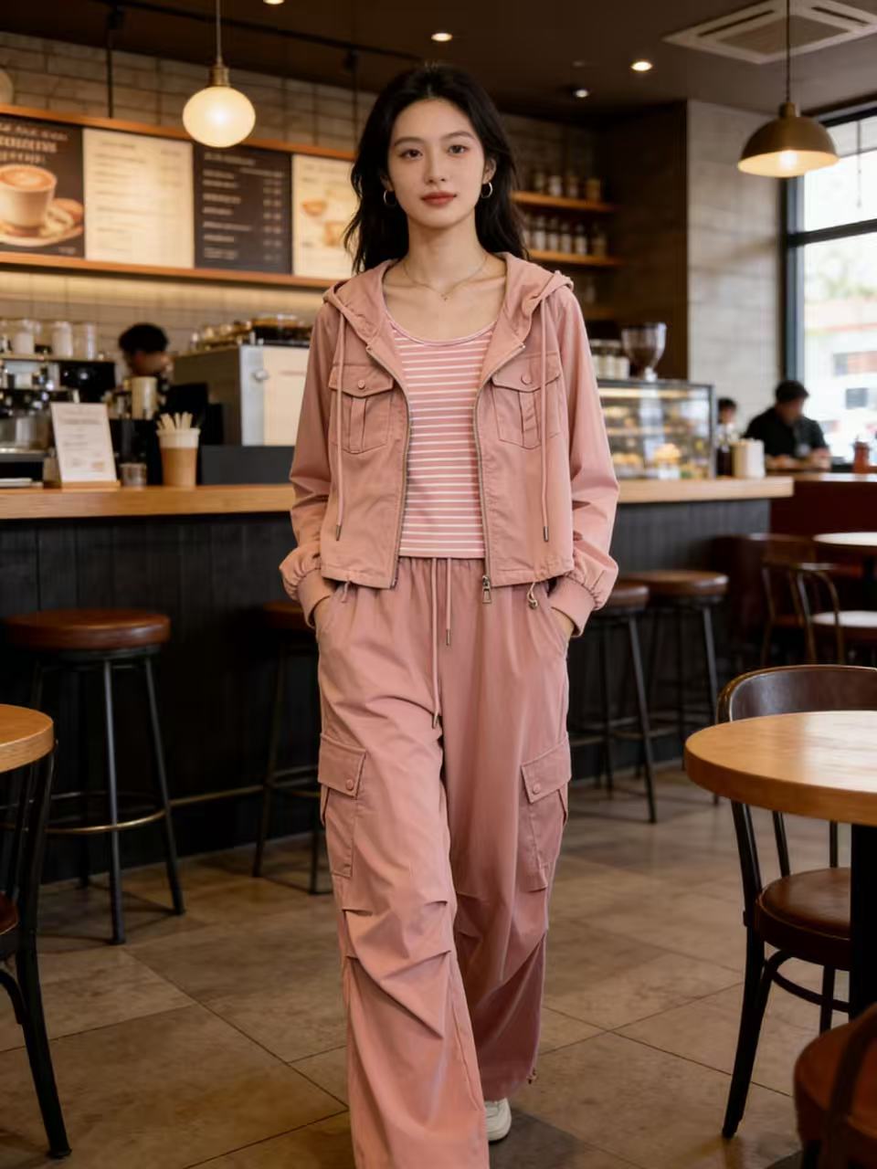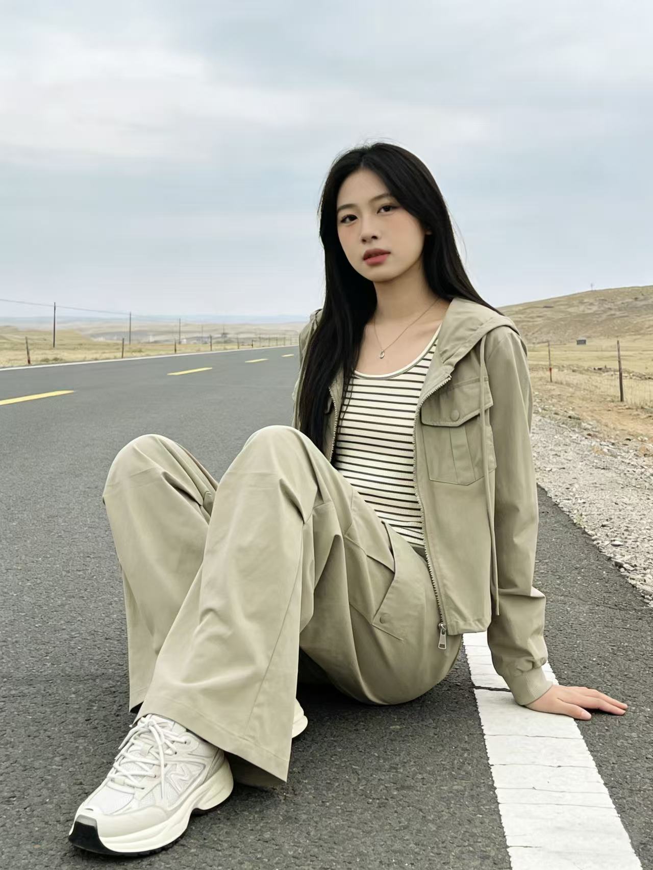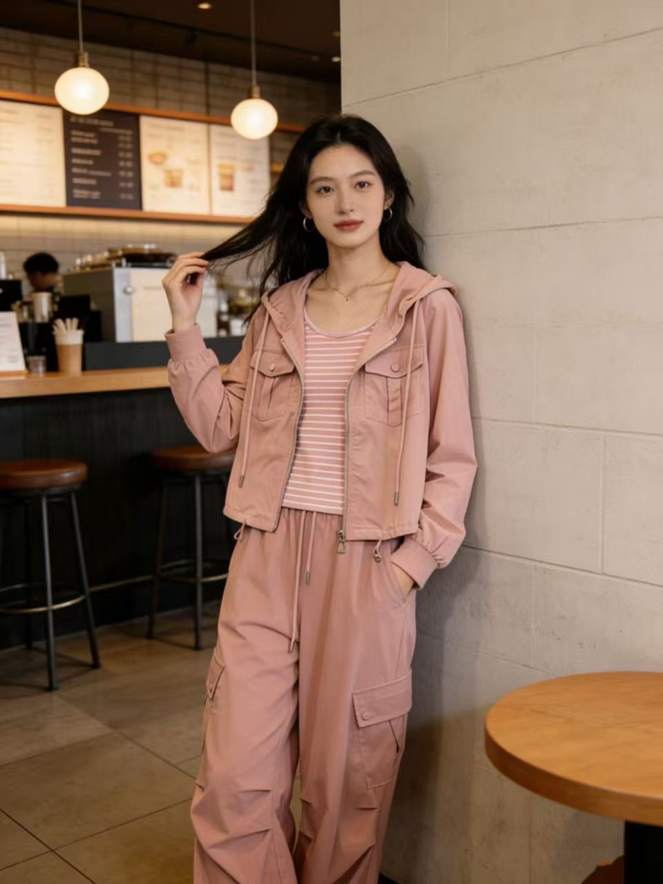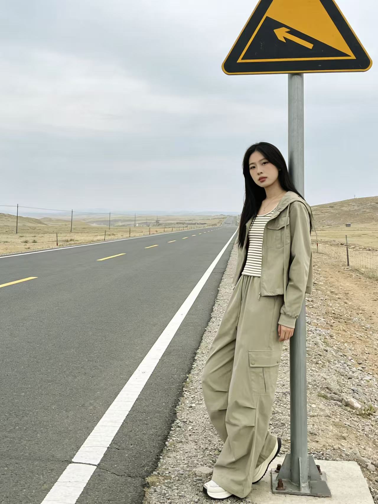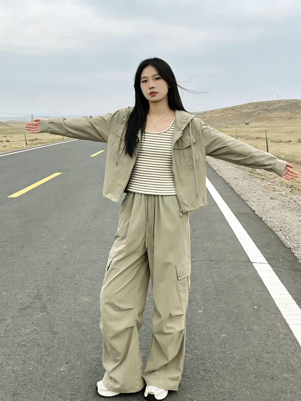活动爆款【自营】衣周期~(三件套)A06休闲连帽外套➕条纹背心➕休闲工装裤-喜出