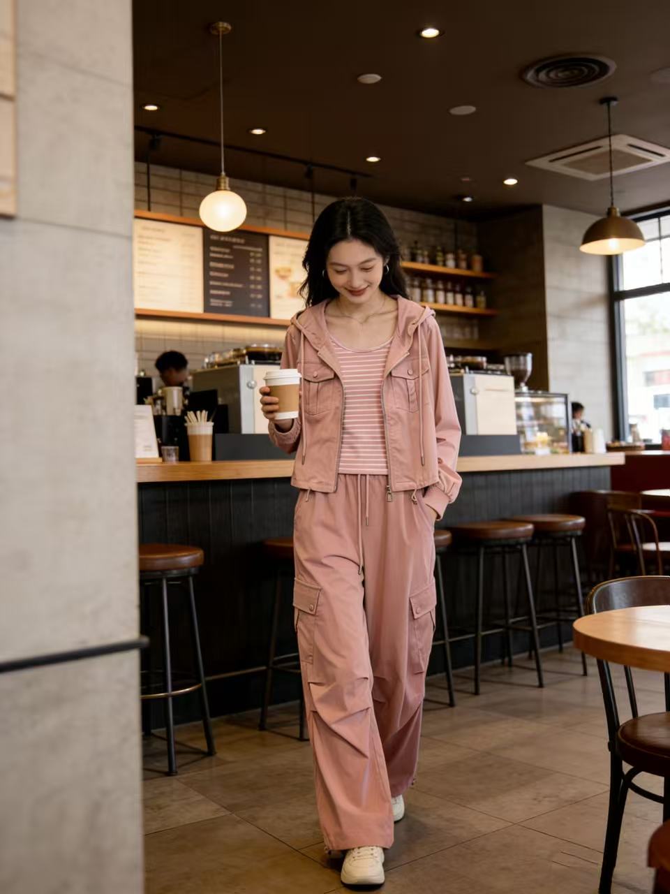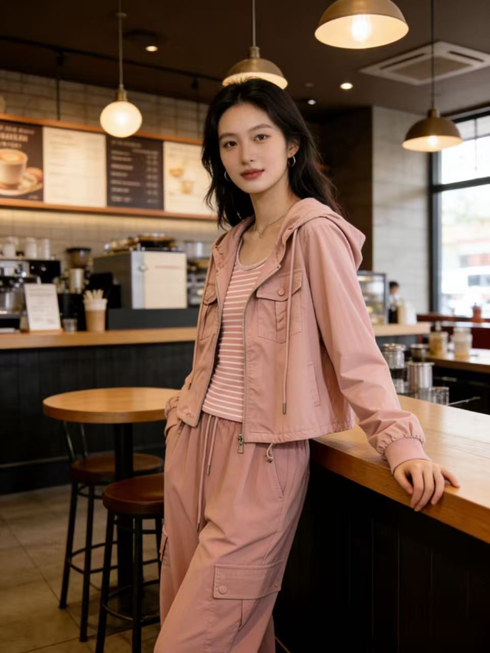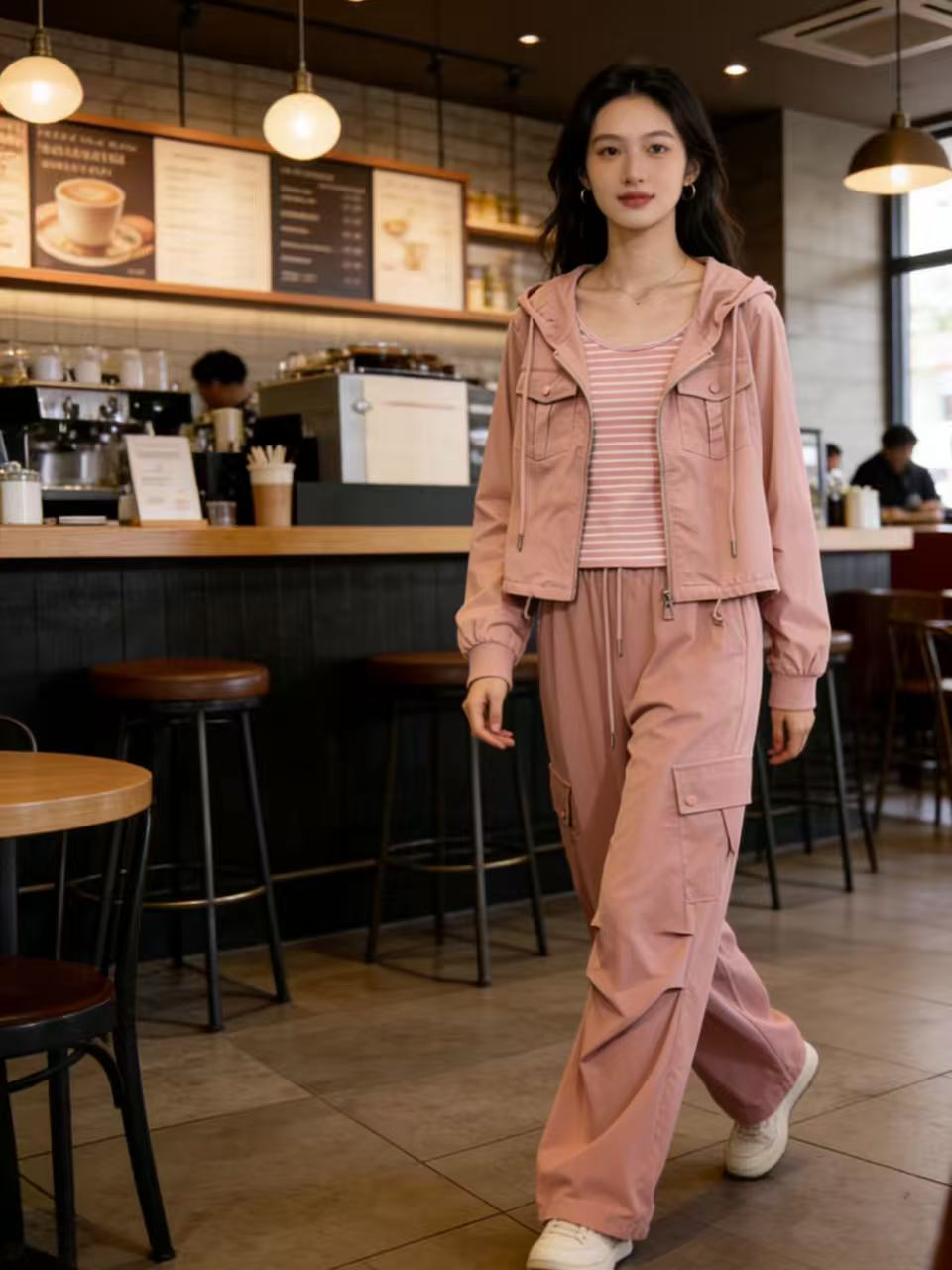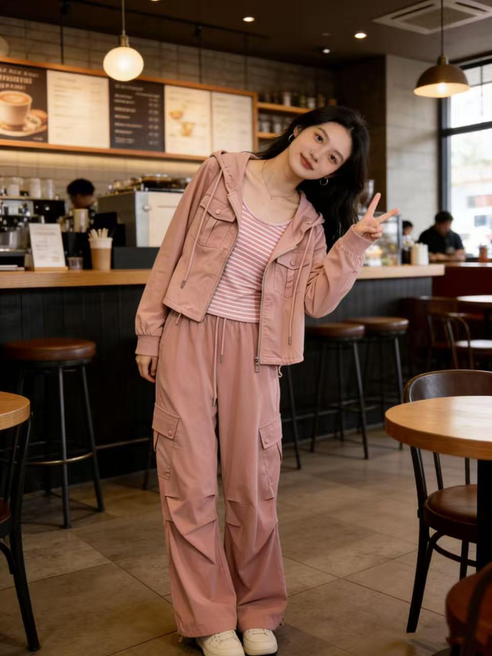 活动爆款【自营】衣周期~(三件套)A06休闲连帽外套➕条纹背心➕休闲工装裤-喜出