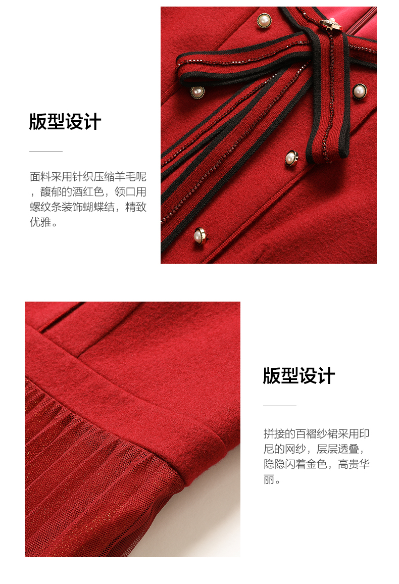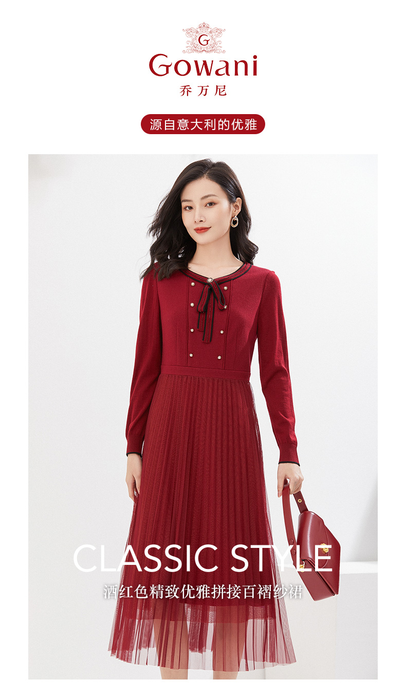 乔万尼新款收腰连衣裙韩系设计感显瘦红色礼服EF3E813