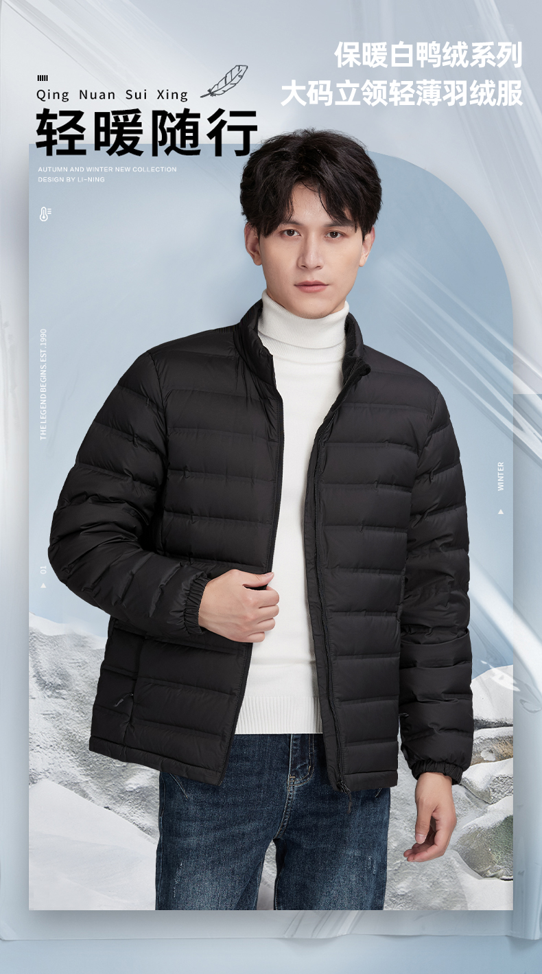 【新款DK】大依优型大码男装立领轻薄羽绒服大号外套休闲加肥加大胖子穿上衣