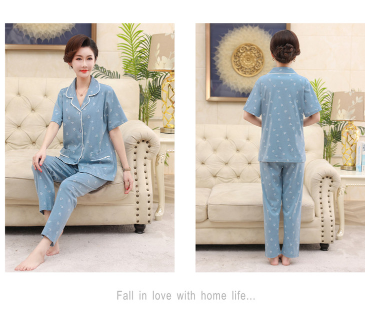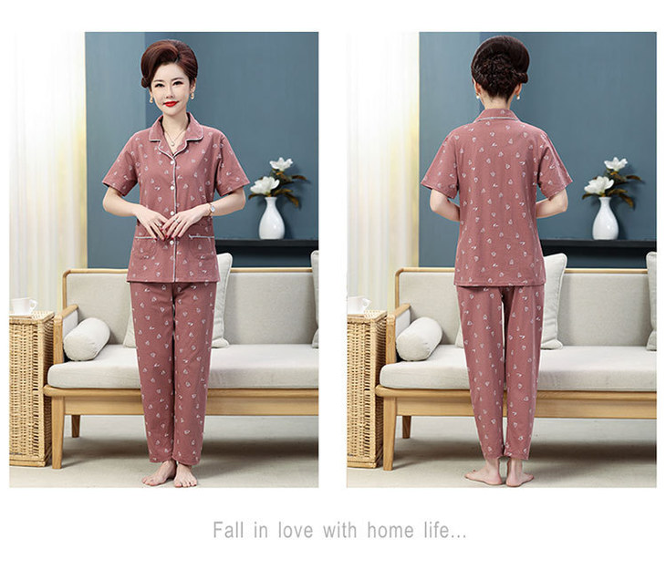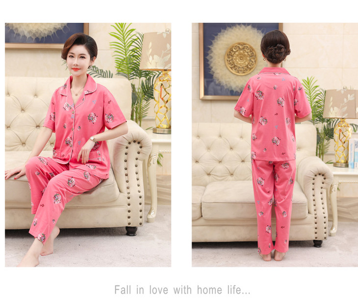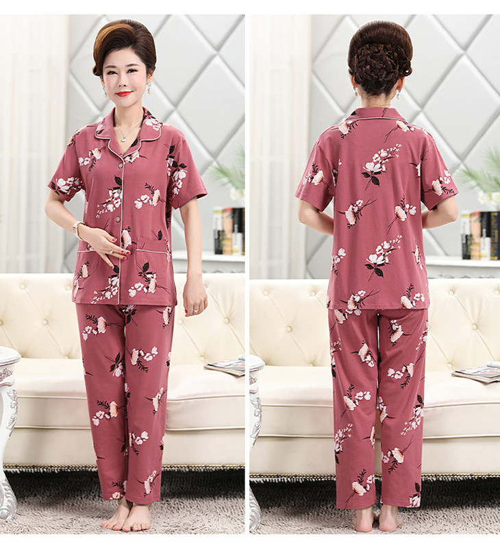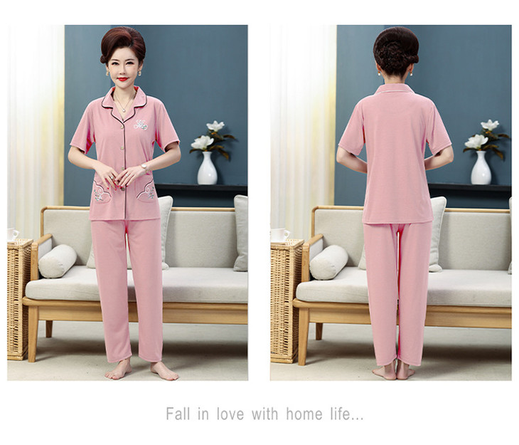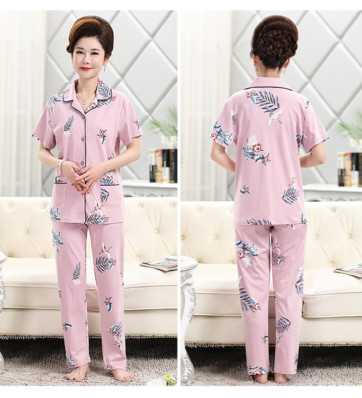 夏季中老年女士妈妈纯棉睡衣,短袖长裤老人家居服套装LJX-544