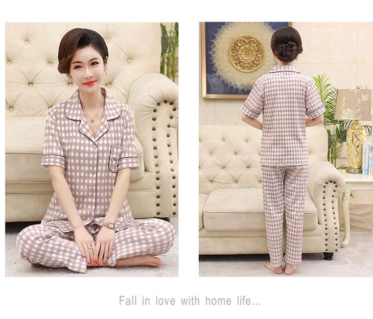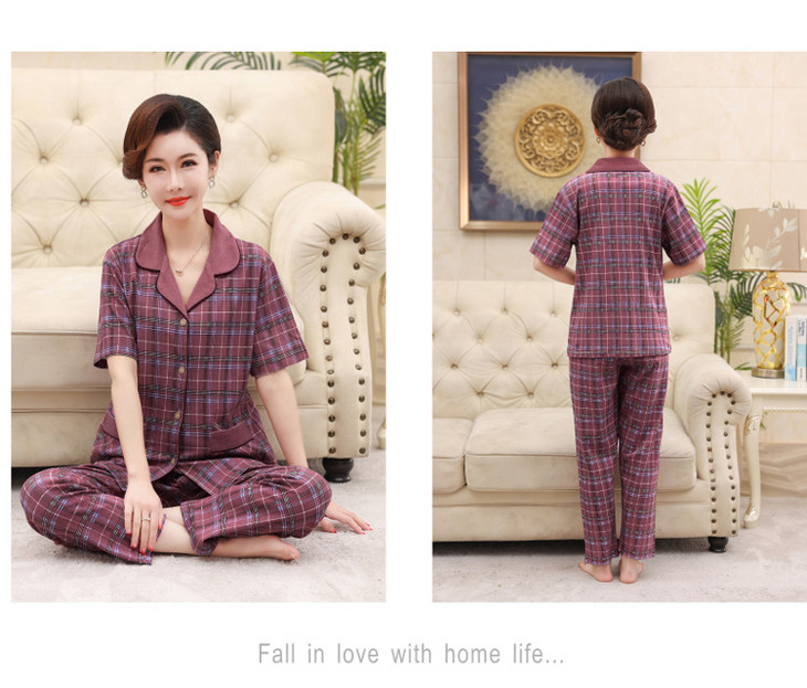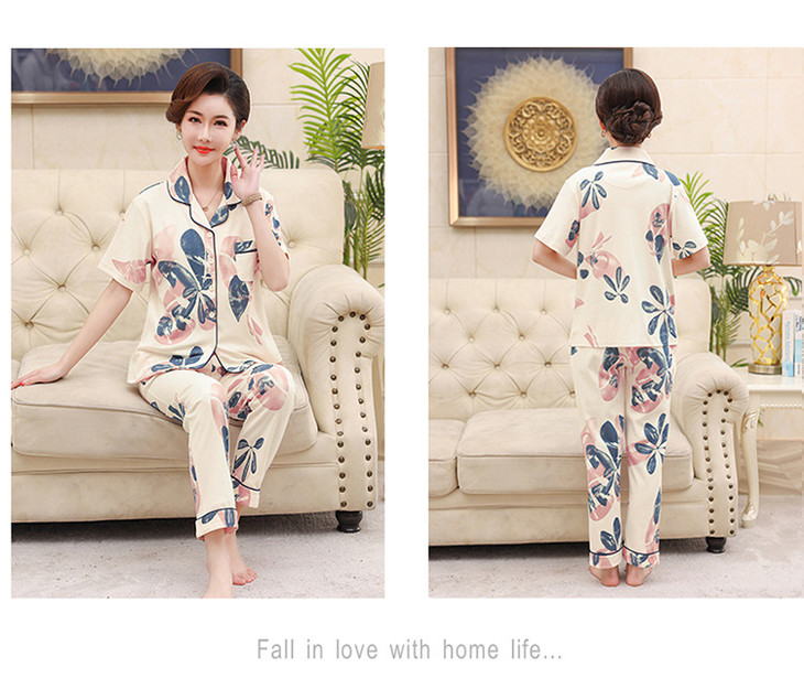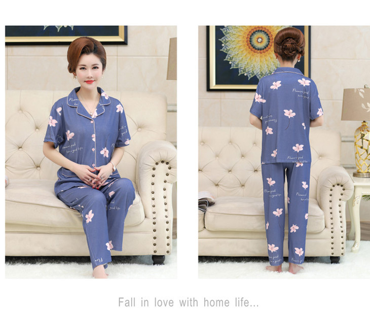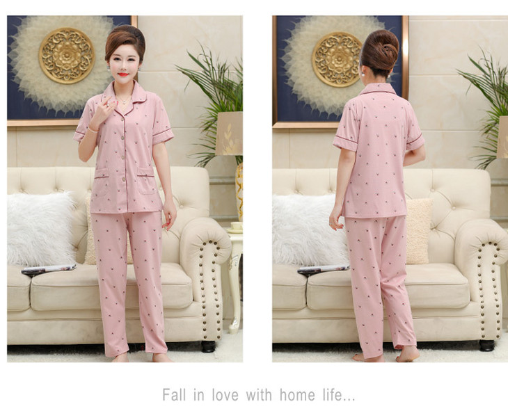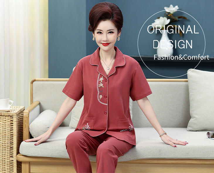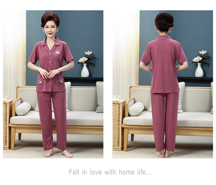 夏季中老年女士妈妈纯棉睡衣,短袖长裤老人家居服套装LJX-544
