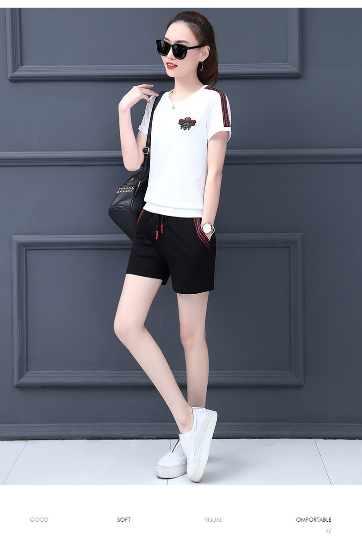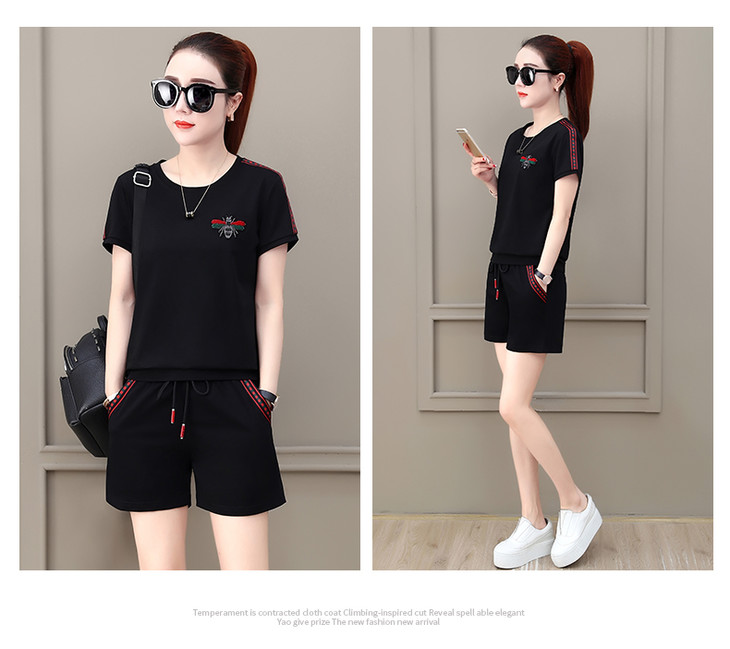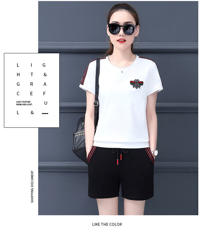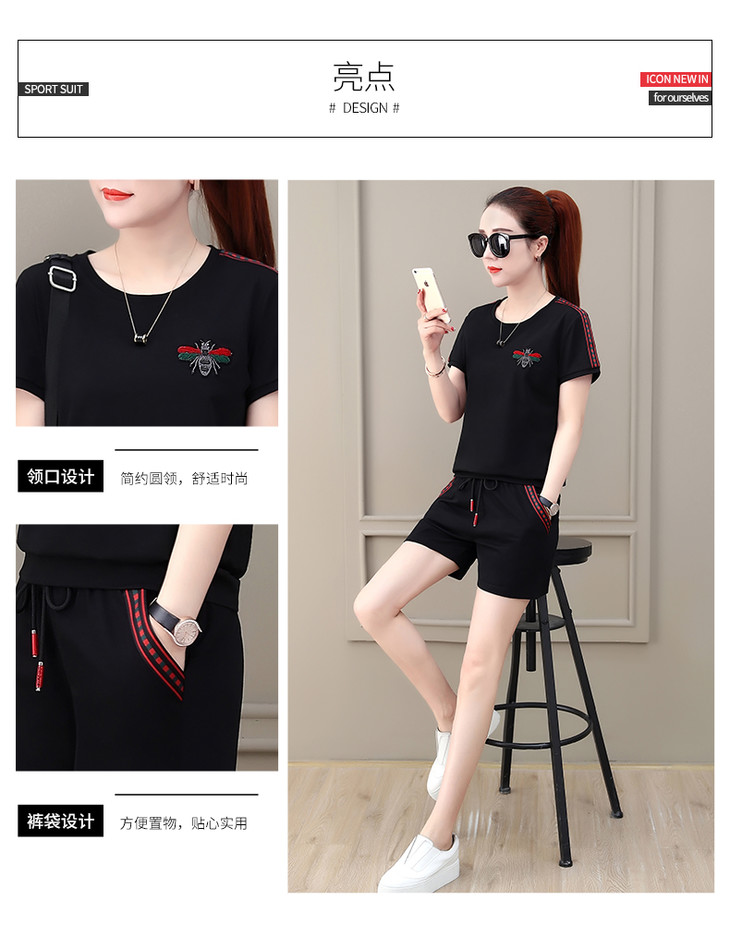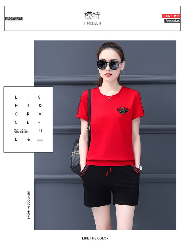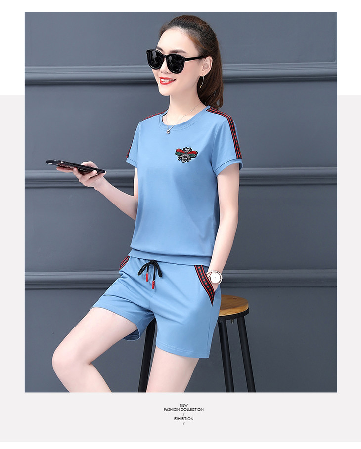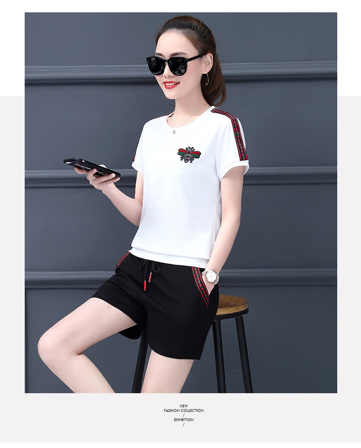 SP-XD8266夏季新款小蜜蜂短袖短裤两件套运动装