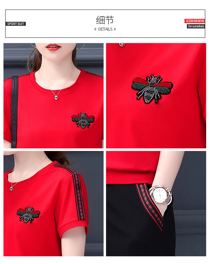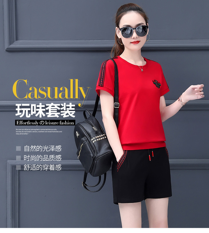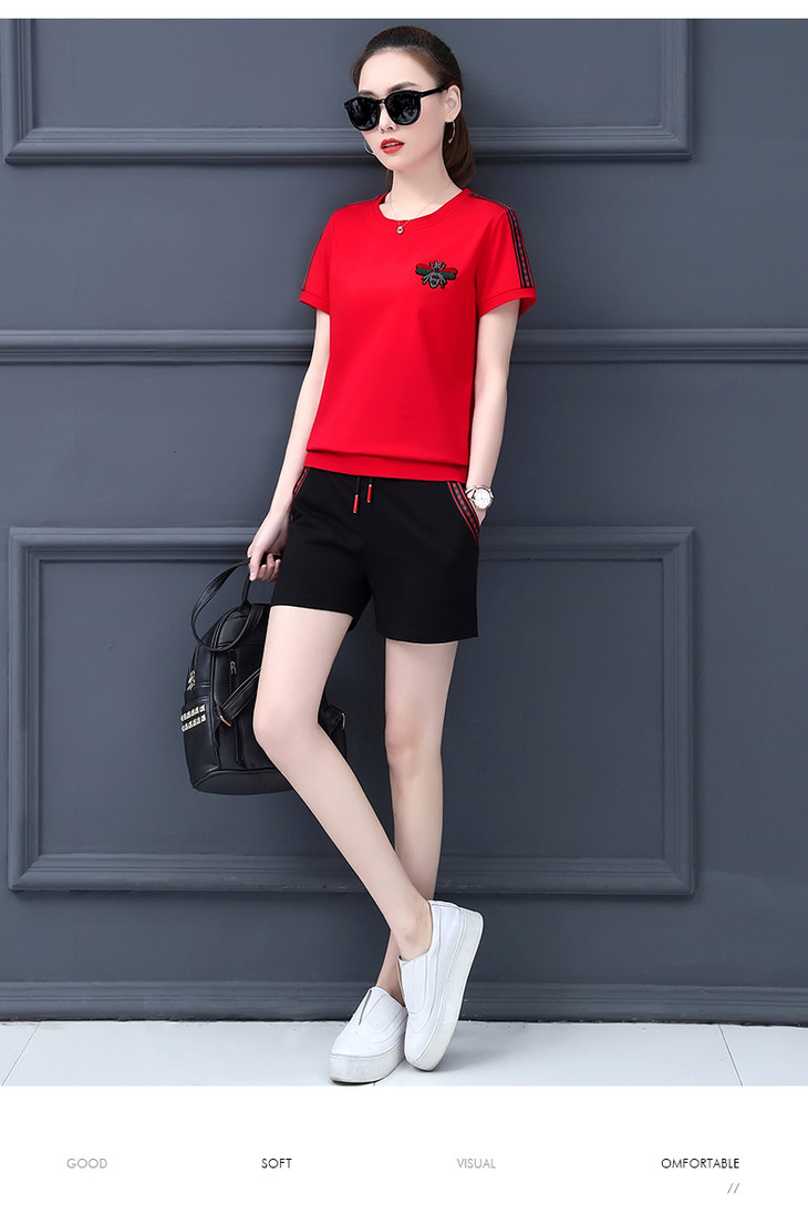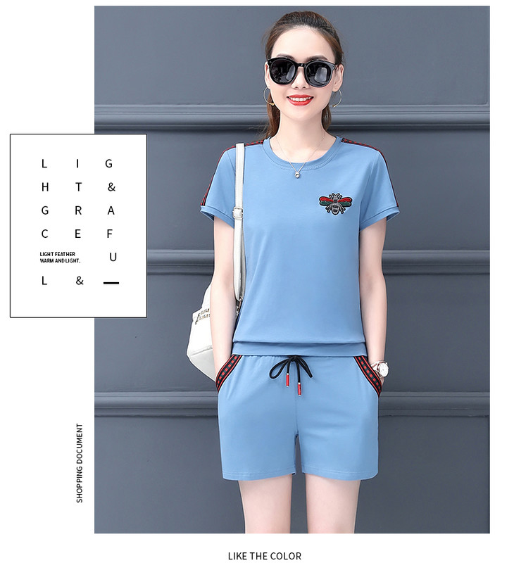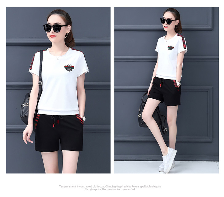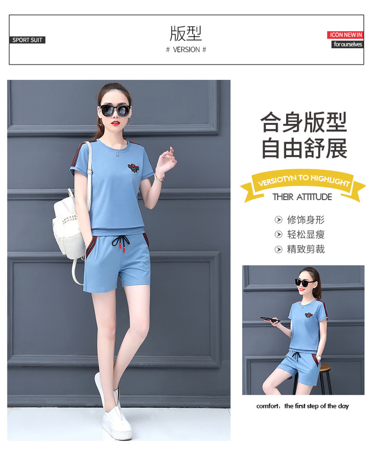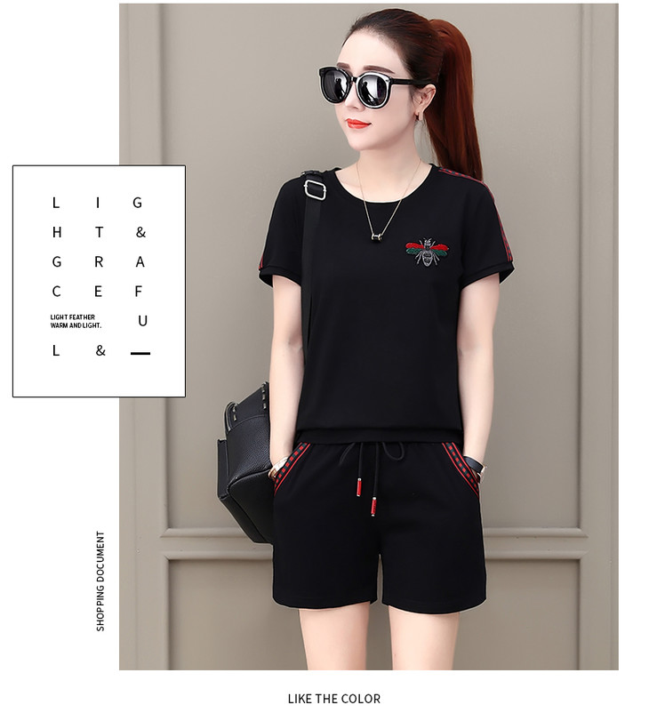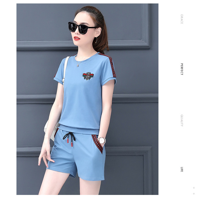 SP-XD8266夏季新款小蜜蜂短袖短裤两件套运动装