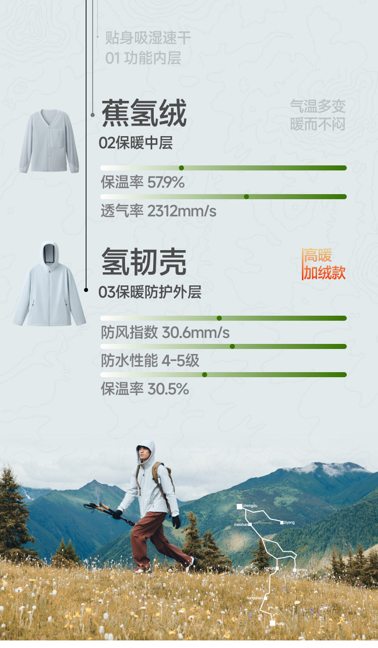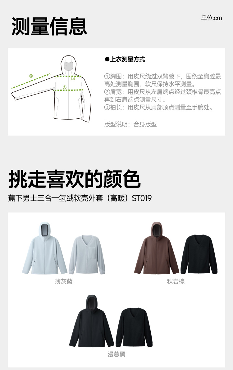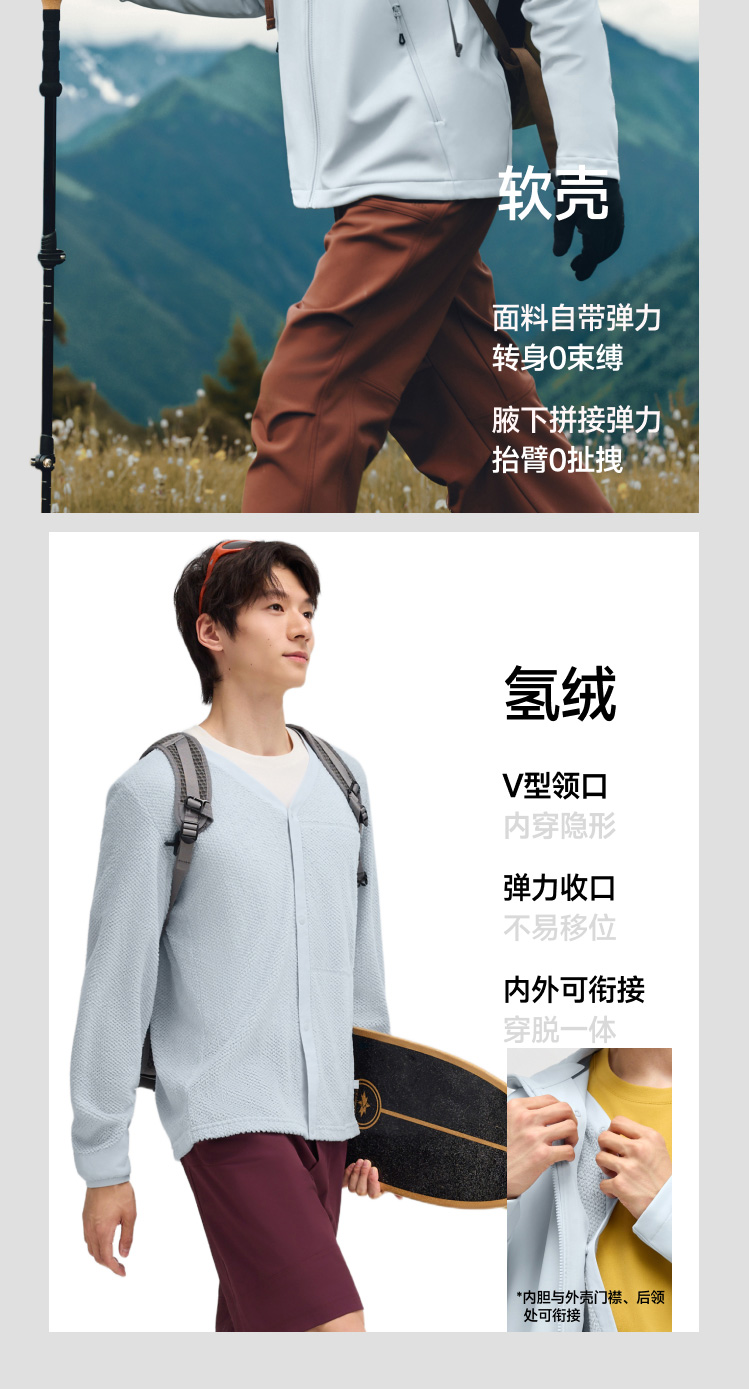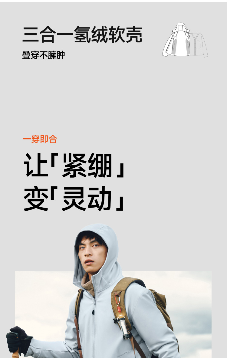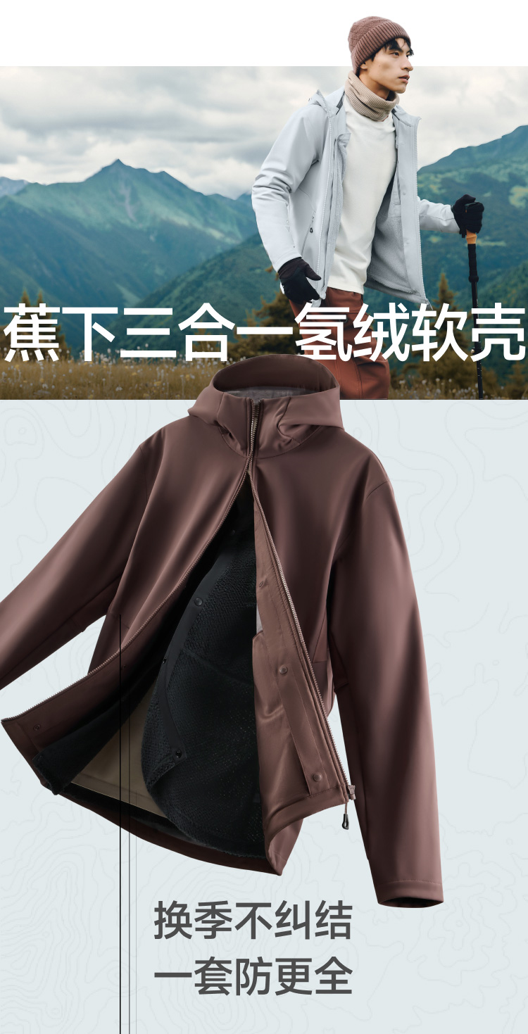【蕉下精选】蕉下男士三合一氢绒软壳外套 ST01925+ST01825
