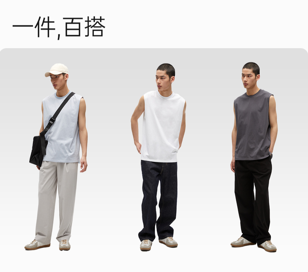 【好货清仓 棉感舒适 多孔纤维结构】新奇天圆领无袖T恤背心-宽松版,码数偏大