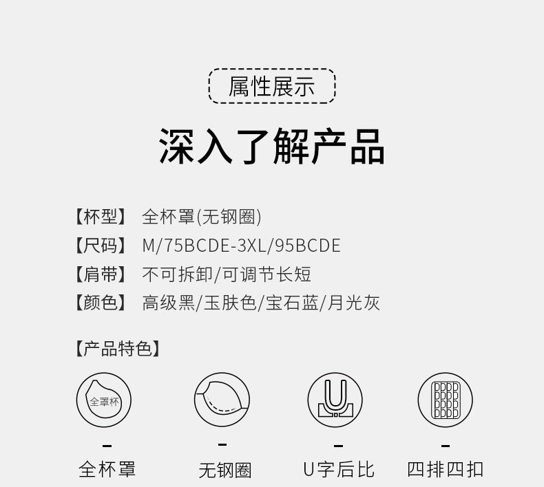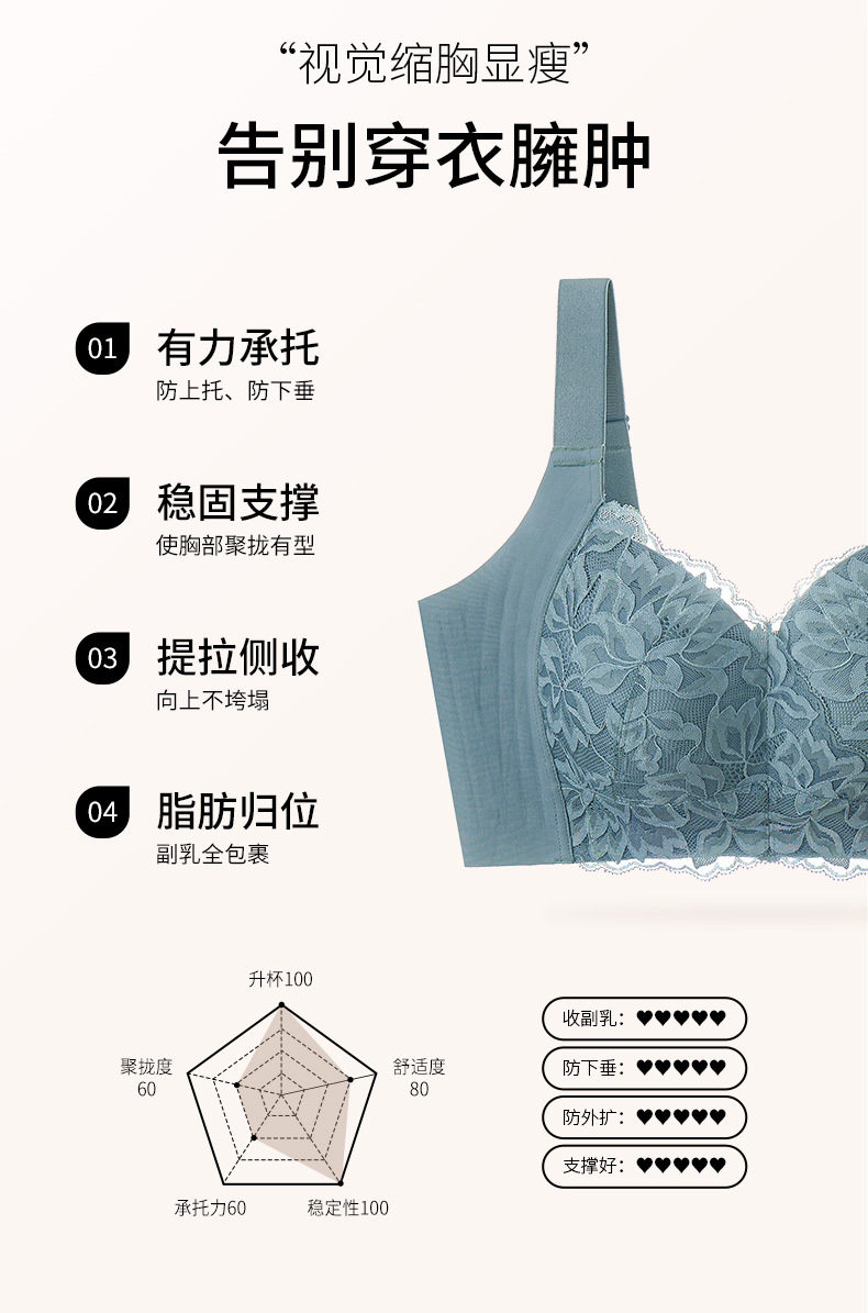QC-6230* 果冻条软支撑内衣女大胸显小全罩杯无钢圈防下垂收副乳调整型文胸(单件)