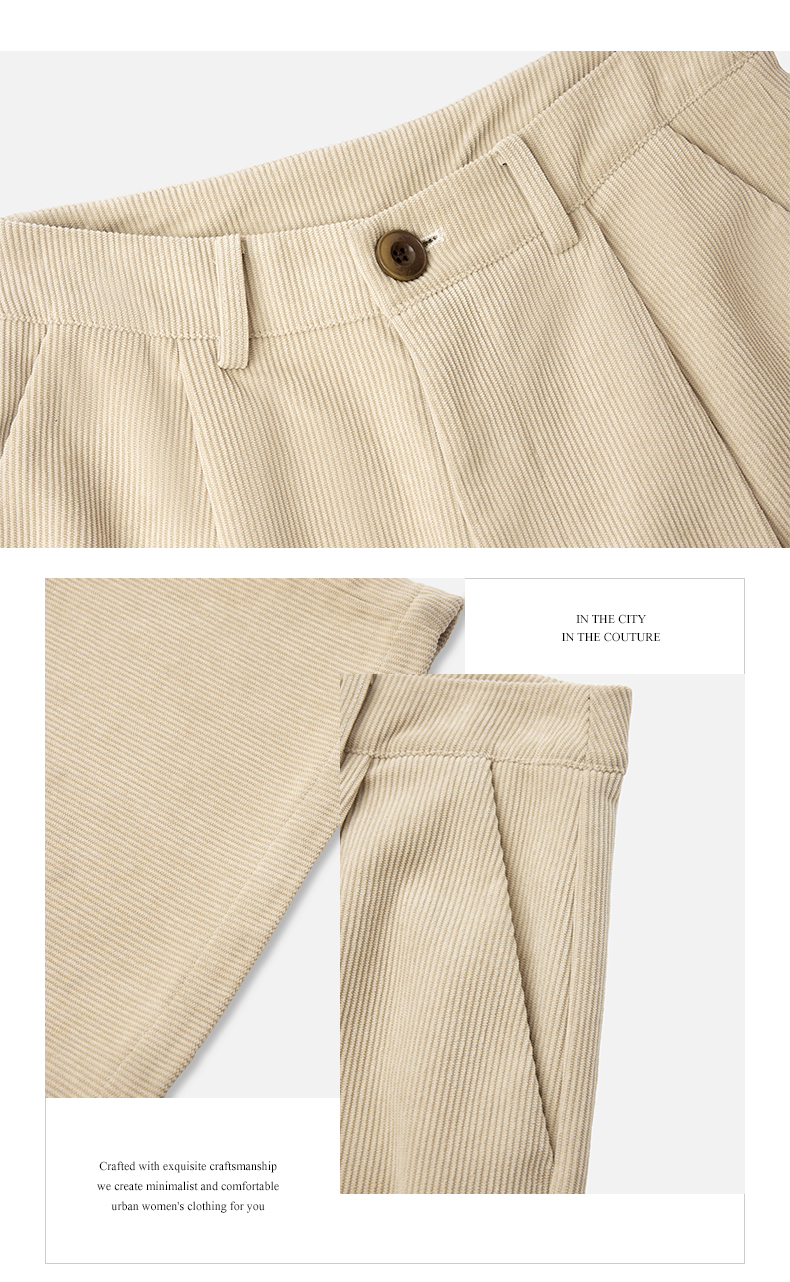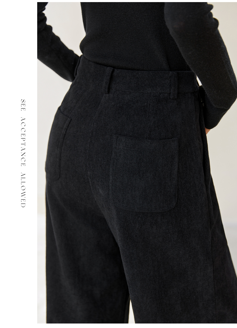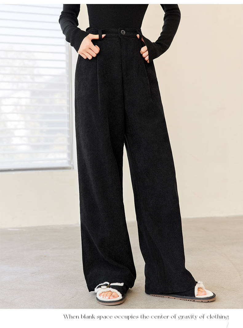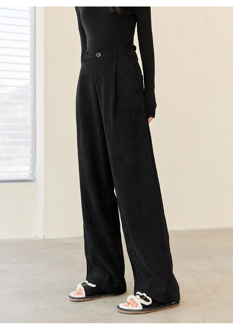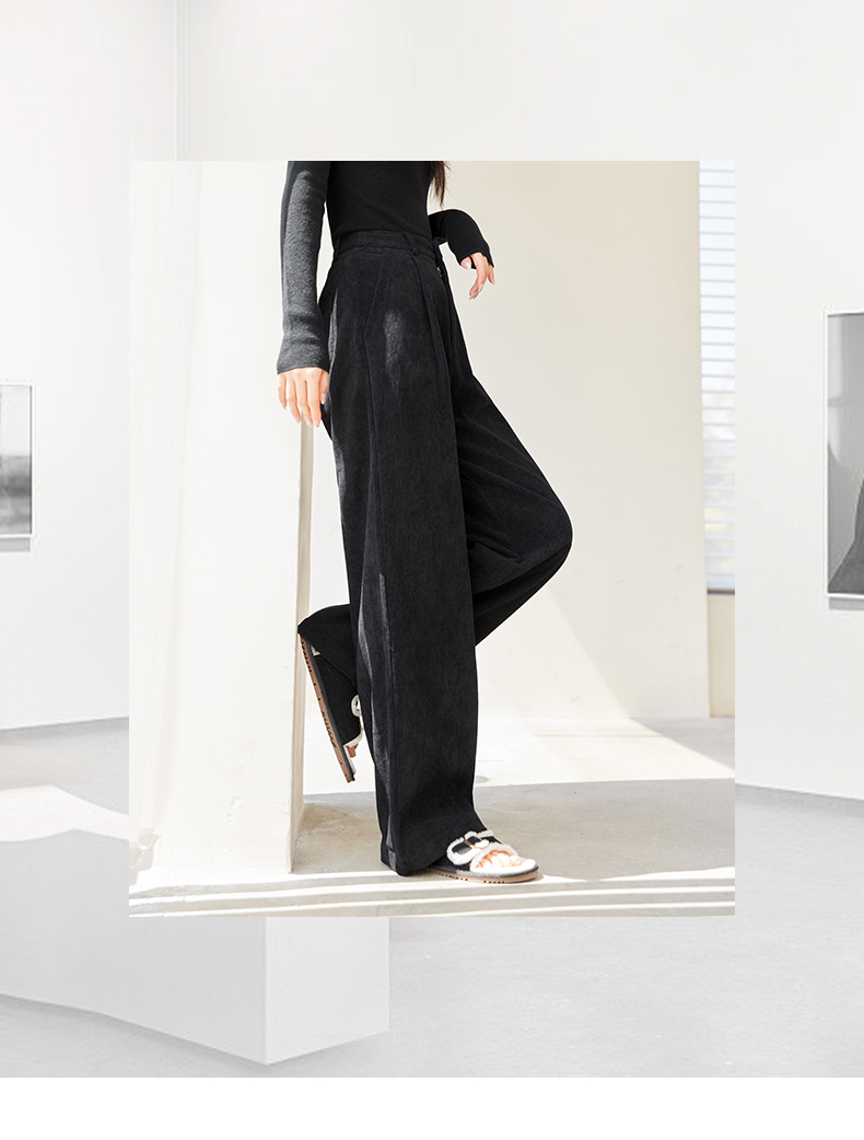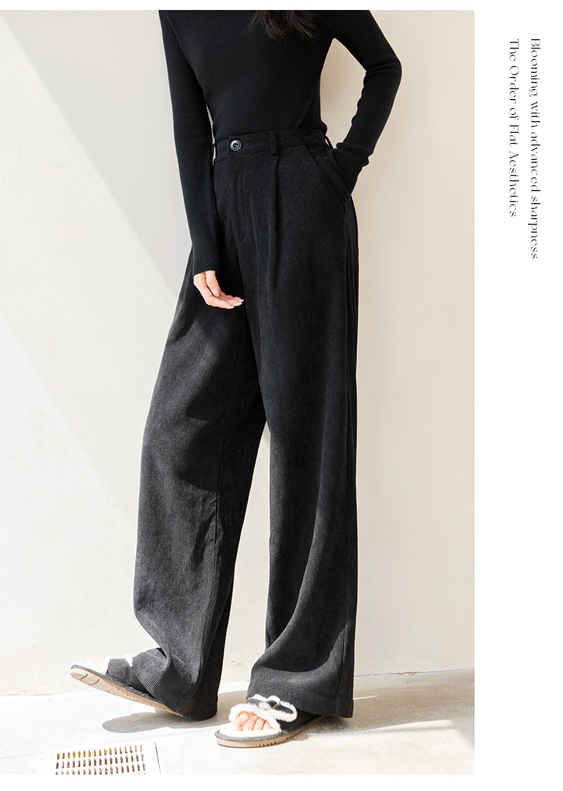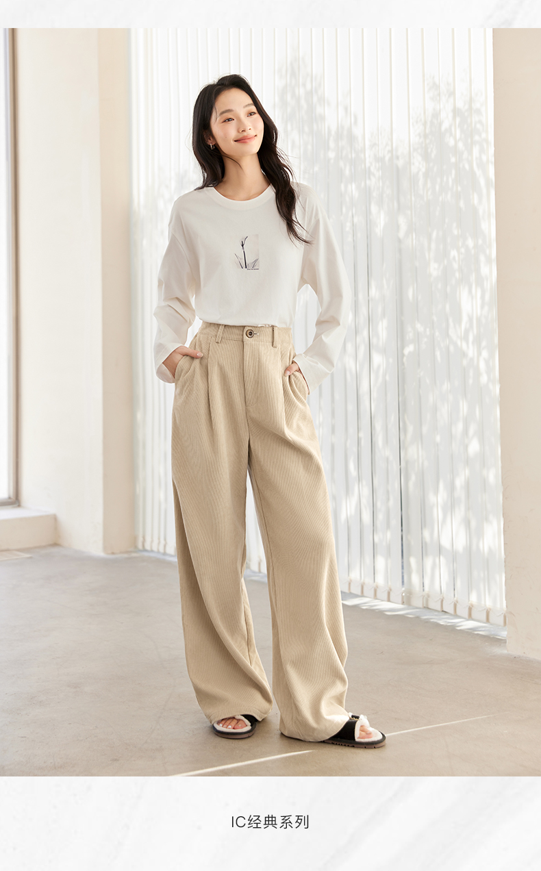 IC 复古时髦通勤舒适灯芯绒阔腿裤新款简约纯色设计女休闲裤