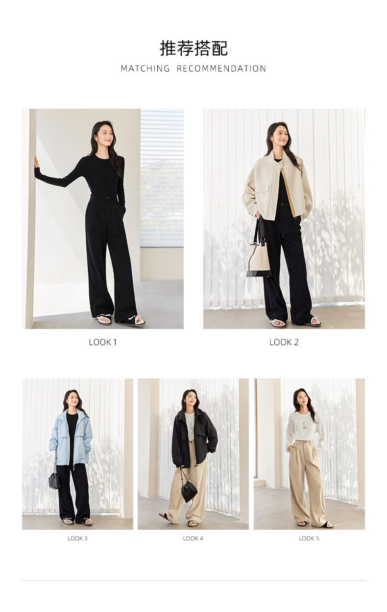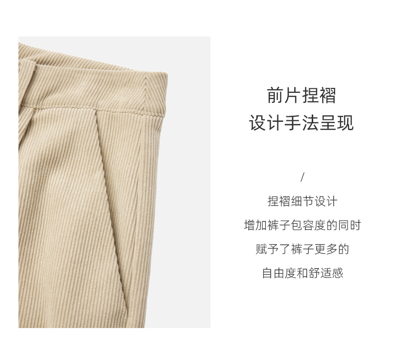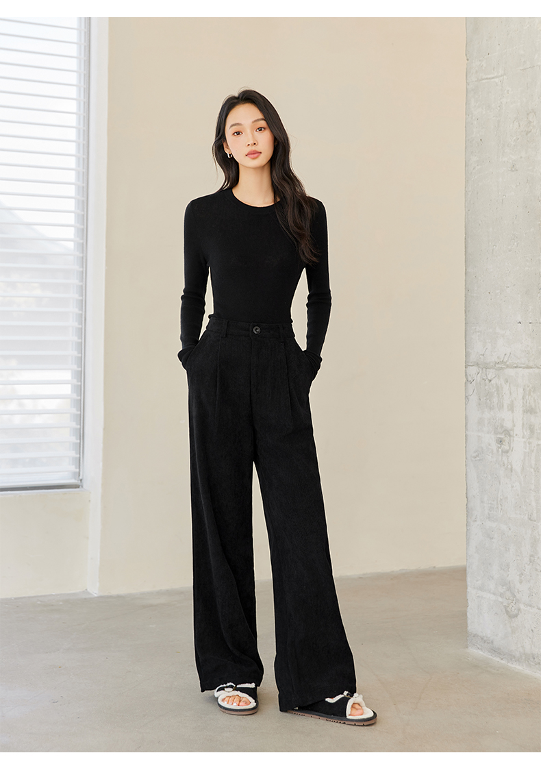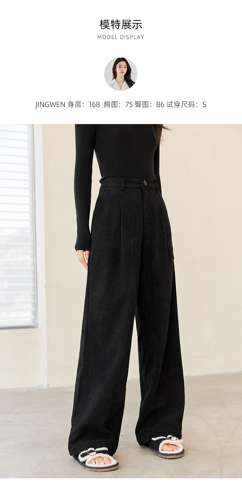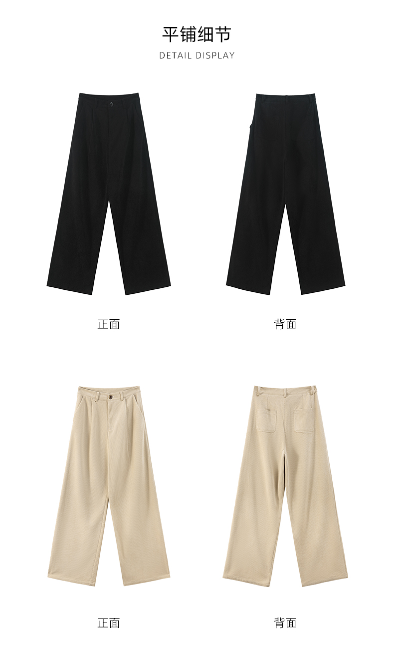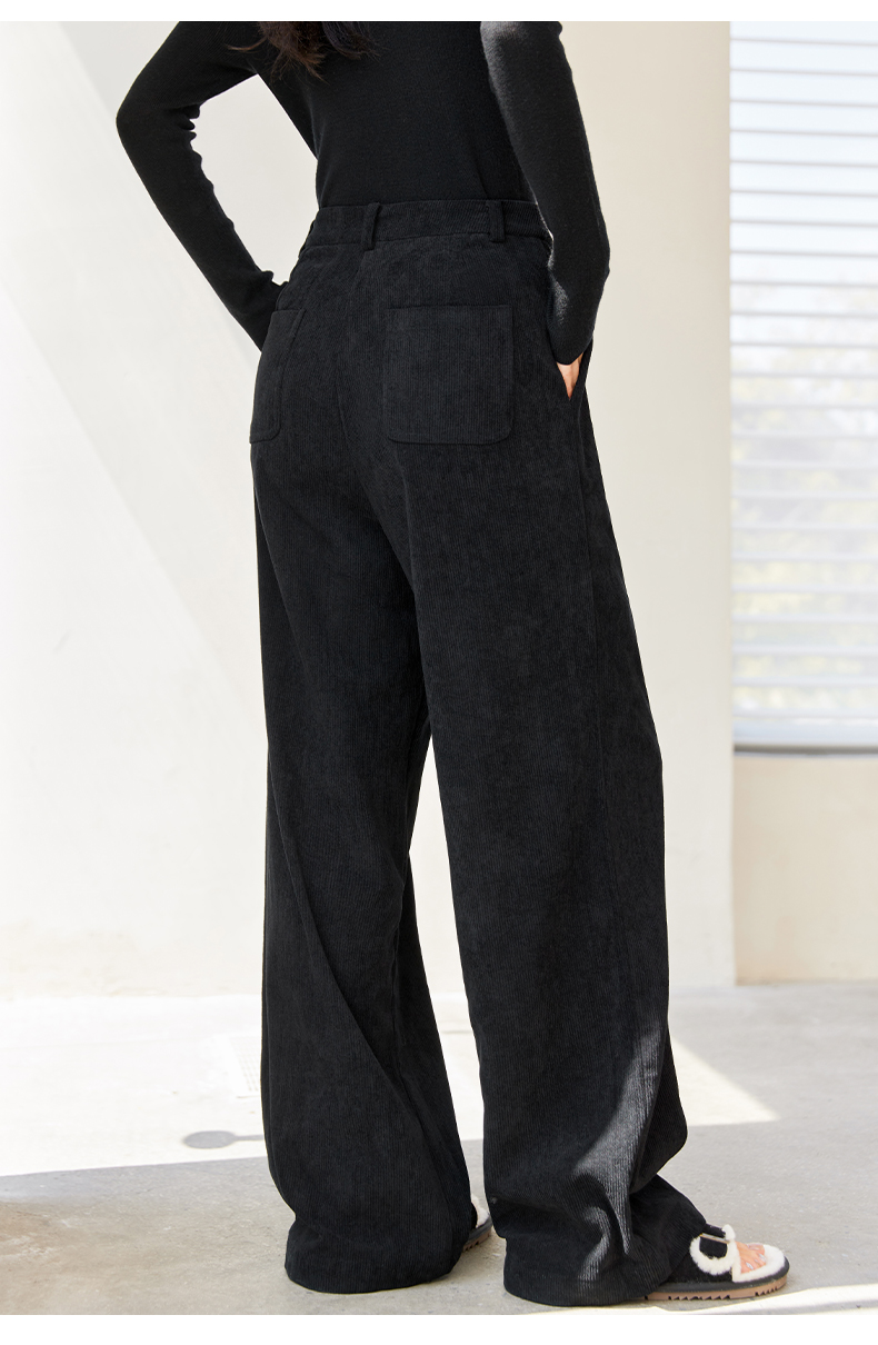 IC 复古时髦通勤舒适灯芯绒阔腿裤新款简约纯色设计女休闲裤