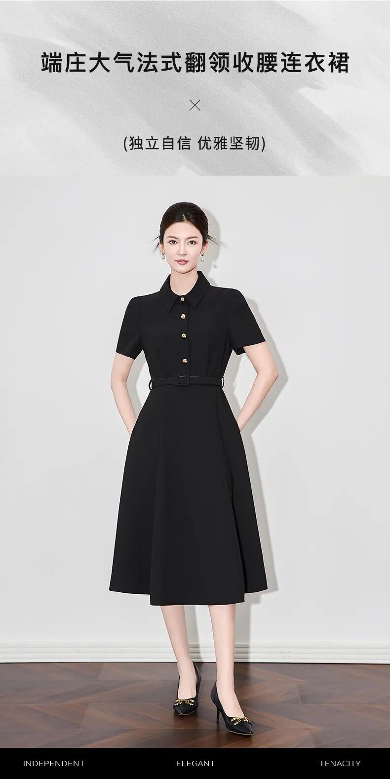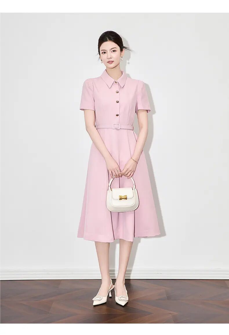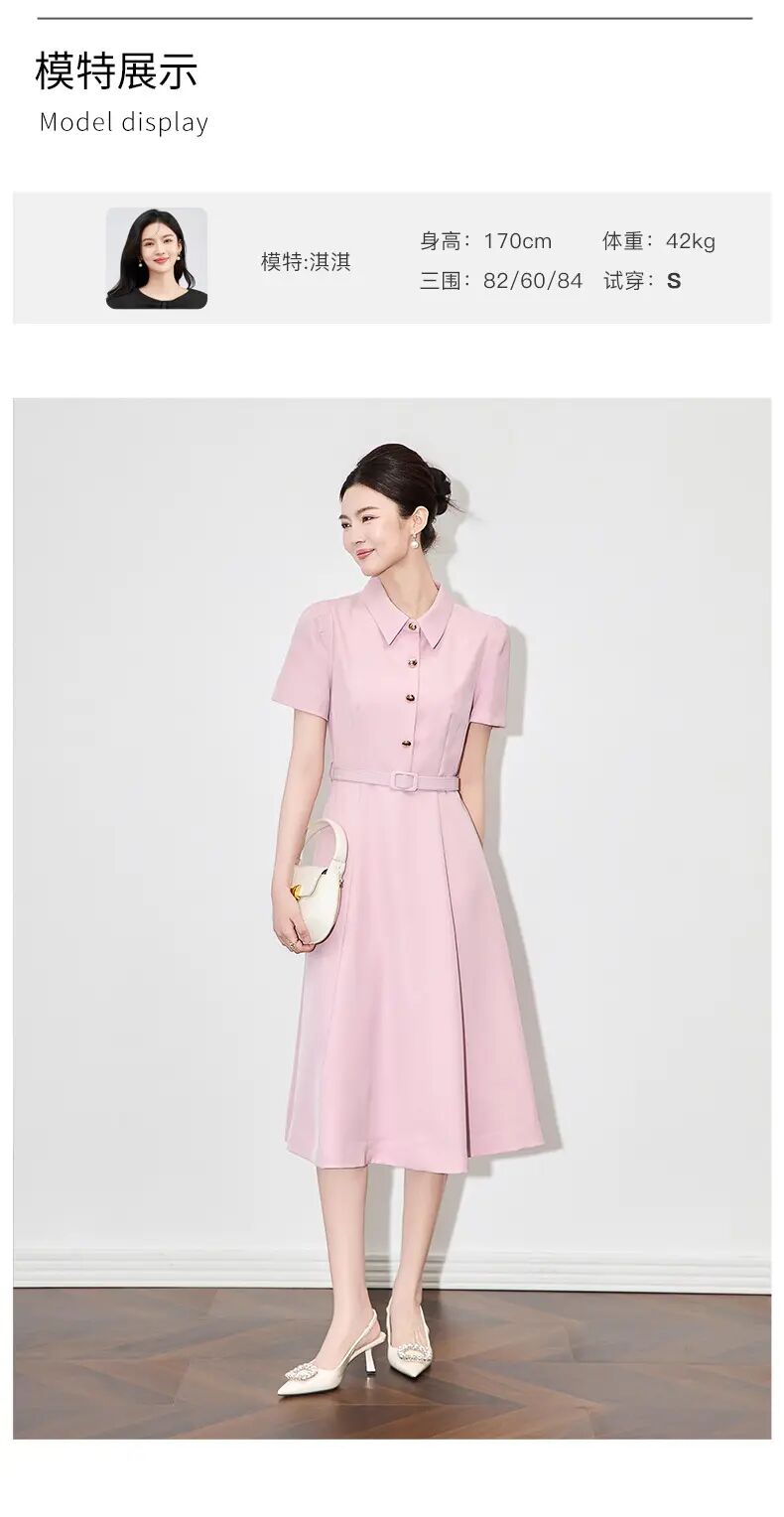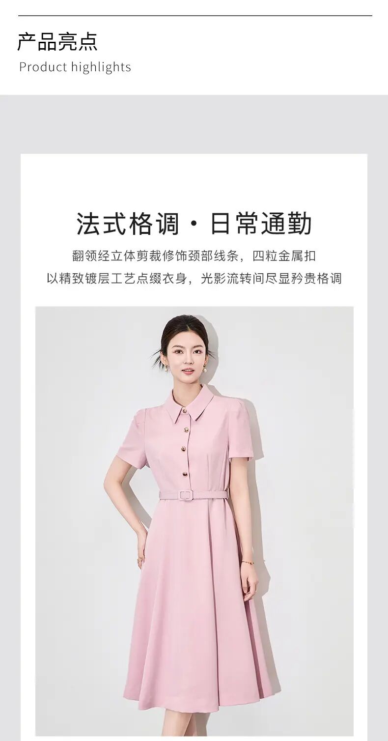 【高货wl】全新升级【铂金会员339/天猫459/差价120】(92825) 洛诗琳法式端庄大气简约翻领收腰气质轻熟风短袖连衣裙