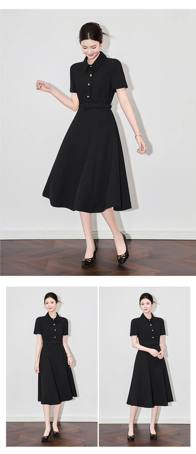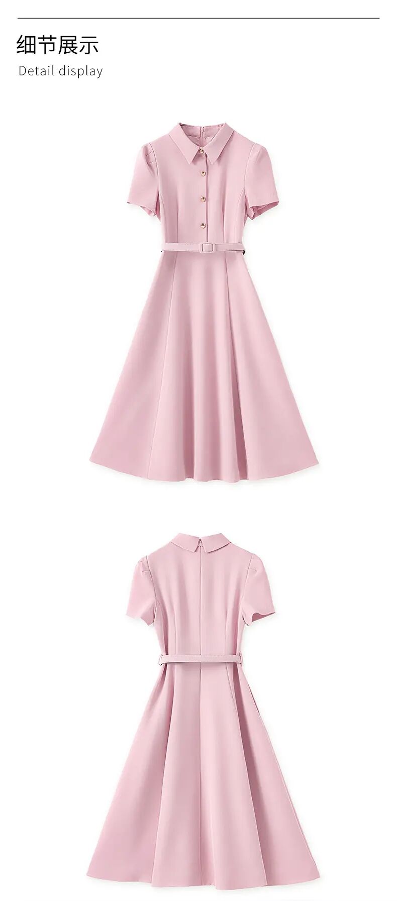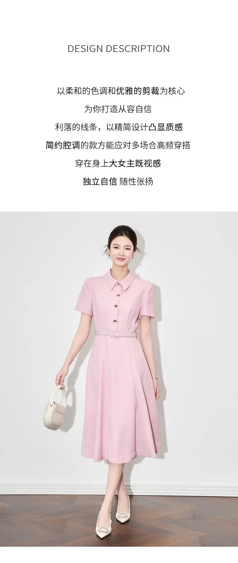 【高货wl】全新升级【铂金会员339/天猫459/差价120】(92825) 洛诗琳法式端庄大气简约翻领收腰气质轻熟风短袖连衣裙