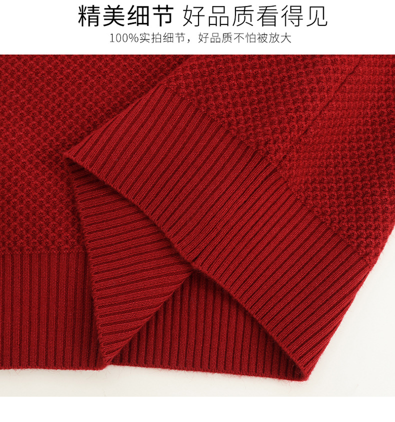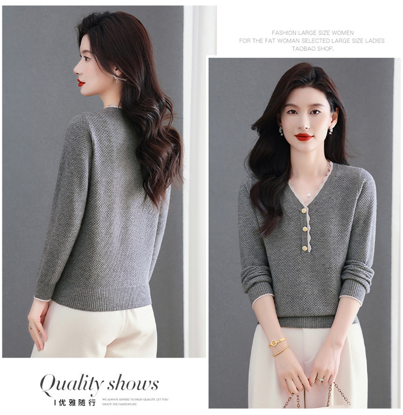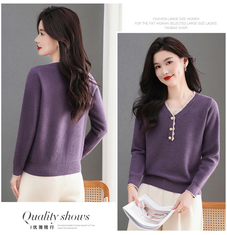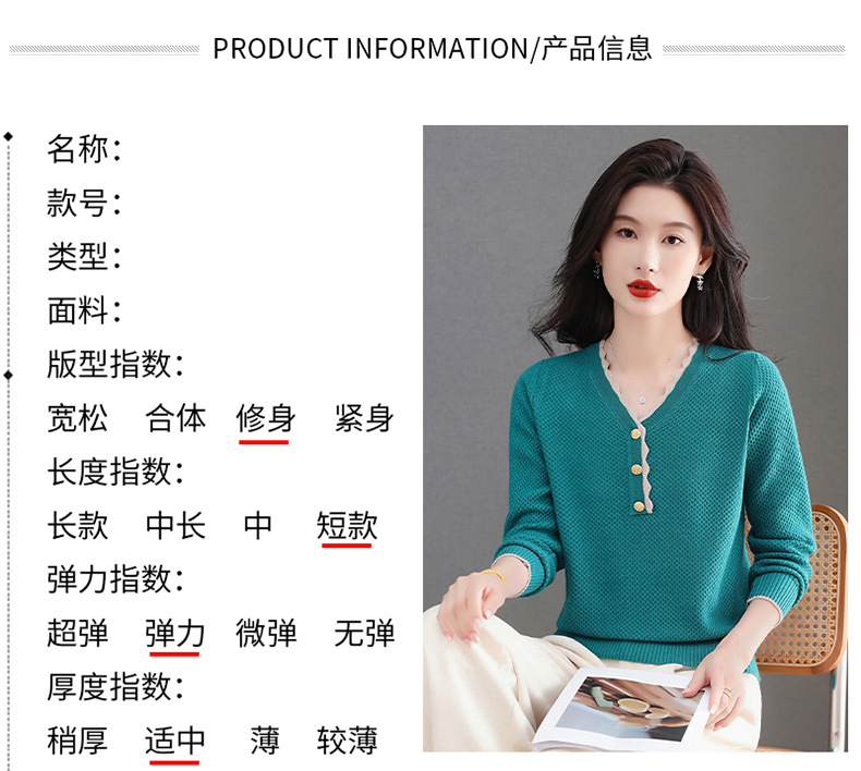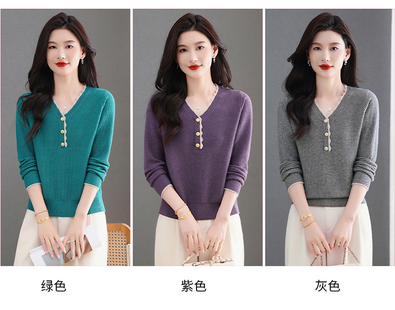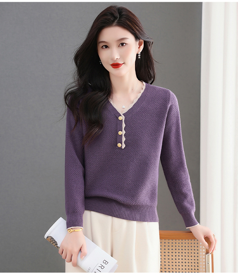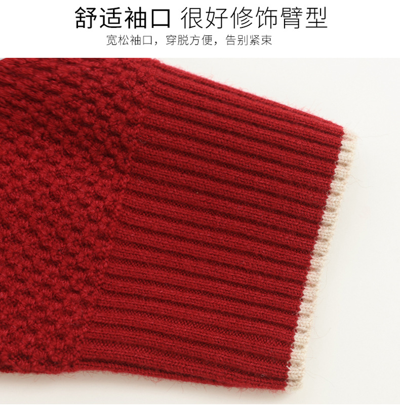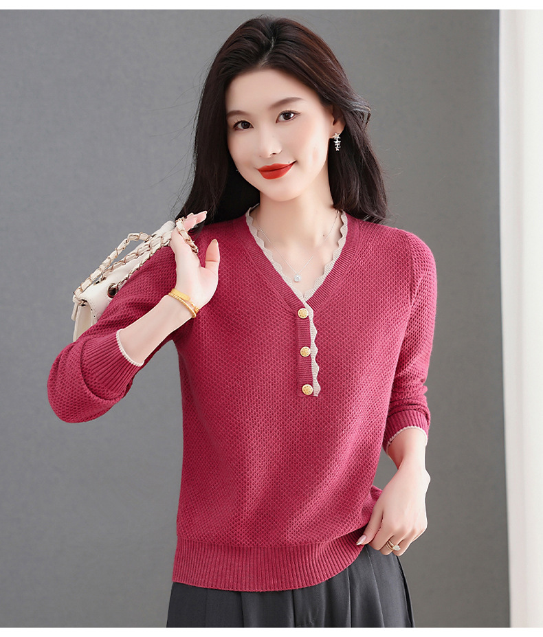 CC女士早秋红色毛衣撞色领边针织衫长袖上衣秋装2025新款V领打底衫