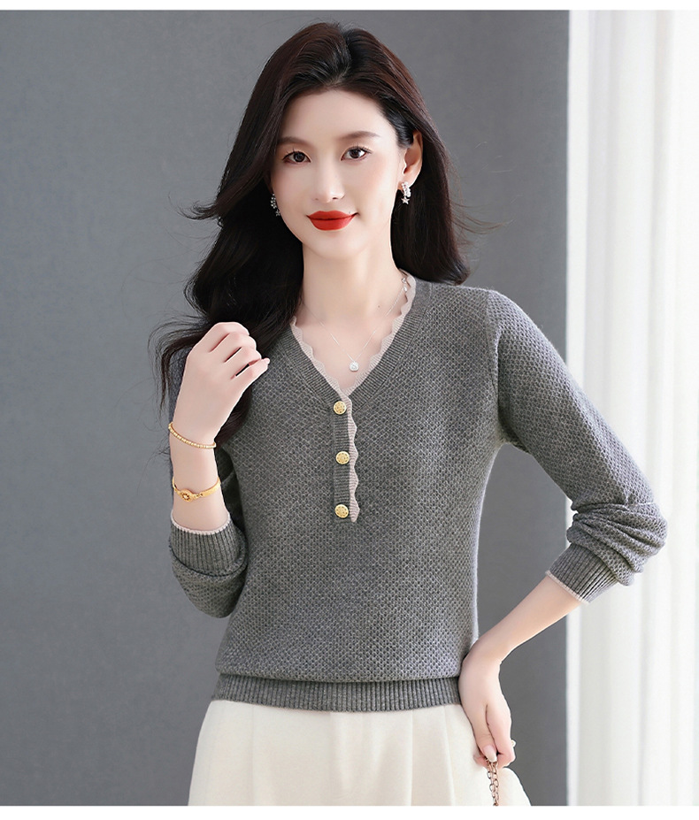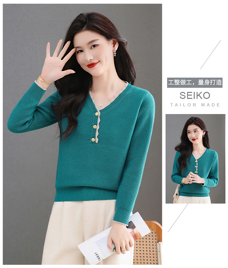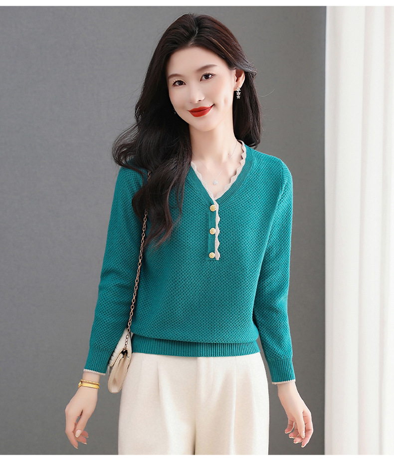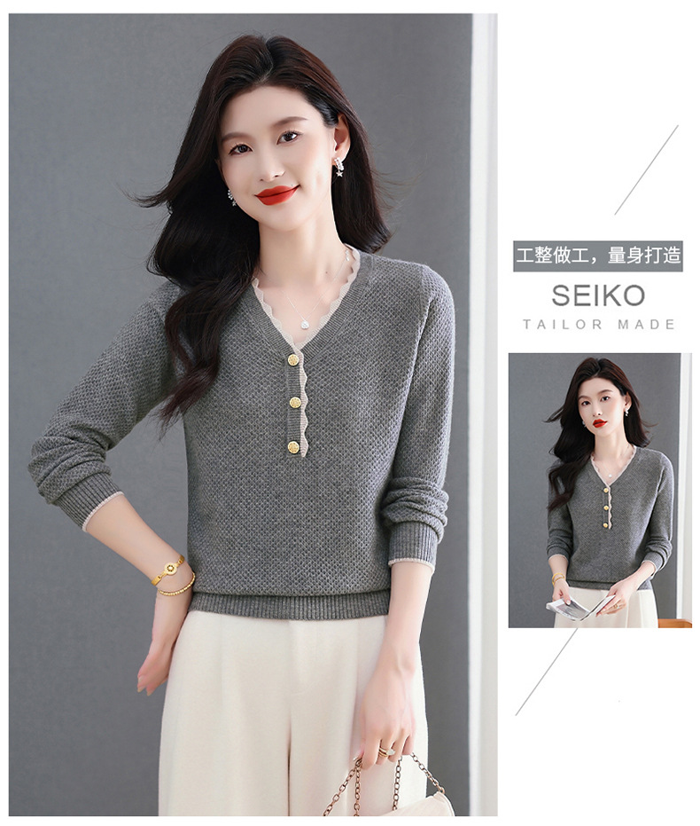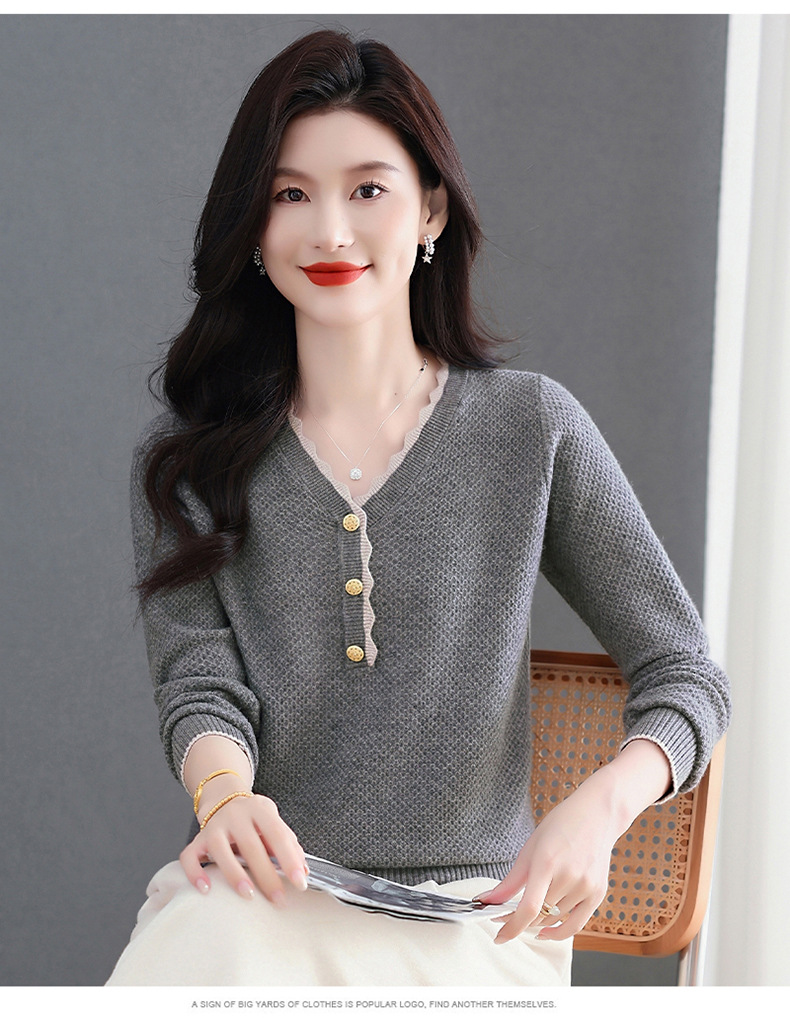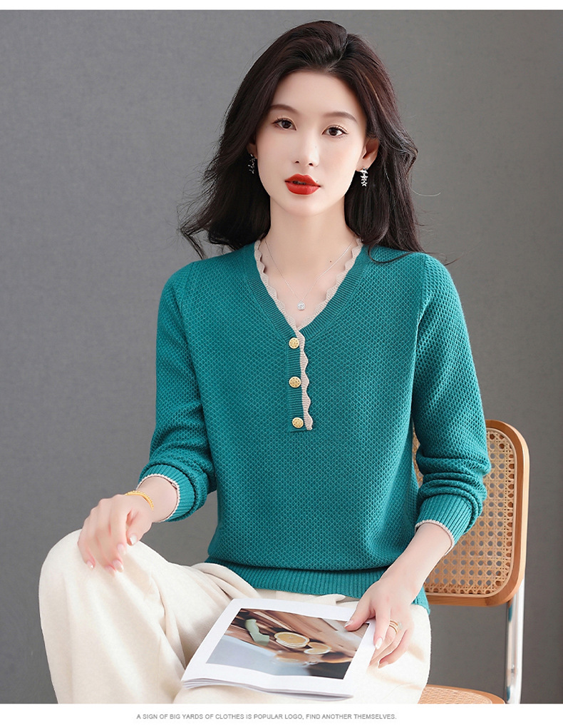 CC女士早秋红色毛衣撞色领边针织衫长袖上衣秋装2025新款V领打底衫