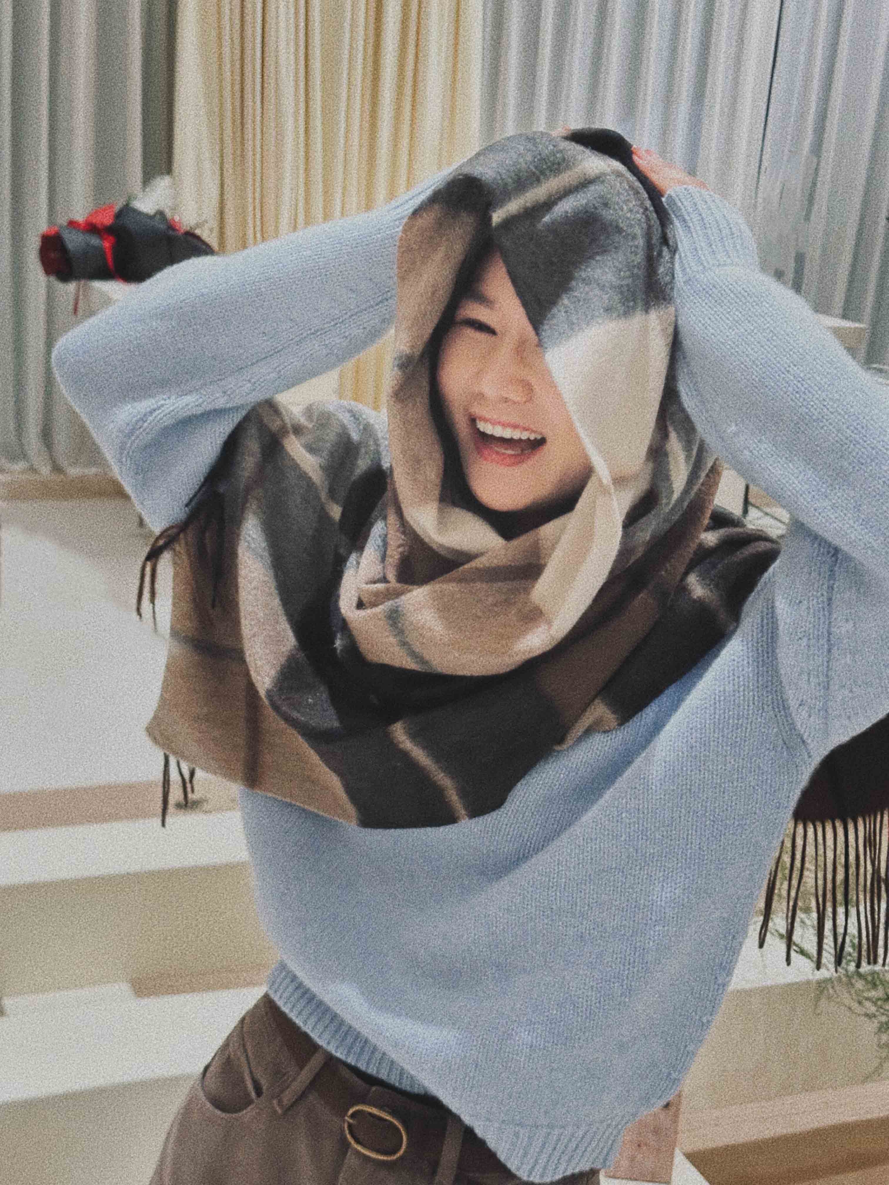 100%绵羊毛纱线,手感后实蓬松,保暖性佳。