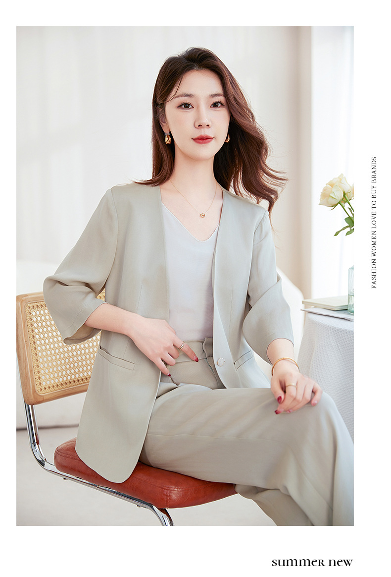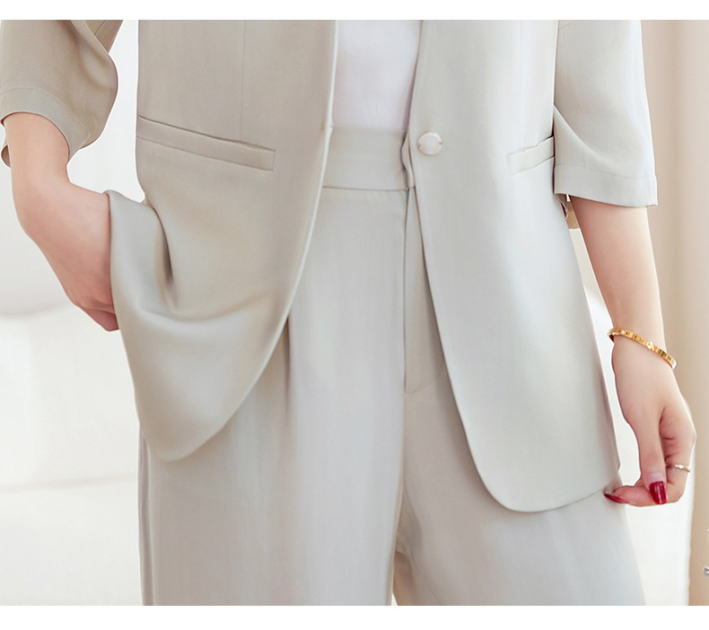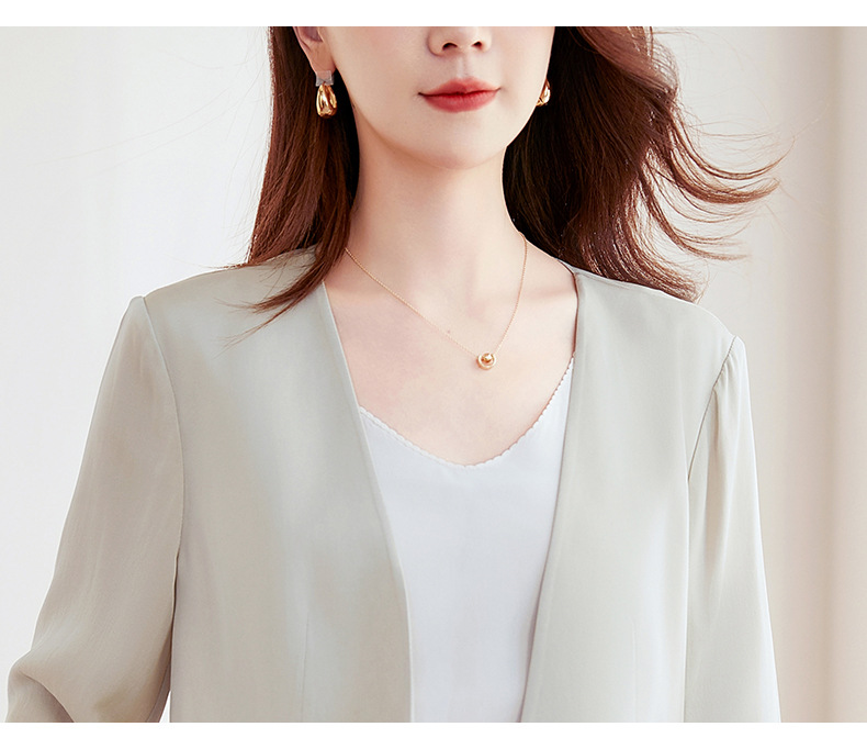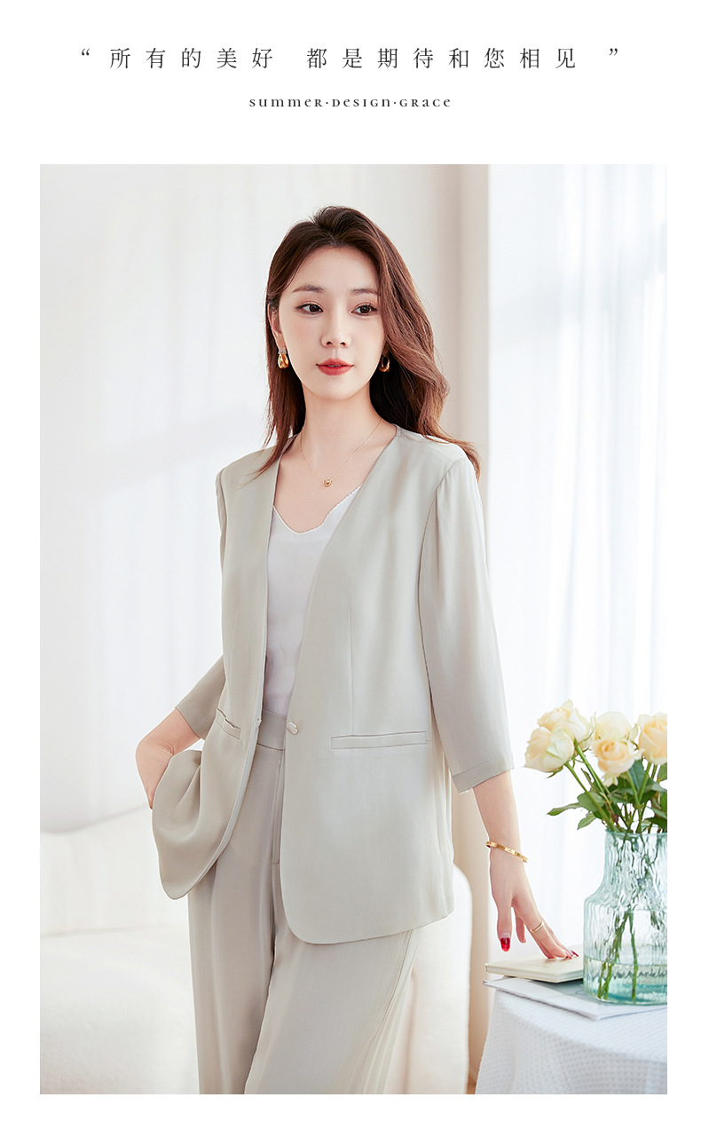 QS-62599552【真丝弹力绉】2025春夏西装外套女宽松气质休闲短袖外套62599552