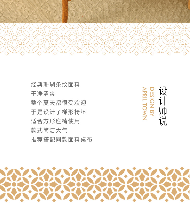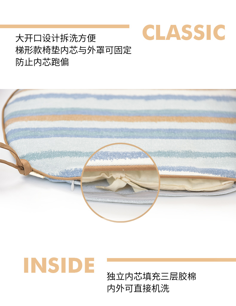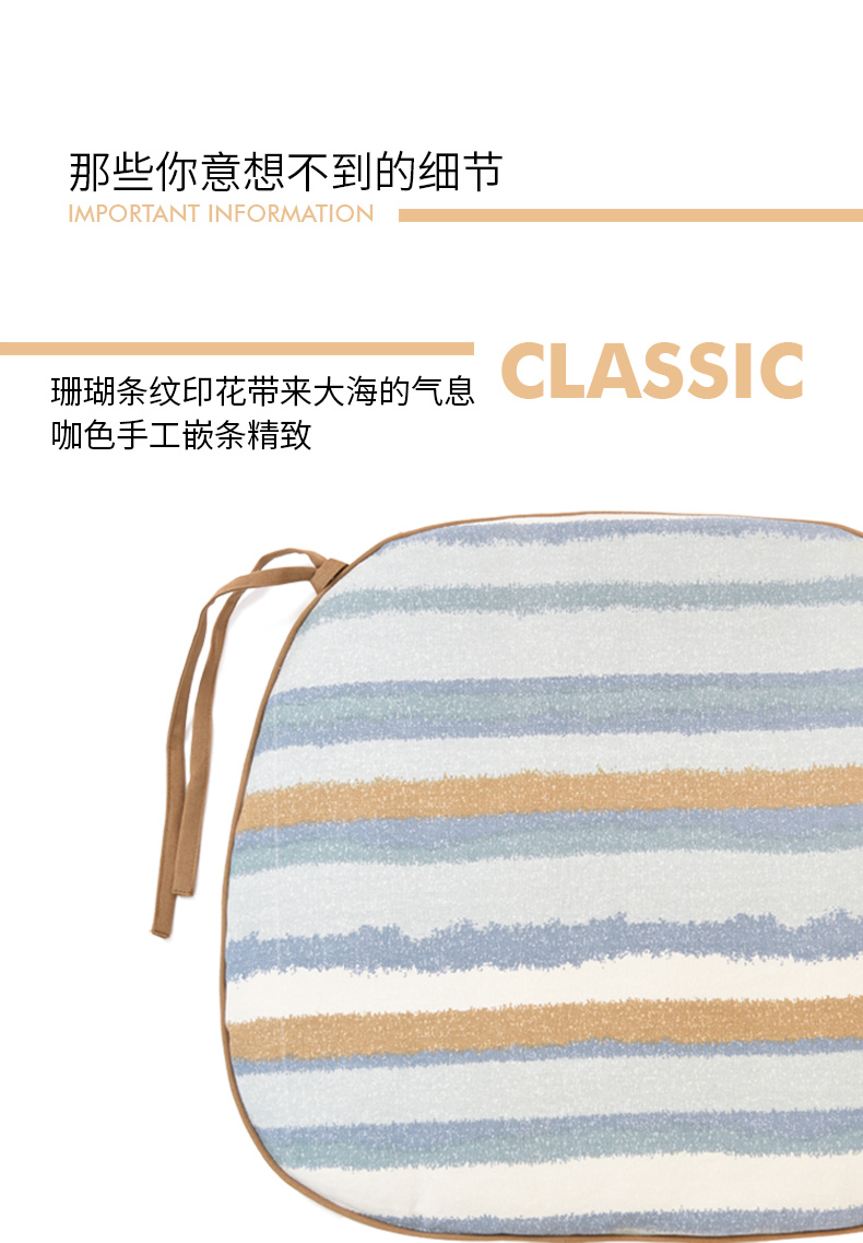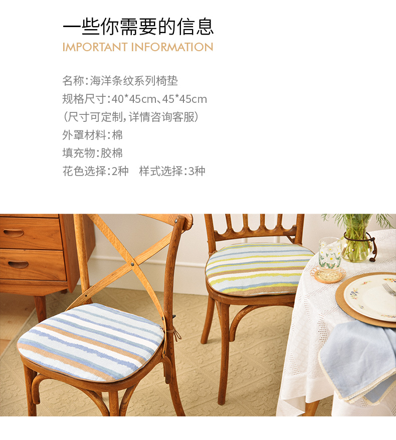 海洋条纹梯形椅垫家用四季通用中式实木加厚餐椅防滑坐垫