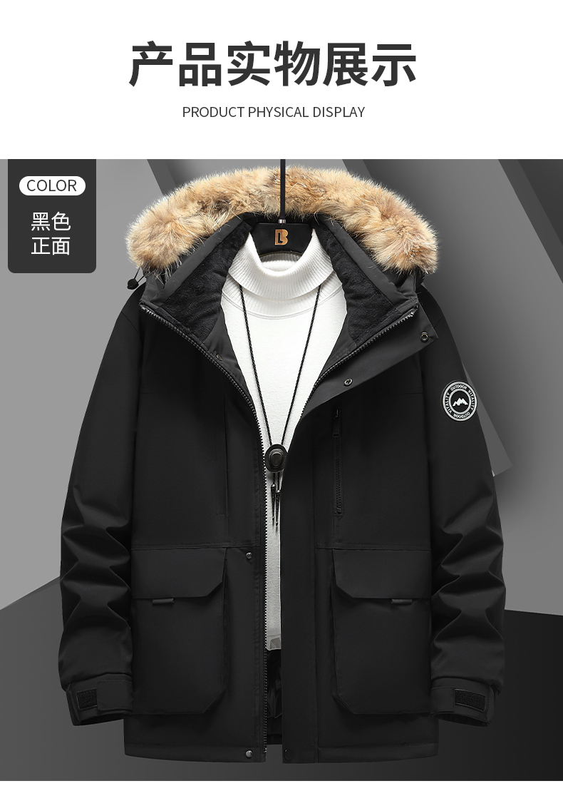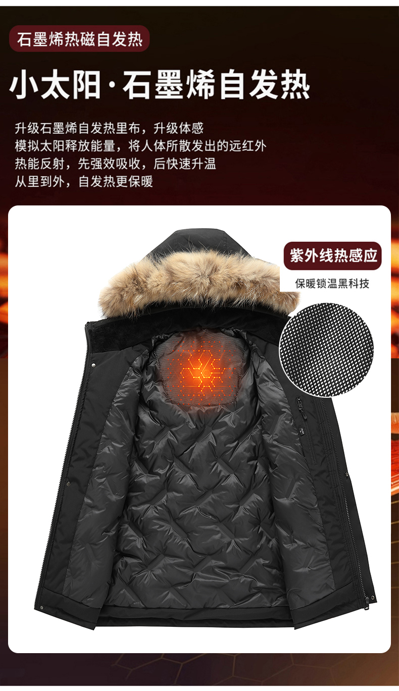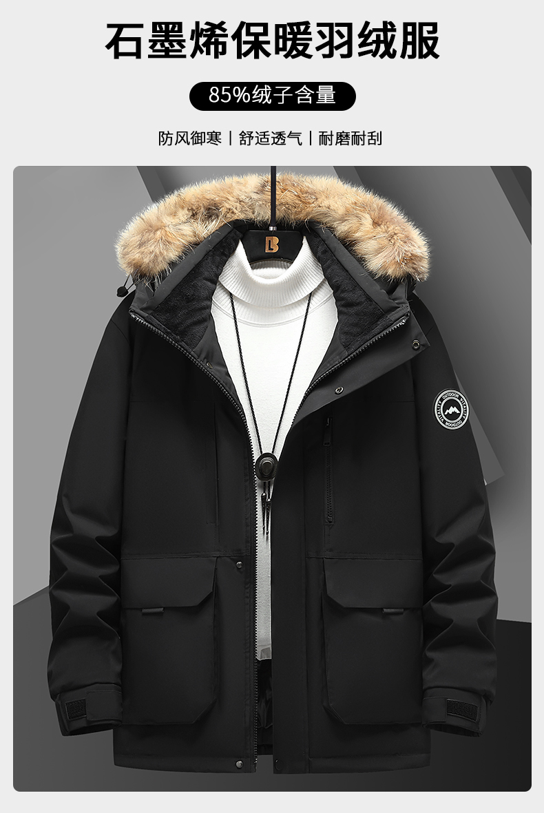 【三防石墨烯】【可拆卸毛领】【新款DXC】大依优型大码连帽羽绒服90白鸭绒保暖加厚加肥加大上衣男士外套胖子