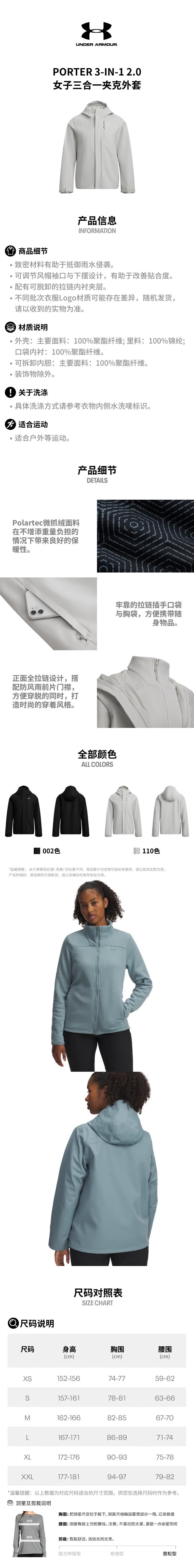 UnderArmour安德玛 女三合一夹克 1371593-323