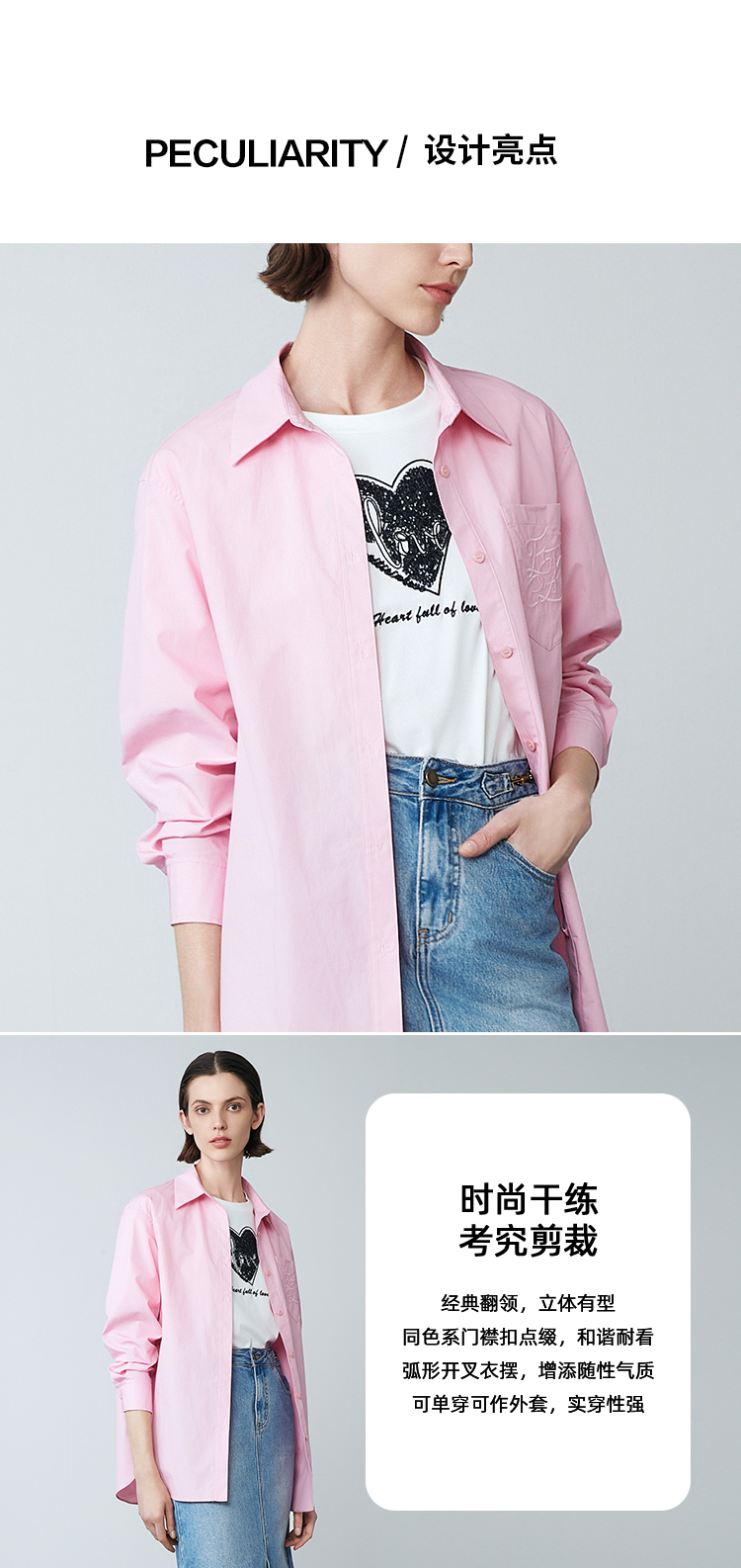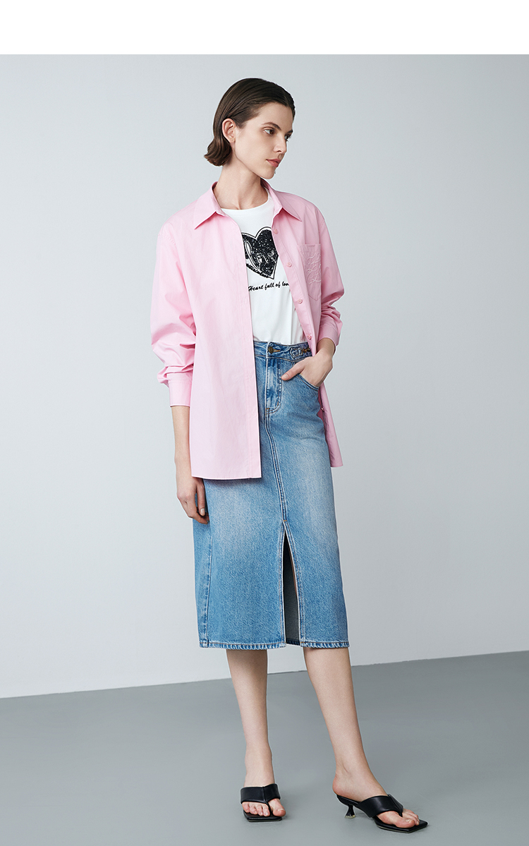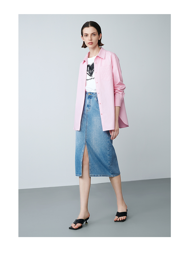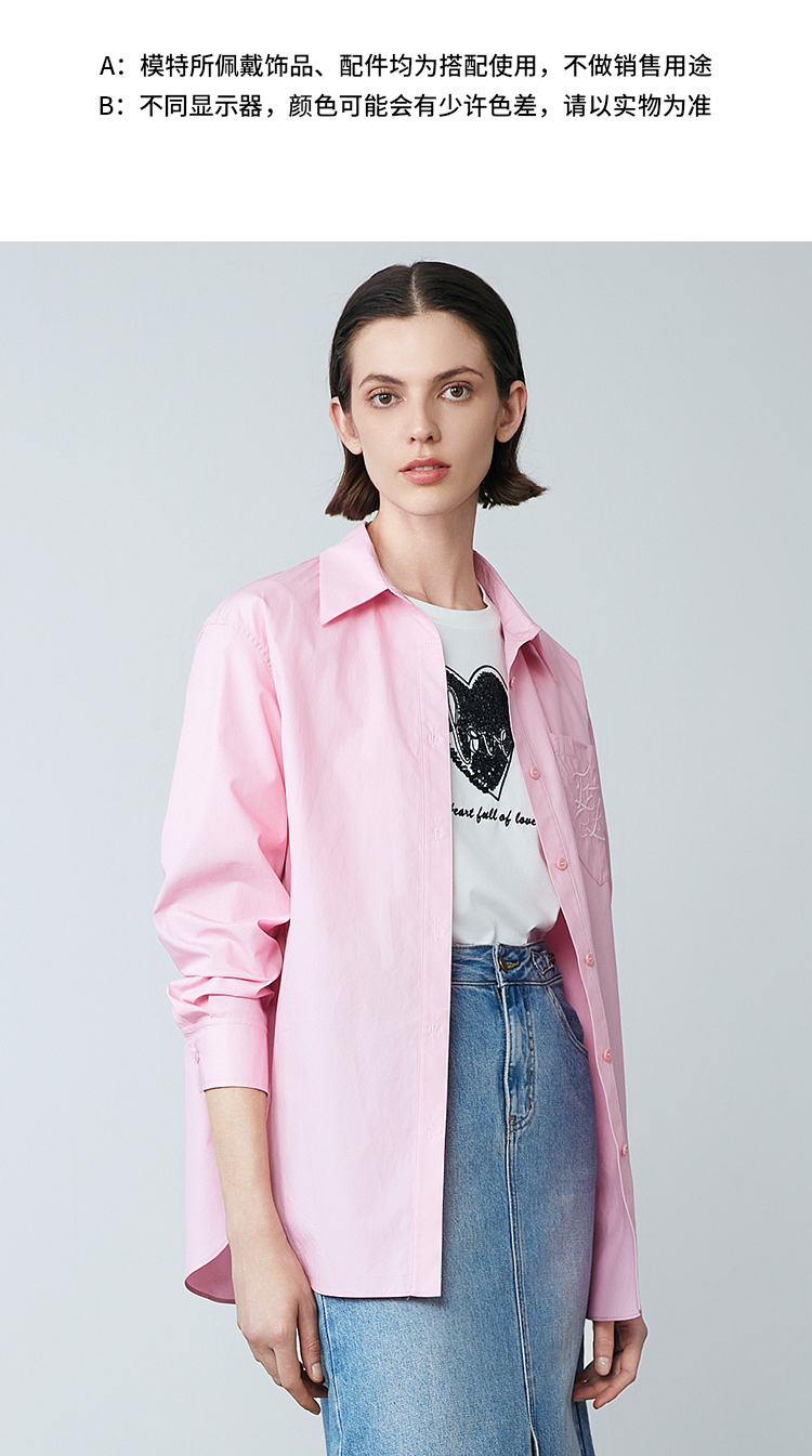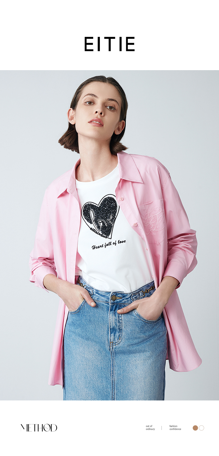 EITIE爱特爱春季新款洋气显瘦纯色衬衫上衣7709406