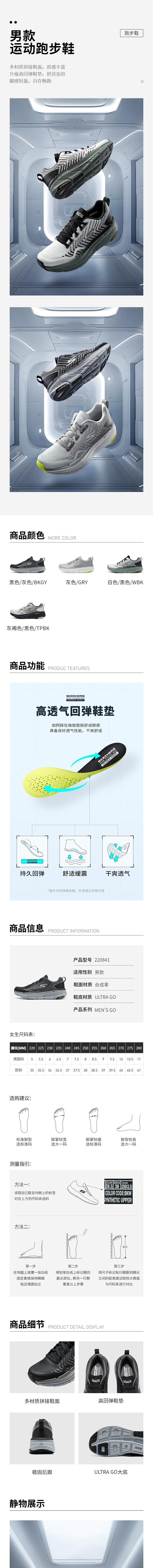 Skechers斯凯奇 男缓震型跑步鞋 220841-BKGY