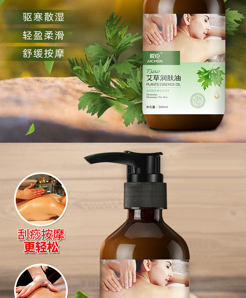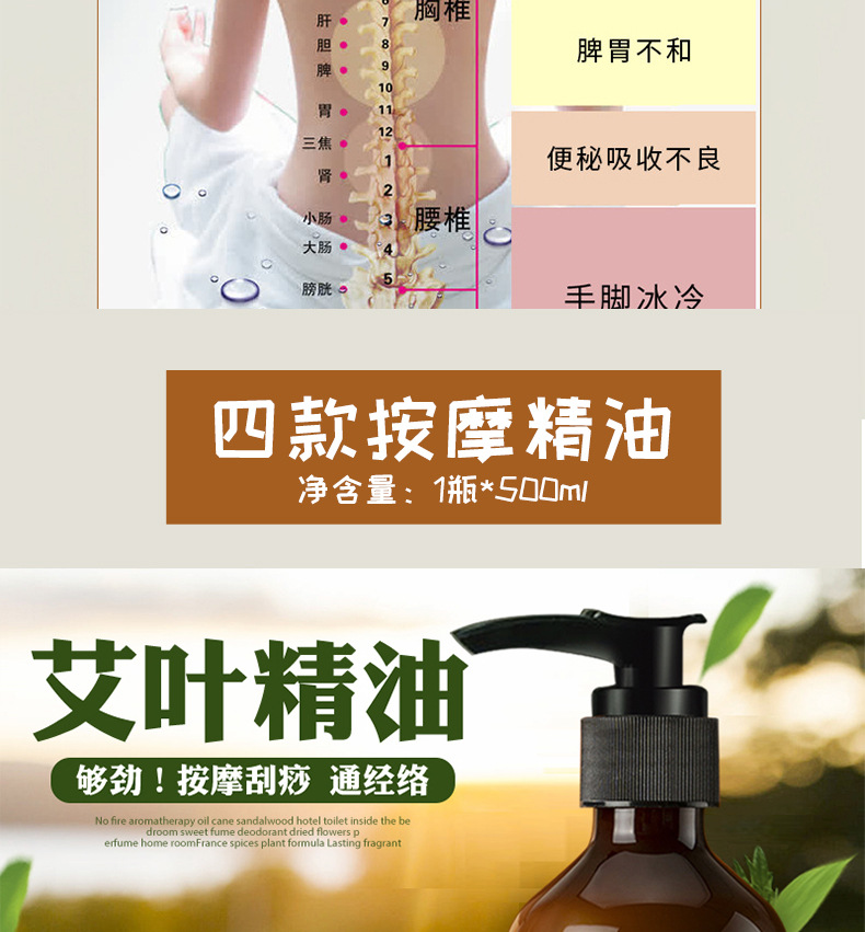 【大容量500ML更实惠】艾叶精油 葡萄籽润肤油美容SPA刮痧开背精油身体按摩油500ml