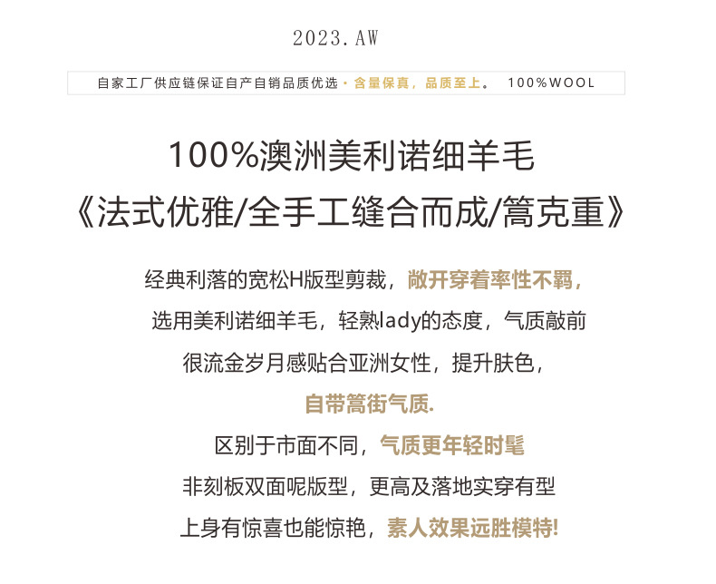 OSL 2305宽松双面羊绒大衣羊毛双面呢大衣 商品缩略图0 OSL 2305宽松双面羊绒大衣羊毛双面呢大衣 商品缩略图1 OSL 2305宽松双面羊绒大衣羊毛双面呢大衣 商品缩略图2 OSL 2305宽松双面羊绒大衣羊毛双面呢大衣 商品缩略图3 OSL 2305宽松双面羊绒大衣羊毛双面呢大衣 商品缩略图4
