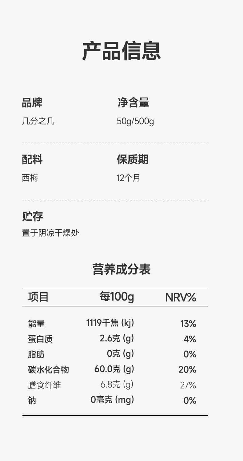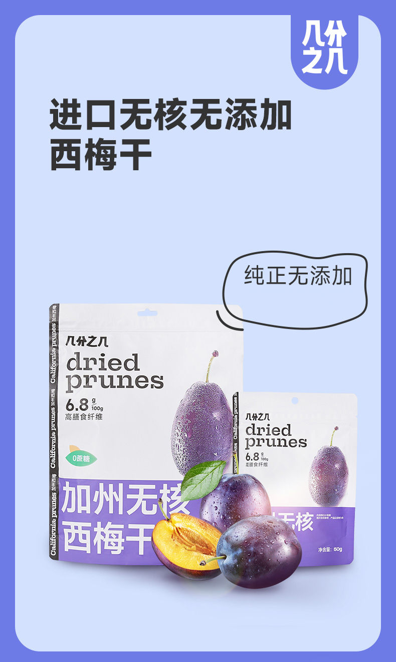 几分之几 美国加州进口无核西梅干 50g/500g/包 个大肉厚 开袋即食