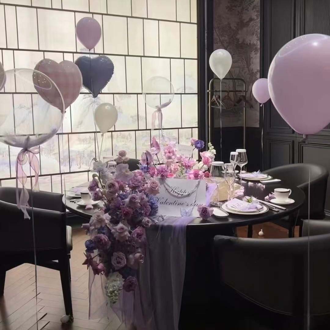 粉紫色系瀑布桌花气球布置告白生日派对气球节日布置年会商务酒会布置套餐浪漫惊喜上门布置