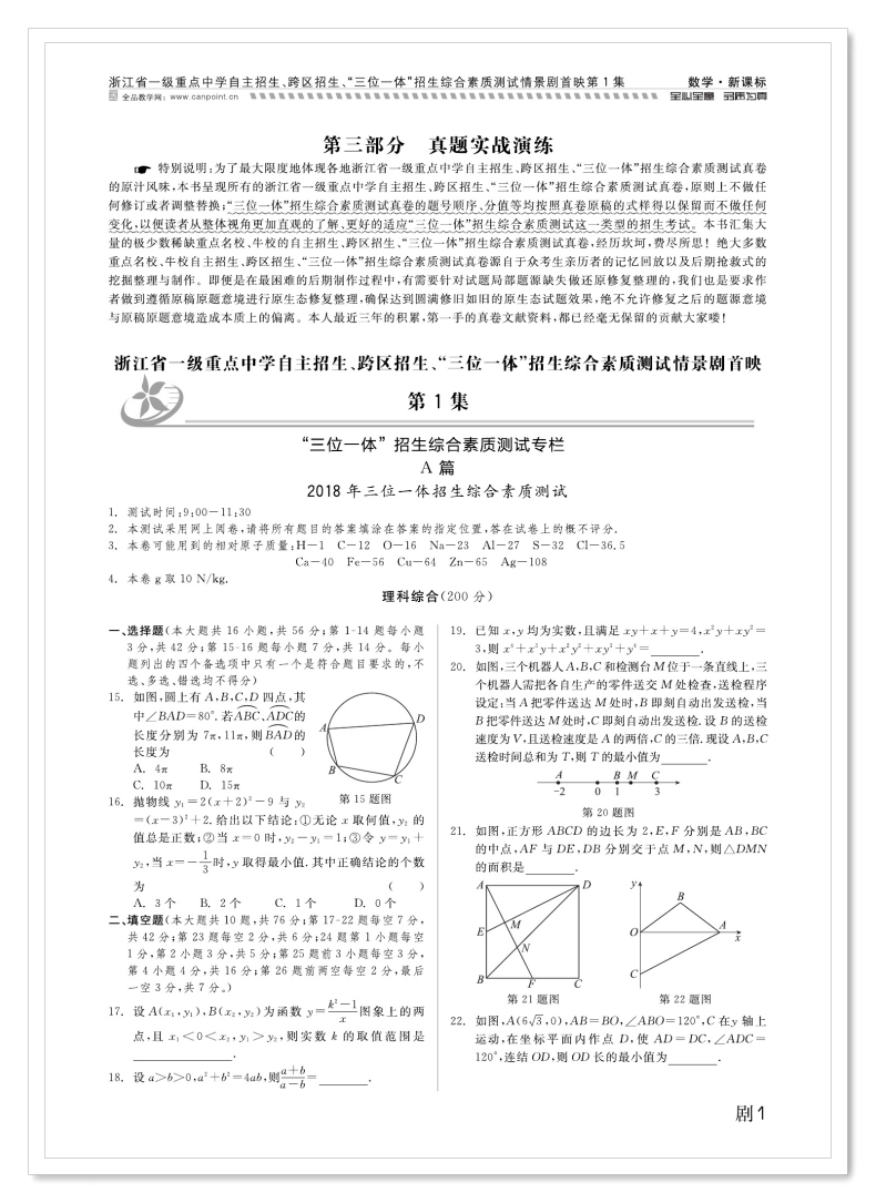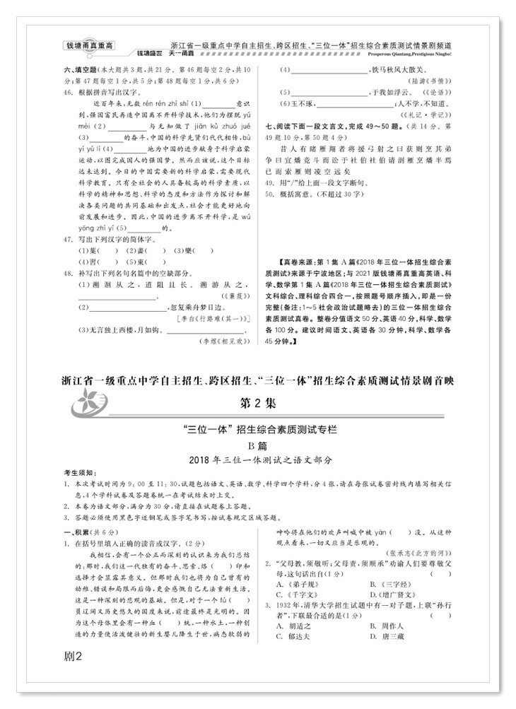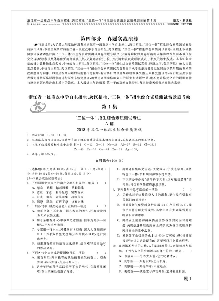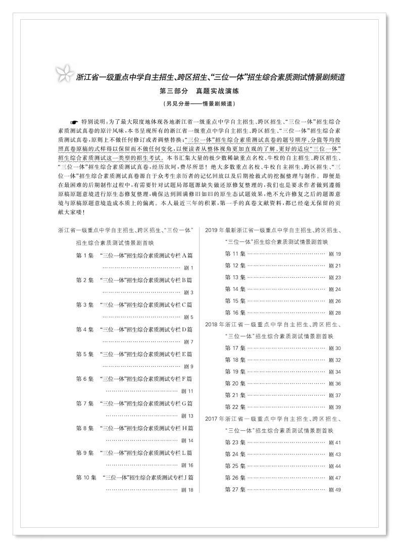 系统收集了近年来浙江省内部分重点高中提前保送生综合素质考试的真题真卷,