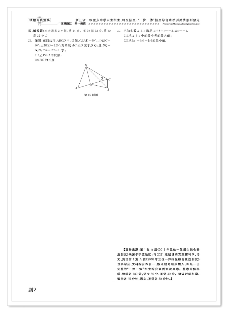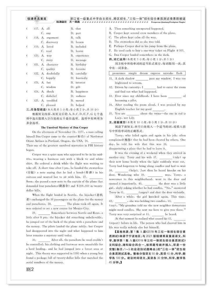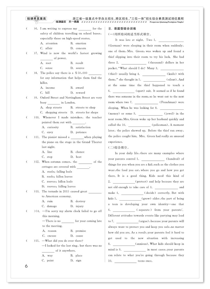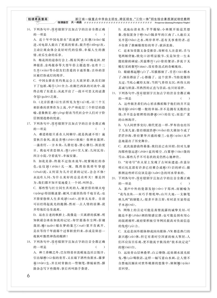 系统收集了近年来浙江省内部分重点高中提前保送生综合素质考试的真题真卷,