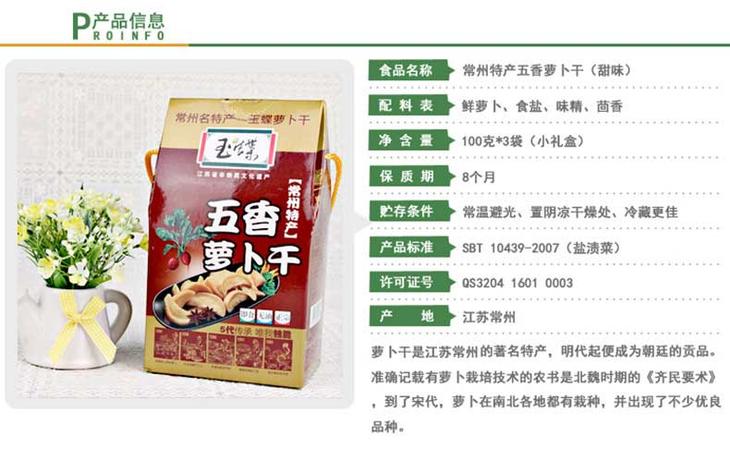 【常州馆】玉蝶 五香萝卜干300g 即食素菜泡菜榨菜下饭咸菜零食礼盒装 常州特产 五香(辣味)
