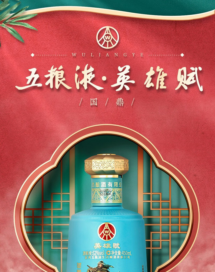 【精美礼盒】五粮液生态 英雄赋 绿豆酒 52度 450ml x2【礼盒装】