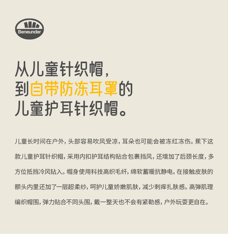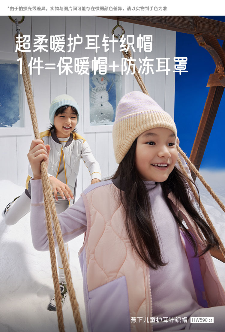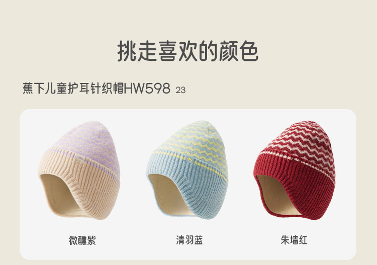 蕉下儿童护耳针织帽HW59823男女童帽子防静电秋冬保暖户外套头帽