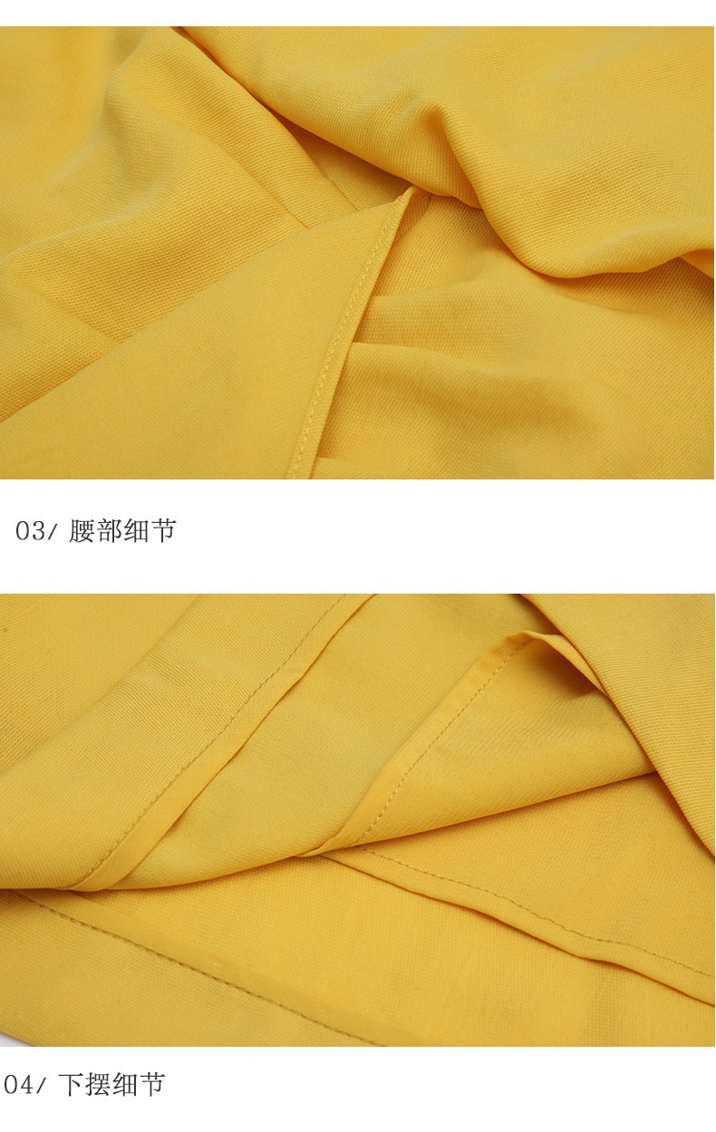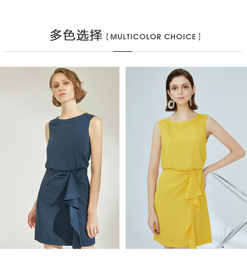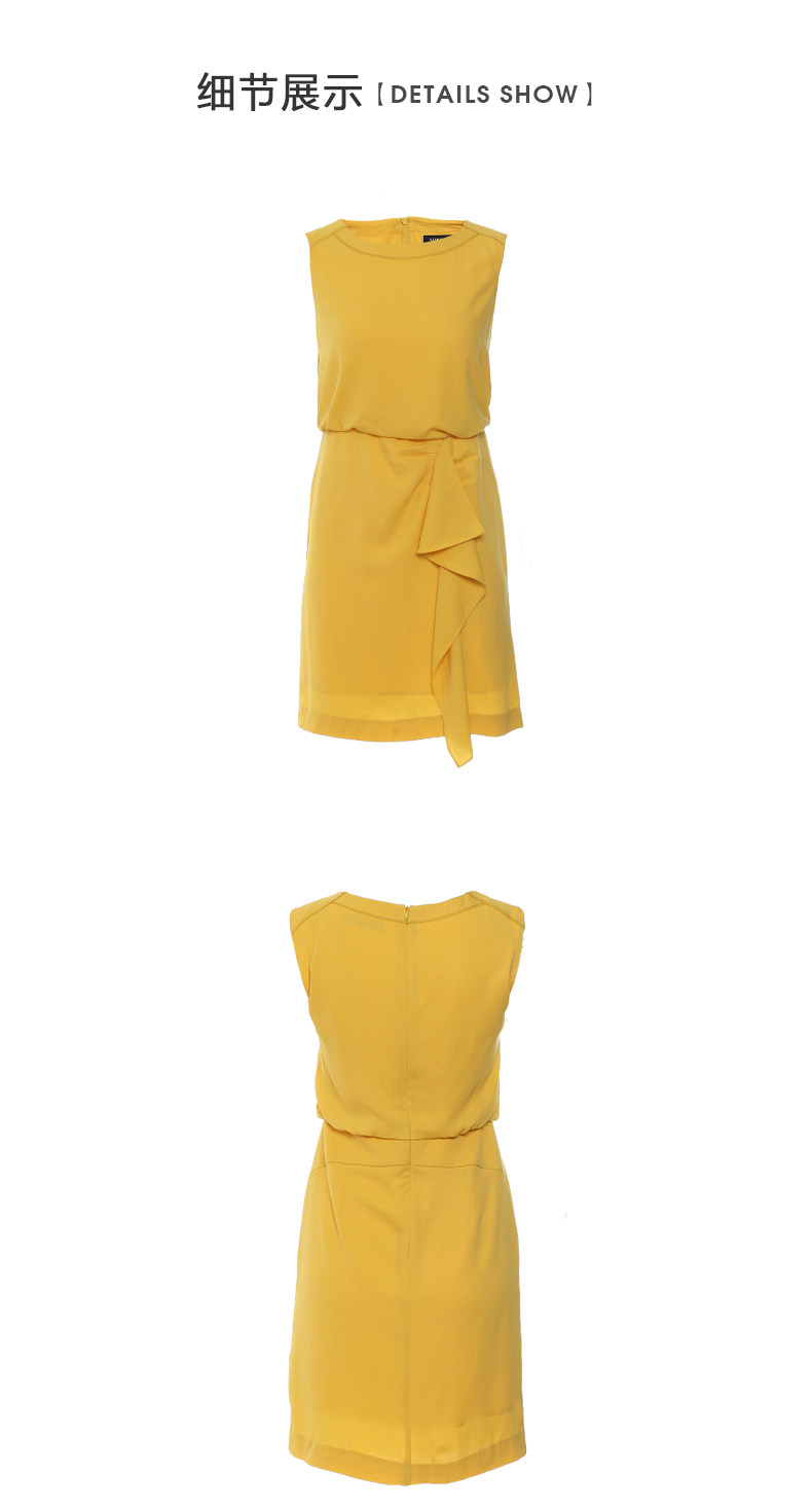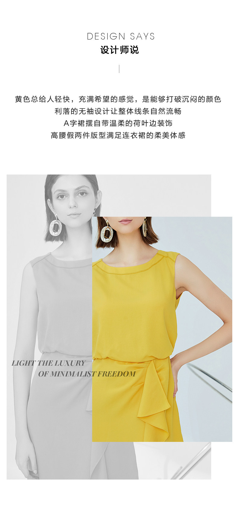 vimage纬漫纪夏季新款时尚高冷御姐风无袖圆领连衣裙黄色气质裙子V1107747