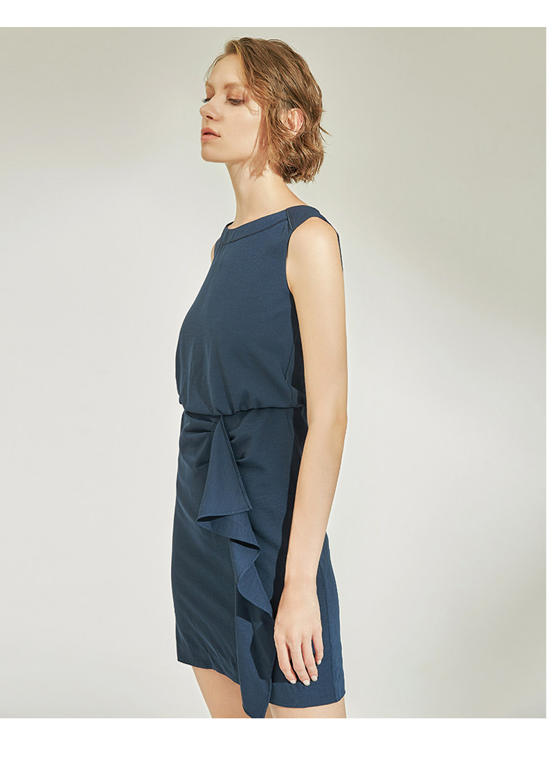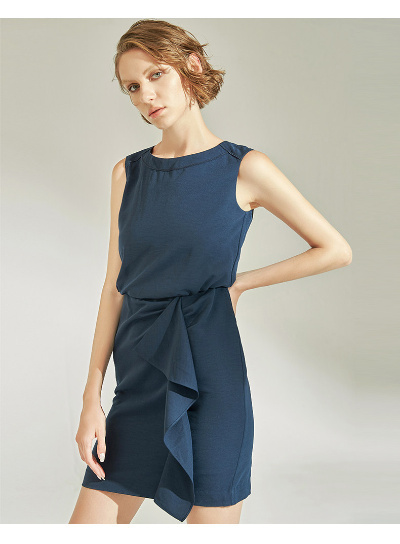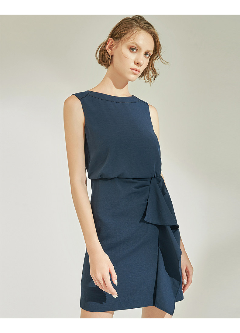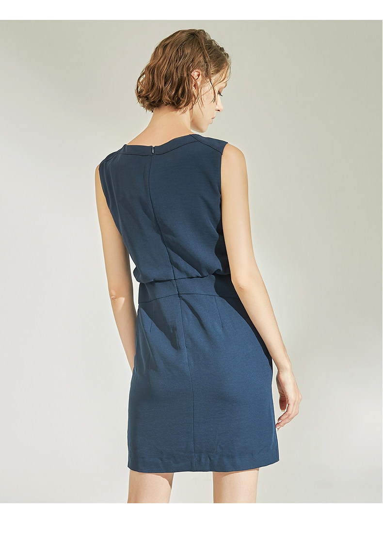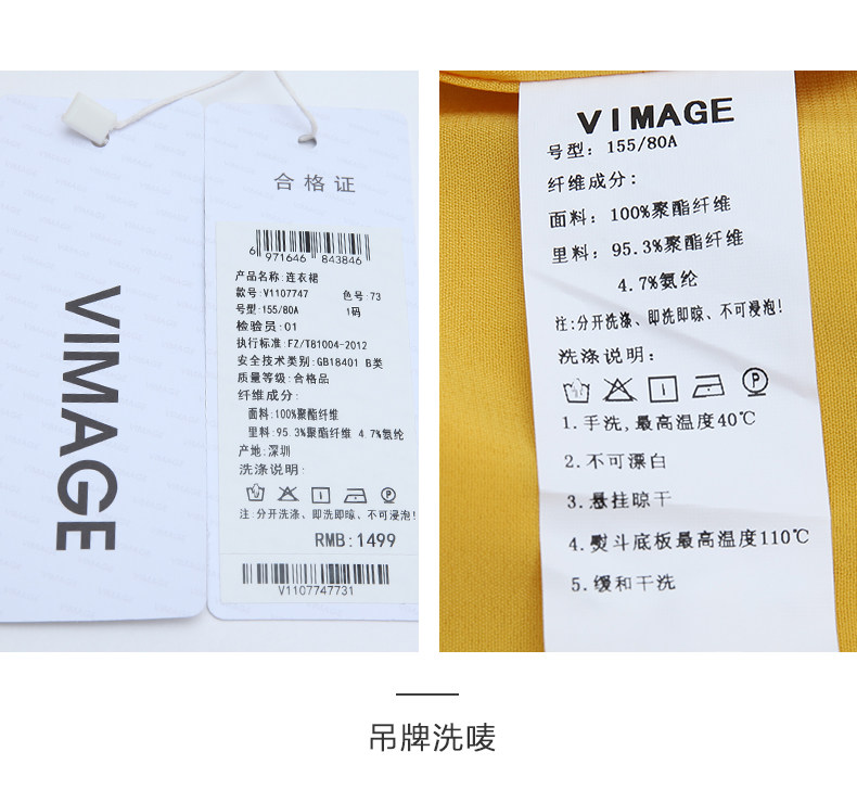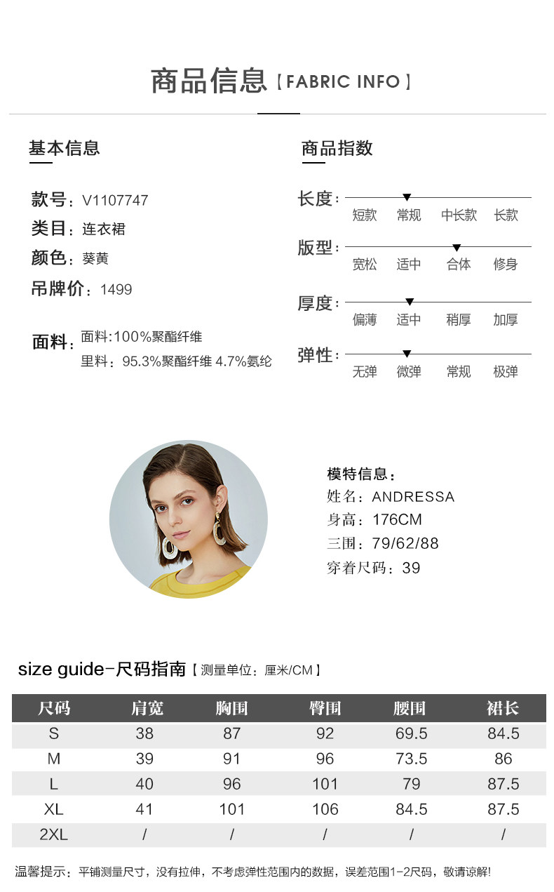 vimage纬漫纪夏季新款时尚高冷御姐风无袖圆领连衣裙黄色气质裙子V1107747