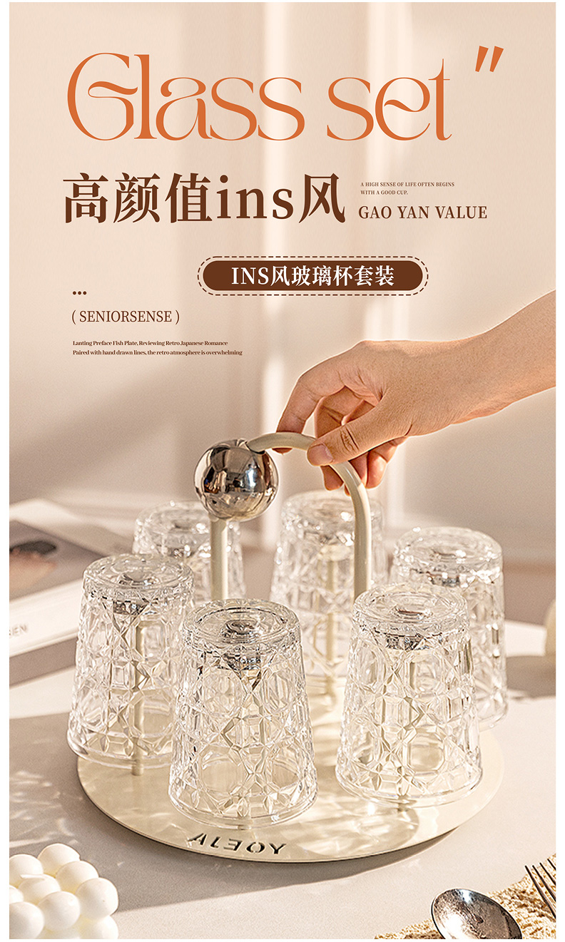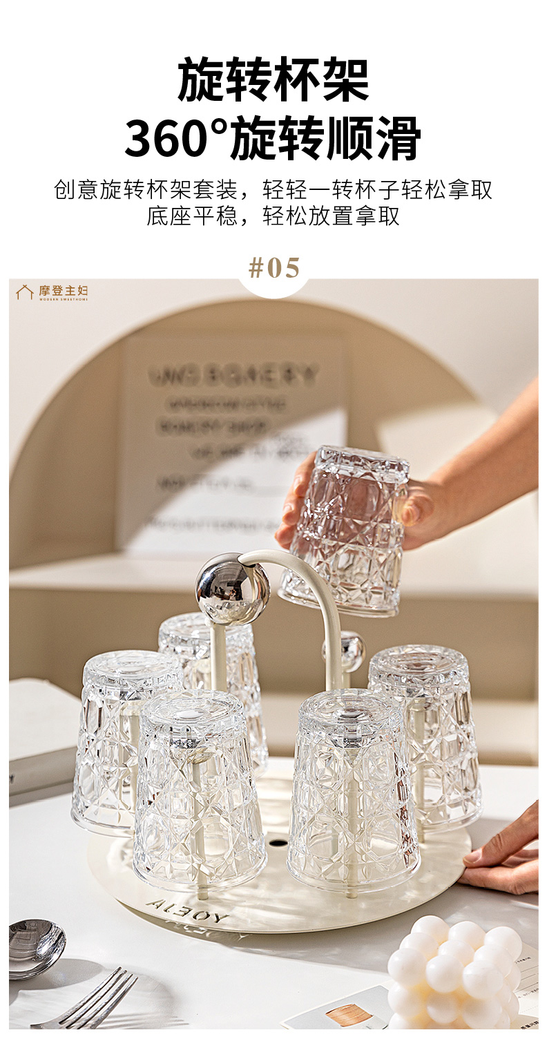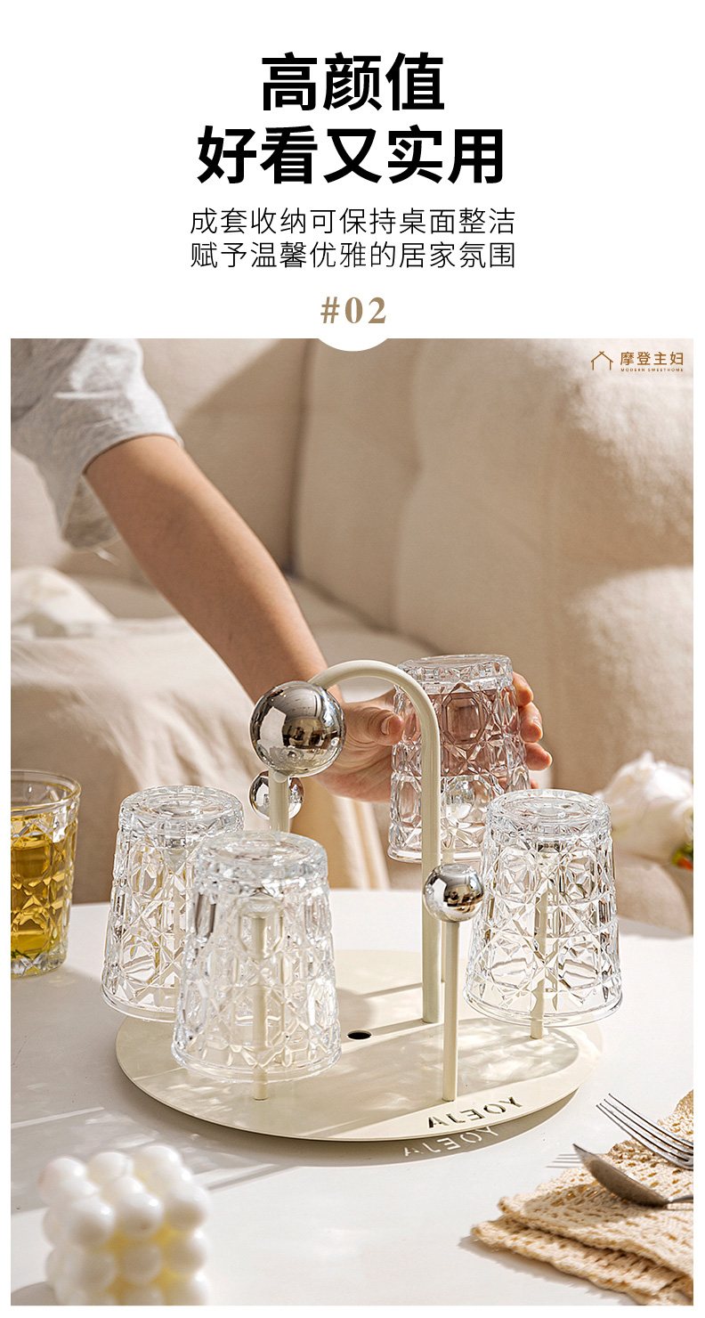 摩登主妇玻璃杯套装家用办公室水杯带收纳架杯子咖啡杯酒杯果汁杯