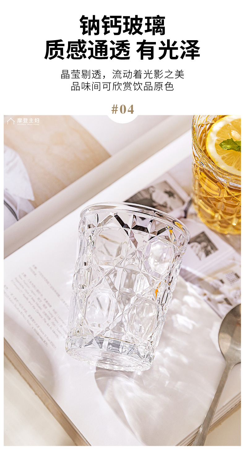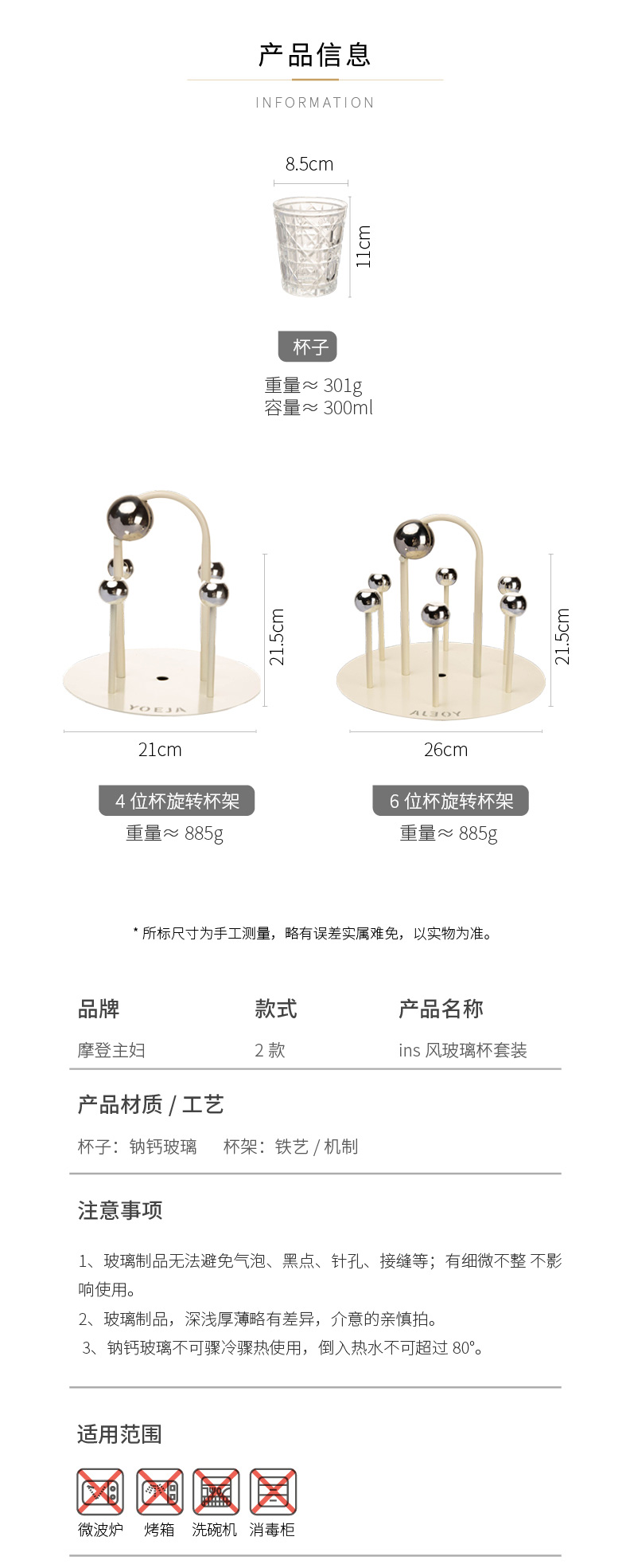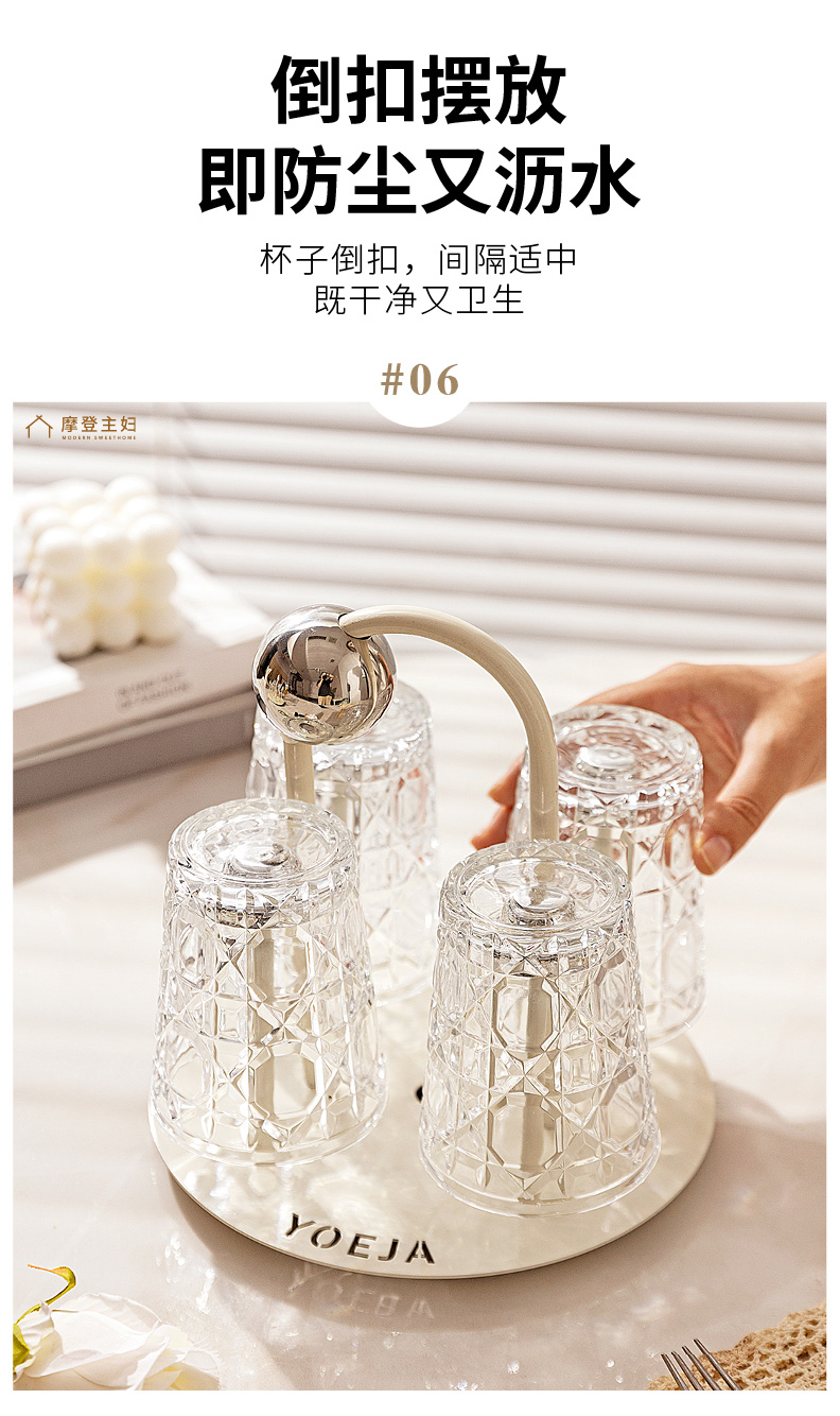 摩登主妇玻璃杯套装家用办公室水杯带收纳架杯子咖啡杯酒杯果汁杯