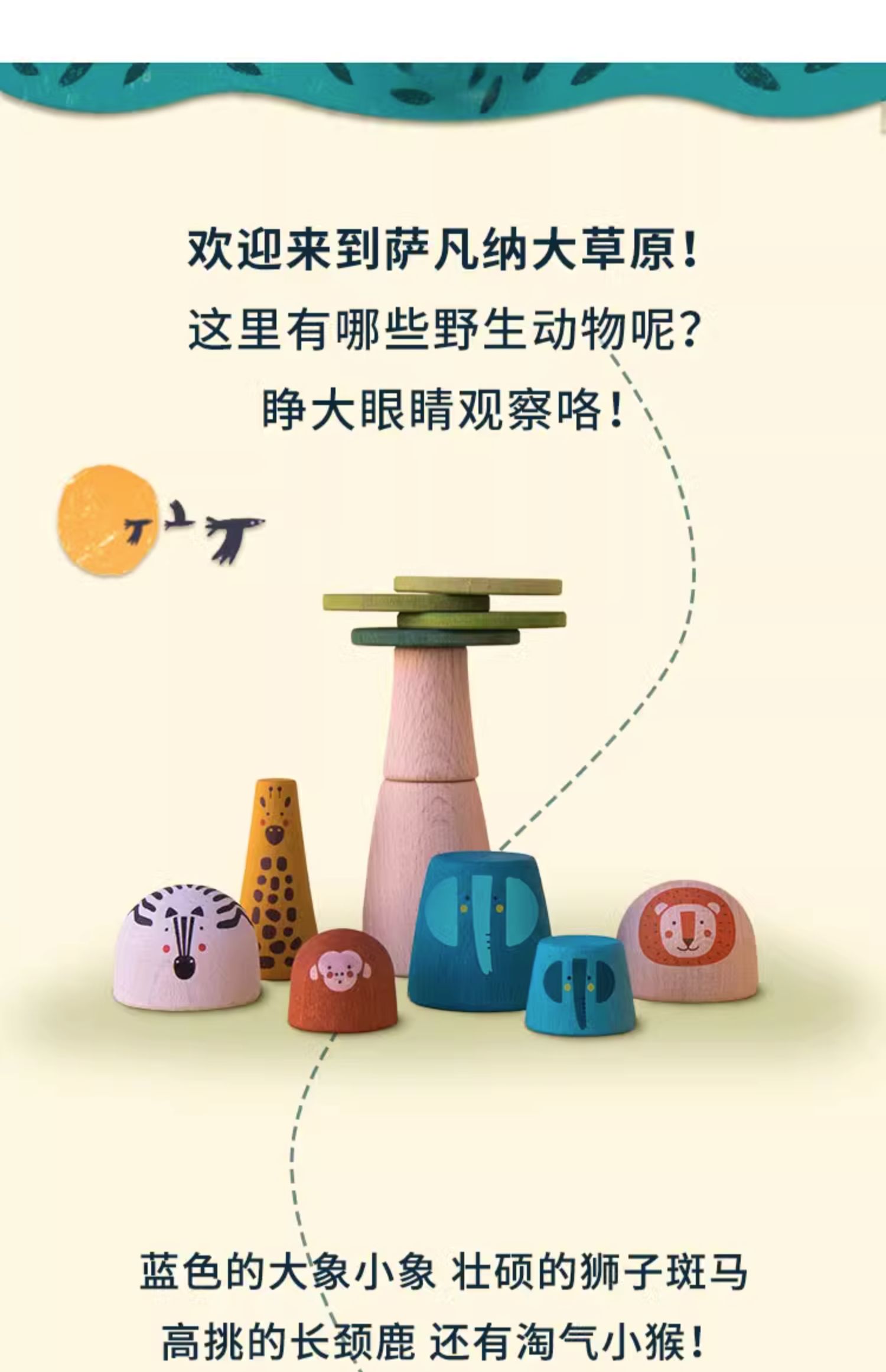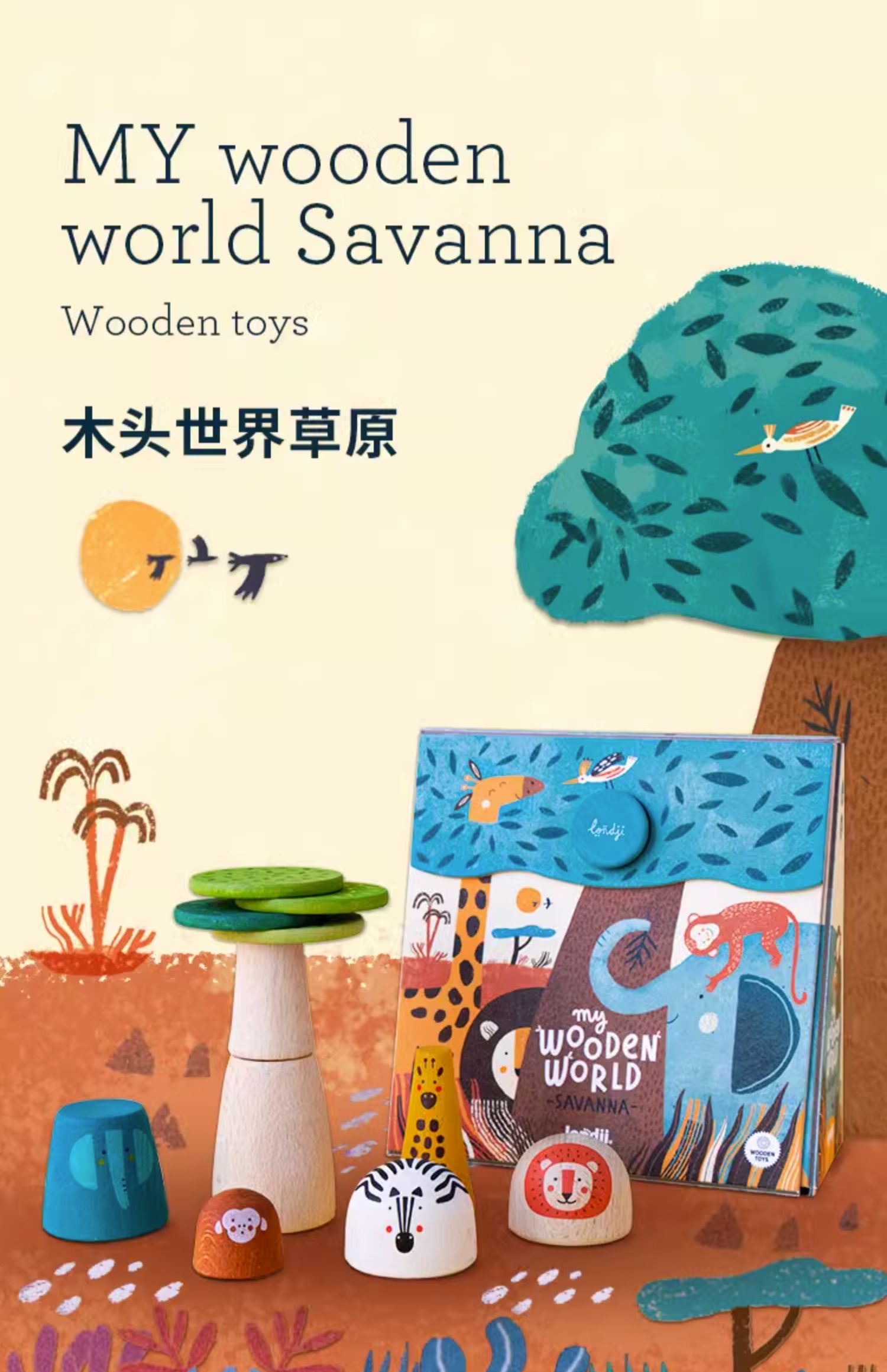 londji儿童进口木质玩具世界大草原