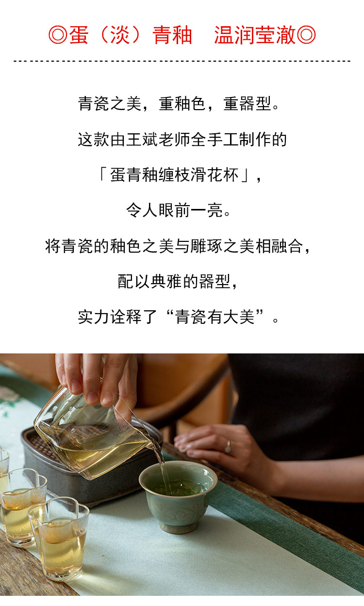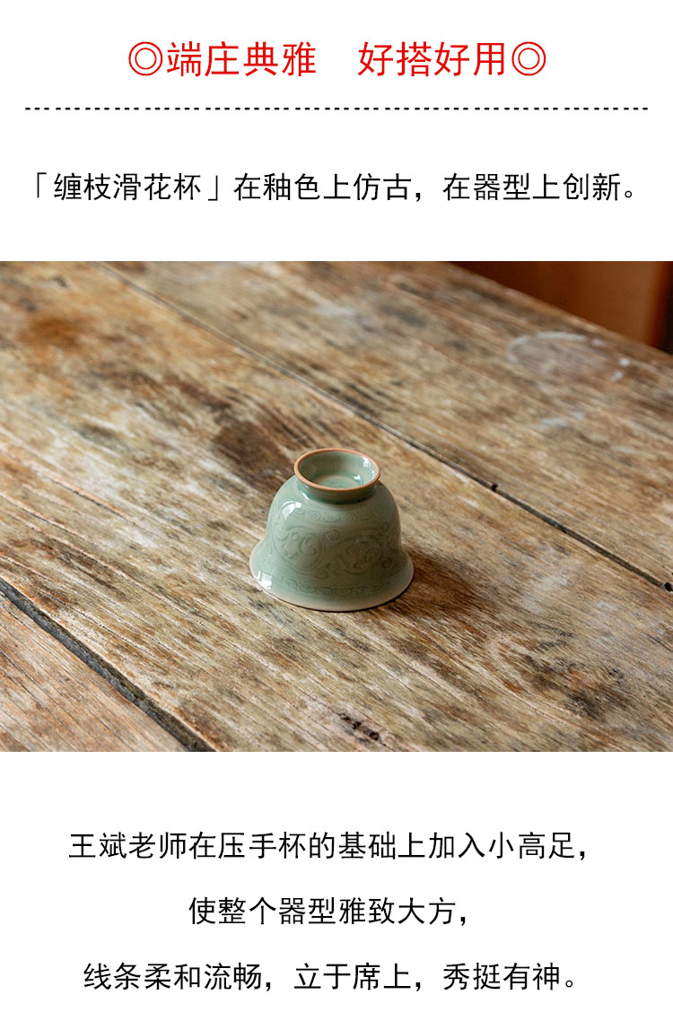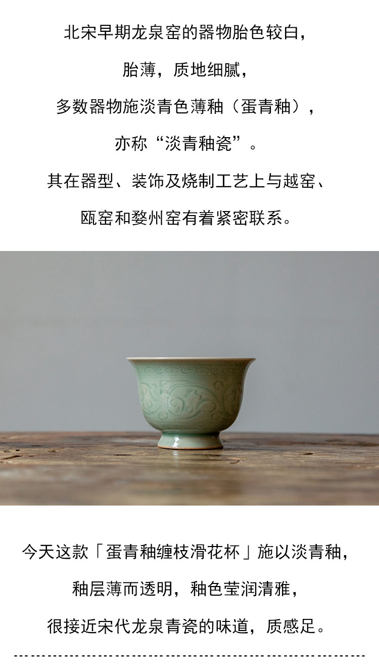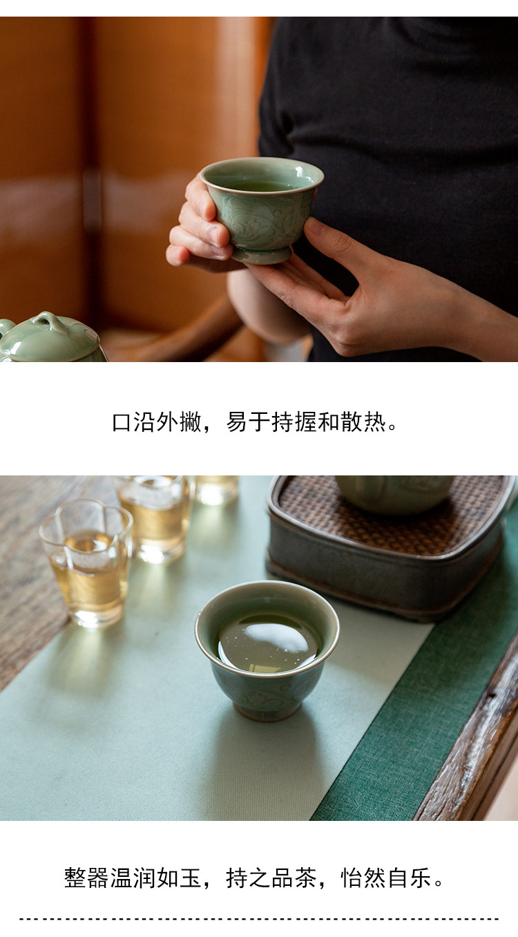 茶香记 青瓷蛋青釉缠枝滑花杯 100ml茶杯品茗杯温润莹澈器型耐看